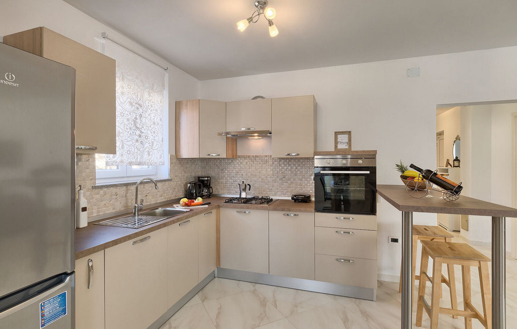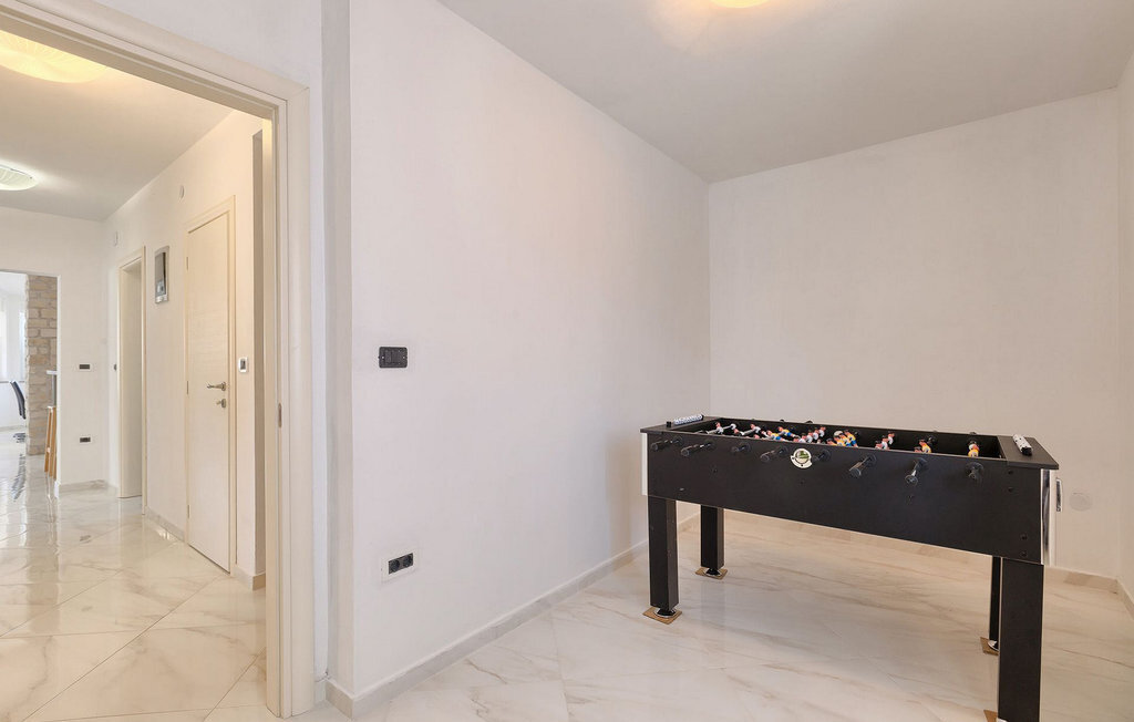 Détendez-vous et profitez de votre temps au bord de la piscine privée de cette magnifique villa familiale.La belle villa Rudi est située à Valbandon, l'un des deux villages qui forment la ville de Fazana. Fazana est située sur la côte sud-ouest de la péninsule istrienne, à seulement 8 km de Pula. La ville est connue pour son excellente offre gastronomique : Huile d'olive, vin, prosciutto et sardines. Vous y trouverez également une soixantaine de pistes cyclables, dont certaines longent la magnifique côte adriatique avec vue sur le parc national de Brijuni. Il y a également un sentier de randonnée de 4 km le long de la côte, idéal pour des promenades romantiques avec votre bien-aimé(e). Fazana est également un endroit où vous pouvez profiter de différents sports nautiques : Vous pouvez louer un jet-ski, un bateau de course, un paddle boat, un canoë et des vélos. Vous pouvez également essayer la planche à voile et la plongée. Il y a même un demi-sous-marin qui vous permettra d'explorer le riche monde sous-marin. À proximité, vous trouverez le parc d'aventure Jangalooz. Vous pouvez emmener toute la famille en excursion à l'Aquapark de Pula ou au Dinopark de Fontana. Le parc national de Brijuni, tout proche, est également une bonne idée d'excursion pour toute la famille.