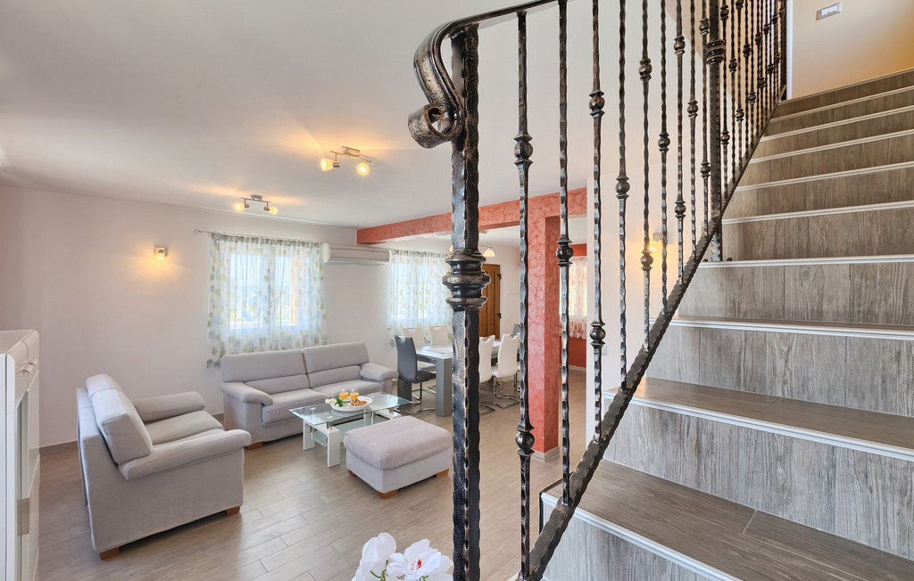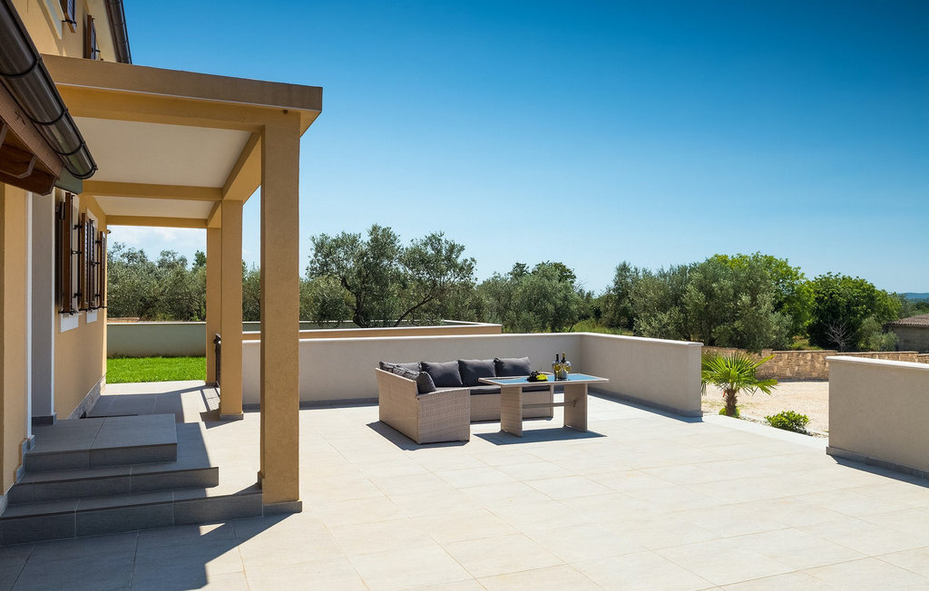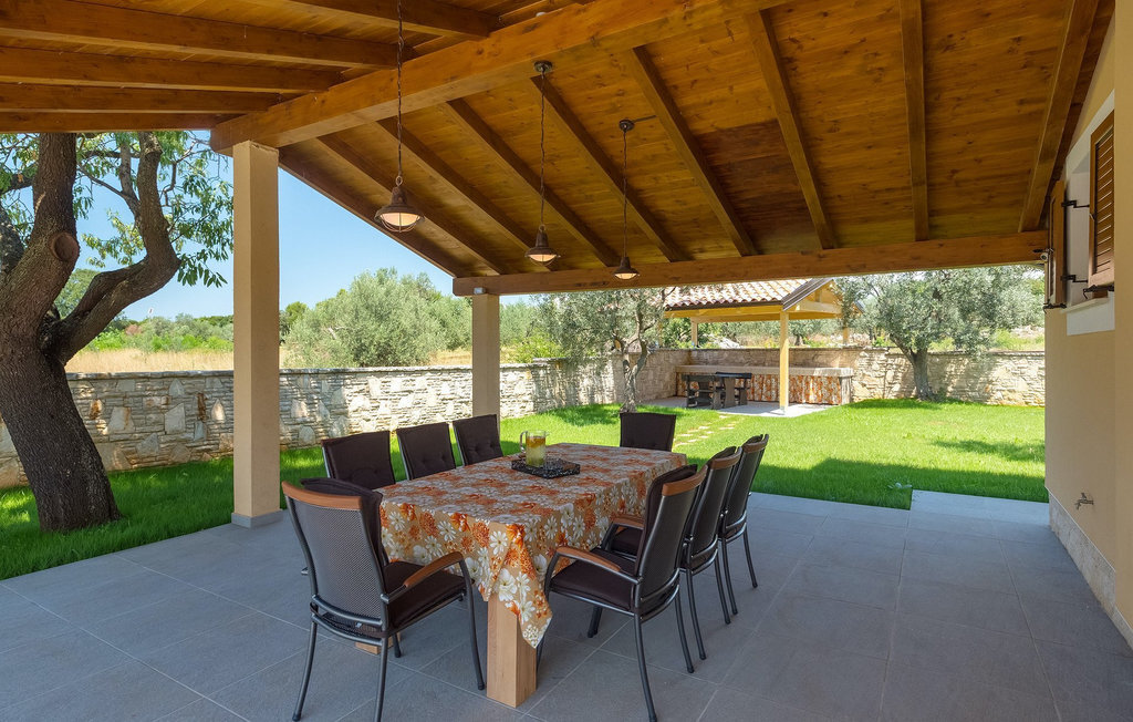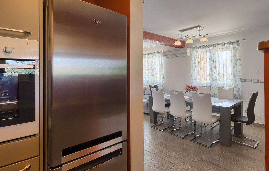 Cette magnifique villa est située dans la campagne de Pula, avec vue sur la magnifique mer Adriatique et les îles Brioni, l'un des parcs nationaux de Croatie. La villa peut accueillir jusqu'à six personnes, car elle se compose de trois chambres à coucher. Deux chambres disposent d'un lit double et une de deux lits simples. Toutes les chambres à coucher se trouvent à l'étage supérieur de la villa. Au rez-de-chaussée, vous trouverez un grand salon avec des canapés confortables, un coin repas avec cheminée et une cuisine entièrement équipée. Profitez de vos repas sur le barbecue à gaz à l'ombre de la terrasse couverte, avec vue sur l'espace piscine. La villa se trouve sur un terrain de 2300 m2, est entièrement clôturée et offre trois places de parking privées. Détendez-vous sur les chaises longues à côté de la belle piscine privée, tandis que les plus petits s'amusent sur les balançoires et le toboggan. Pour explorer les environs, quatre vélos sont à votre disposition. La Villa Felice offre tout ce qu'il faut pour passer d'agréables vacances en famille, à proximité de la mer et de toutes les commodités nécessaires. La villa est climatisée et dispose de la wifi. Veuillez noter que : Les groupes de jeunes ne sont pas autorisés.