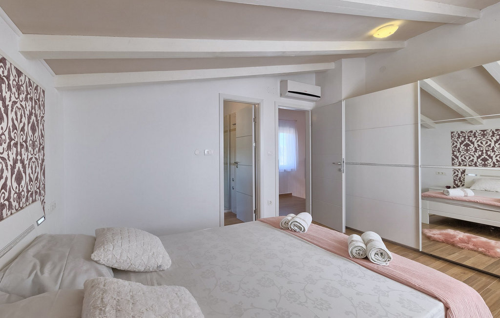La charmante Villa Nella est le choix idéal pour ceux qui rêvent de vacances relaxantes à proximité des belles plages d'Istrie. Si vous préférez rester à la maison, la piscine privée est à votre disposition pour vous rafraîchir pendant les chaudes journées d'été - plaisir garanti pour toute la famille ! Profitez du barbecue extérieur et des nombreux coins salon et passez du temps avec vos proches pendant que les enfants courent dans le jardin soigneusement entretenu. Le jardin est orné de magnifiques plantes méditerranéennes et offre beaucoup d'espace pour se détendre. À l'intérieur, la villa offre un rez-de-chaussée ouvert où se trouvent la cuisine entièrement équipée avec coin repas et le salon confortable. Dès que vous entrez dans la pièce, vous remarquez l'aménagement élégant avec des couleurs sobres qui offrent une atmosphère chaleureuse. Deux chambres confortables, chacune avec une belle salle de bain privée, se trouvent au premier étage. La villa est climatisée, dispose du WiFi, de la télévision par satellite et de tout ce que l'on peut souhaiter pour des vacances inoubliables. La villa se trouve à une courte distance en voiture de la plus belle ville d'Istrie, Rovinj. Rovinj est la ville la plus photogénique de la Méditerranée. Autrefois une ville de pêcheurs, aujourd'hui un centre touristique. L'ensemble du littoral, qui comprend vingt-deux îles au total, est une zone naturelle protégée. Ressentez la magie de la ville dans ses étroites ruelles médiévales et son environnement méditerranéen chaleureux, et profitez de la vue imprenable du haut du clocher. Rovinj et ses environs offrent de nombreuses possibilités de loisirs : Vélo, équitation, jogging. Vous pouvez soit profiter de la première plage, nager, faire de la plongée en apnée ou essayer différents sports nautiques. (p.ex. ski nautique, planche à voile). Enfin, vous pourrez y déguster de délicieuses spécialités méditerranéennes et istriennes.