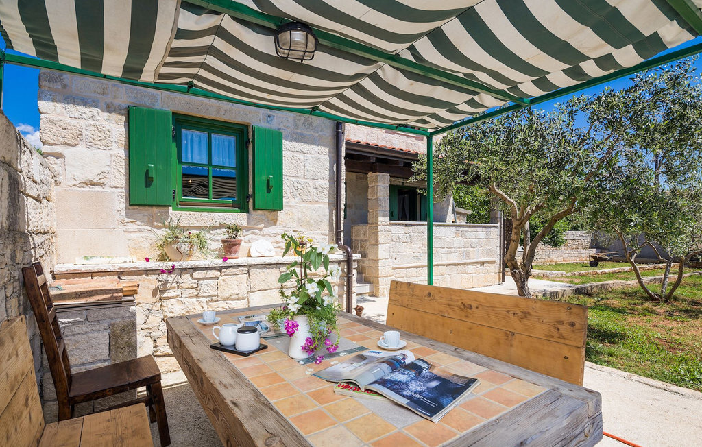 Villa Posedarje est une magnifique maison en pierre située à proximité de Zadar et à quelques pas de la mer. La villa peut accueillir 4+1 personnes. À votre disposition, vous trouverez 2 chambres à coucher, 2 salles de bain, un salon et une cuisine entièrement équipée avec coin repas, qui présentent le charme rustique d'une maison de campagne avec des plafonds traditionnels à poutres apparentes et un beau mobilier en bois. L'espace extérieur comprend un jardin avec une piscine privée où vous pourrez vous détendre et profiter. La jolie salle à manger couverte est un refuge attrayant contre la chaleur de l'été, ainsi que l'endroit parfait pour des repas savoureux en plein air. Pour nos petits hôtes, cette villa dispose d'un trampoline et d'une balançoire, ainsi que d'un lit bébé.