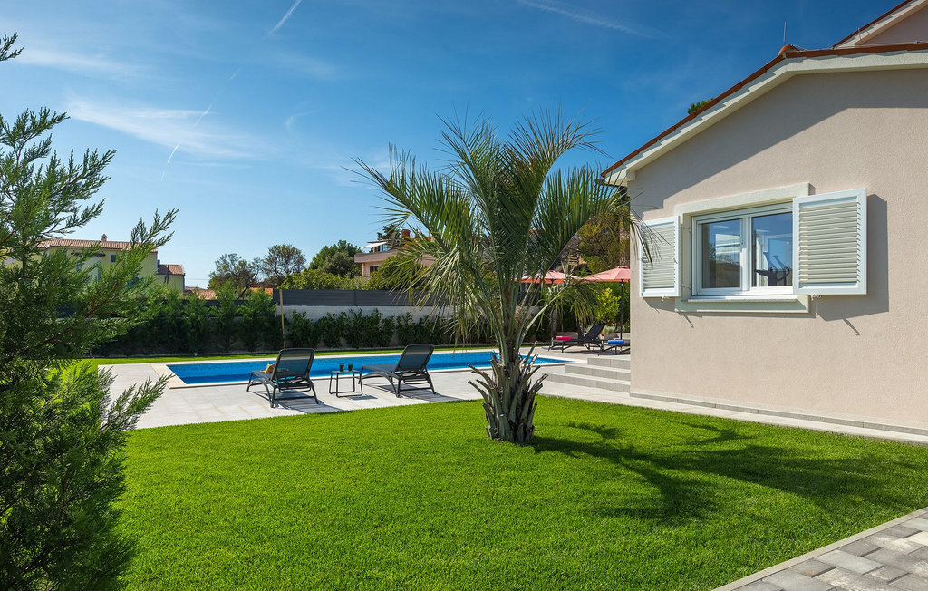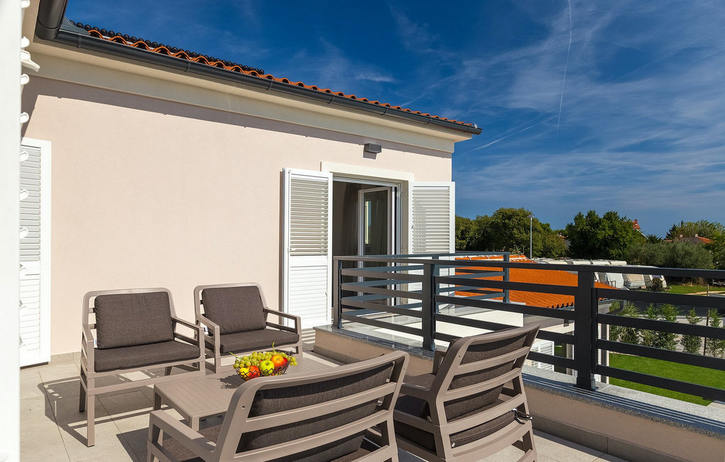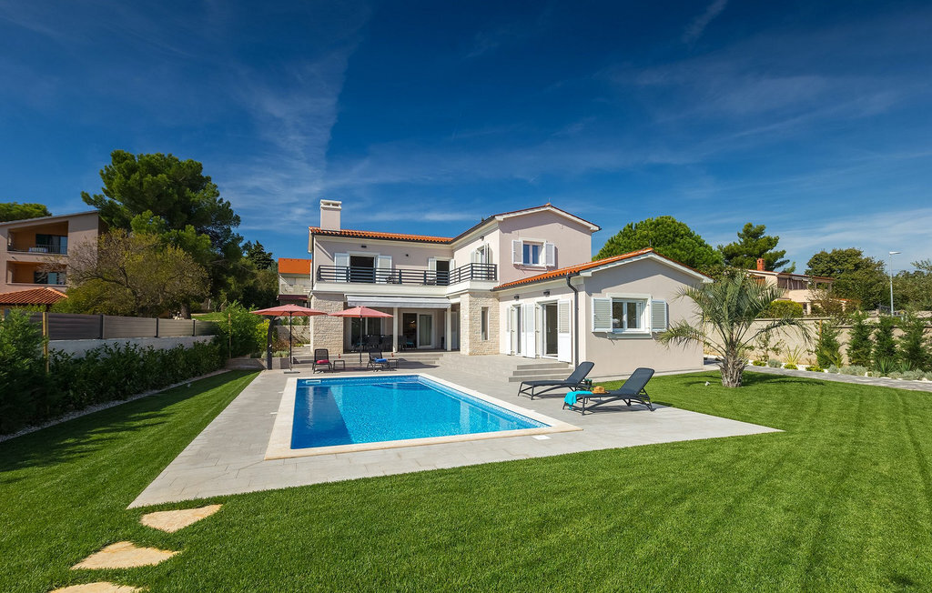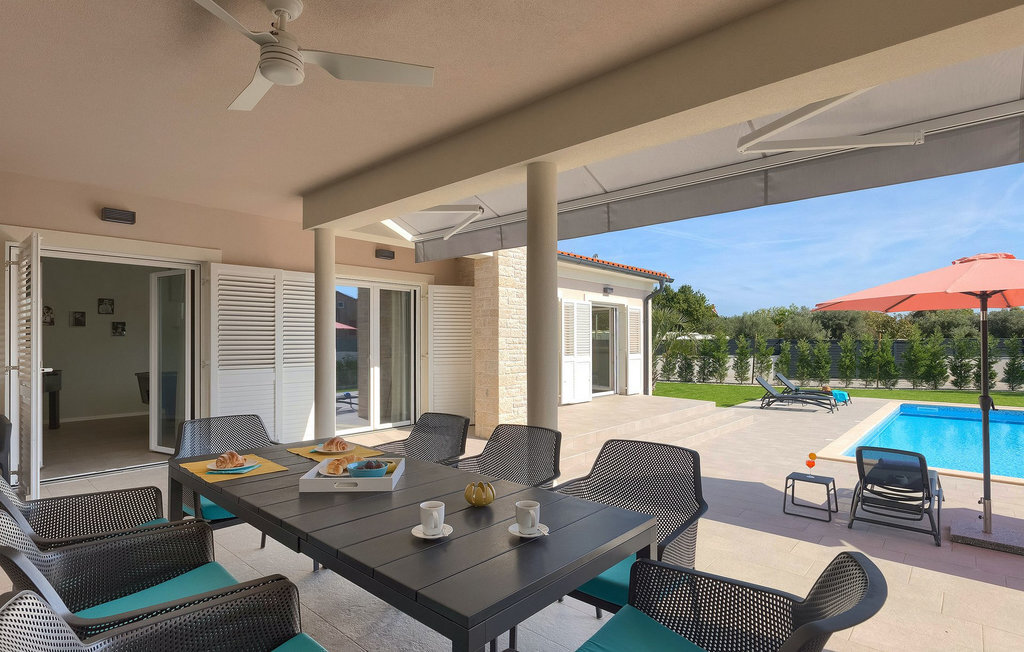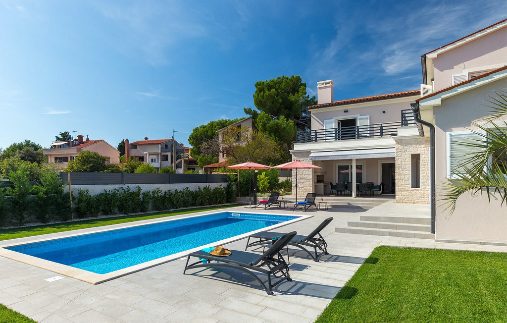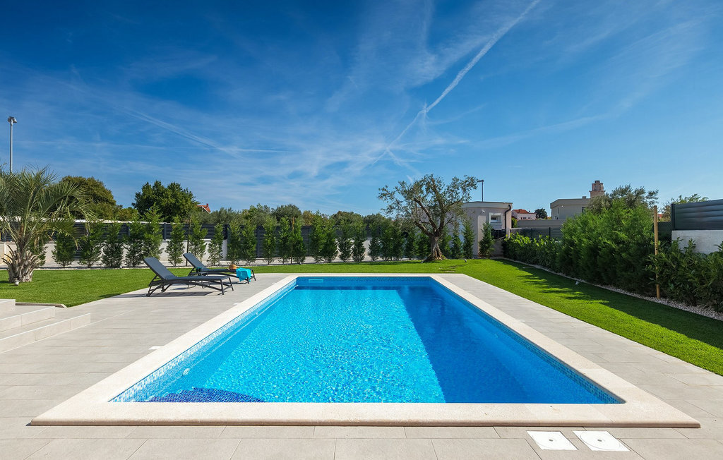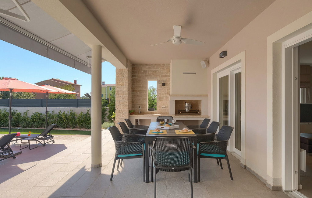 La villa est située sur un terrain de 1100 m2 entièrement clôturé et dispose d'une piscine privée accueillante, entourée d'agréables chaises longues. Une salle à manger extérieure avec un barbecue au charbon de bois et des toilettes extérieures séparées se trouvent dans le jardin. L'intérieur est magnifiquement conçu et offre plus qu'assez de confort pour un séjour reposant. Le rez-de-chaussée ouvert est divisé en un salon avec cheminée, télévision par satellite et chaîne stéréo, une salle à manger et une cuisine moderne entièrement équipée. Il y a également une pièce séparée dédiée uniquement au divertissement - une table de billard et un baby-foot sont à votre disposition. Une autre pièce est réservée à ceux qui veulent se faire plaisir - un sauna finlandais et une douche pour ceux qui veulent se détendre pendant les soirées fraîches, et l'espace fitness avec un cross trainer pour ceux qui veulent rester en forme même pendant les vacances.