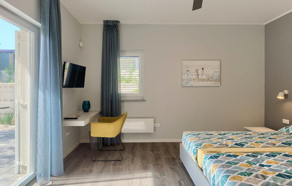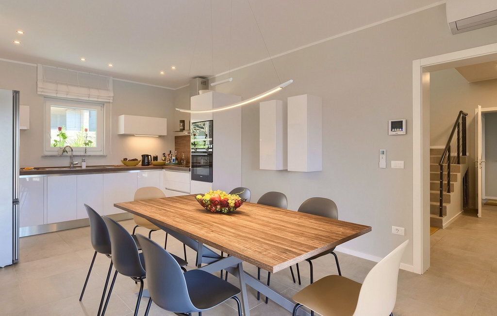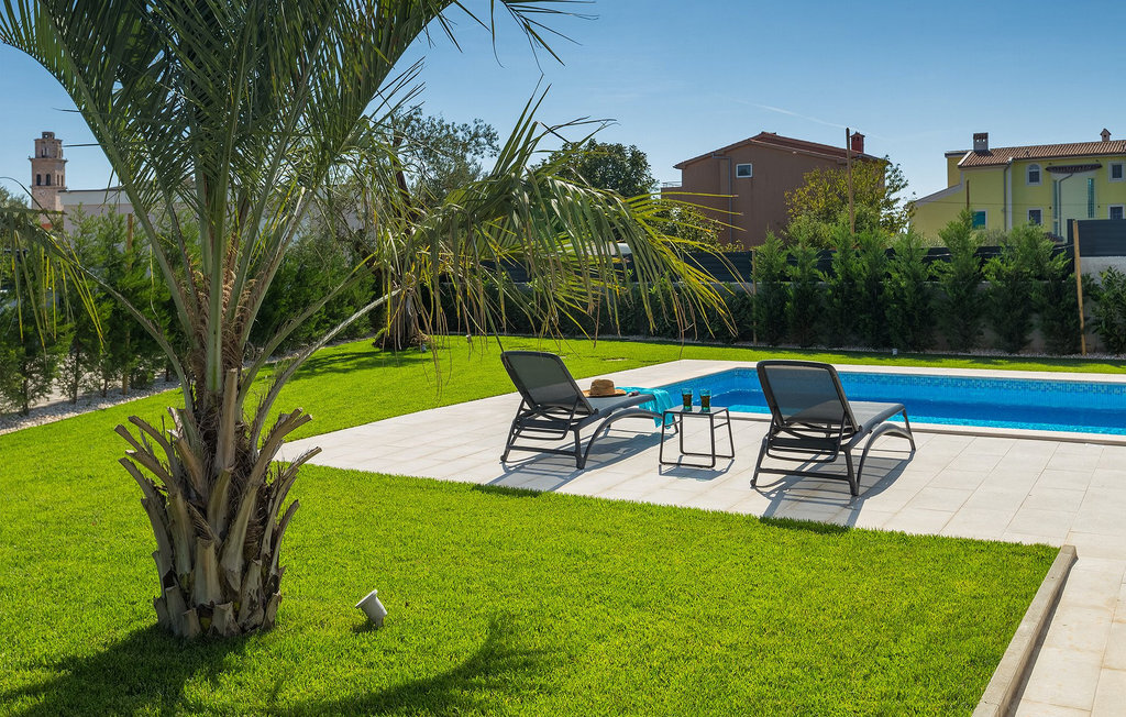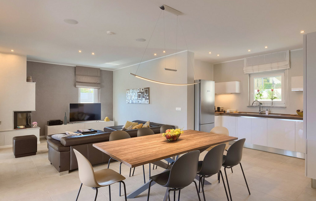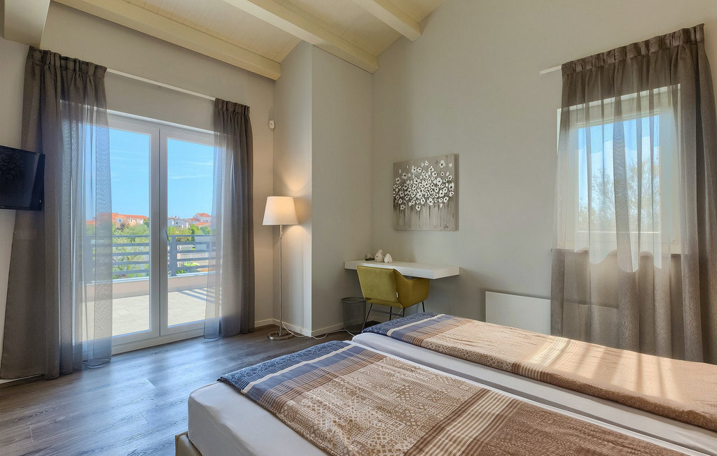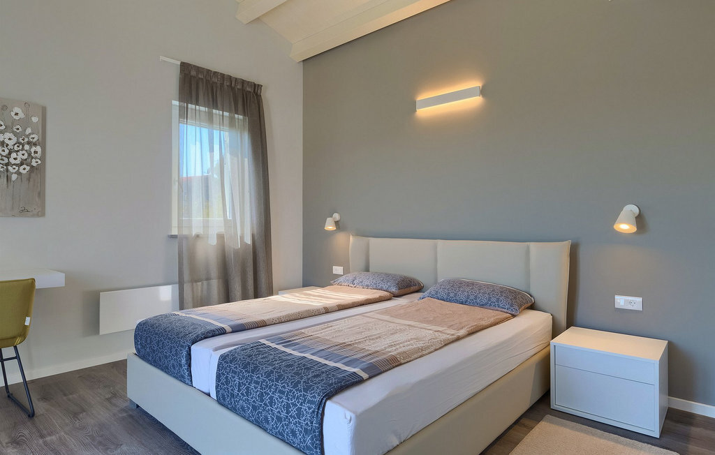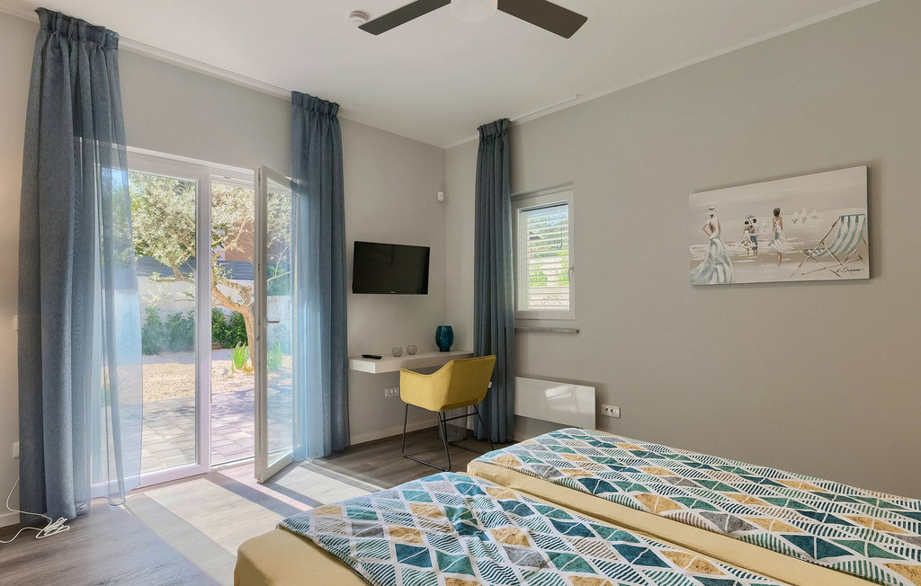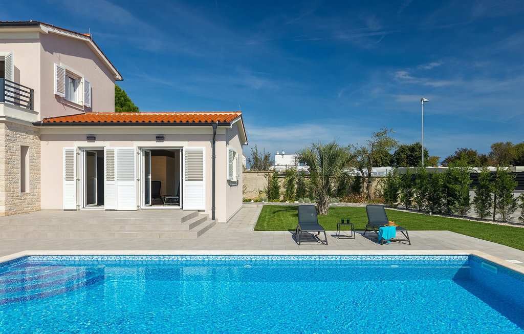 La villa est située sur un terrain de 1100 m2 entièrement clôturé et dispose d'une piscine privée accueillante, entourée d'agréables chaises longues. Une salle à manger extérieure avec un barbecue au charbon de bois et des toilettes extérieures séparées se trouvent dans le jardin. L'intérieur est magnifiquement conçu et offre plus qu'assez de confort pour un séjour reposant. Le rez-de-chaussée ouvert est divisé en un salon avec cheminée, télévision par satellite et chaîne stéréo, une salle à manger et une cuisine moderne entièrement équipée. Il y a également une pièce séparée dédiée uniquement au divertissement - une table de billard et un baby-foot sont à votre disposition. Une autre pièce est réservée à ceux qui veulent se faire plaisir - un sauna finlandais et une douche pour ceux qui veulent se détendre pendant les soirées fraîches, et l'espace fitness avec un cross trainer pour ceux qui veulent rester en forme même pendant les vacances.