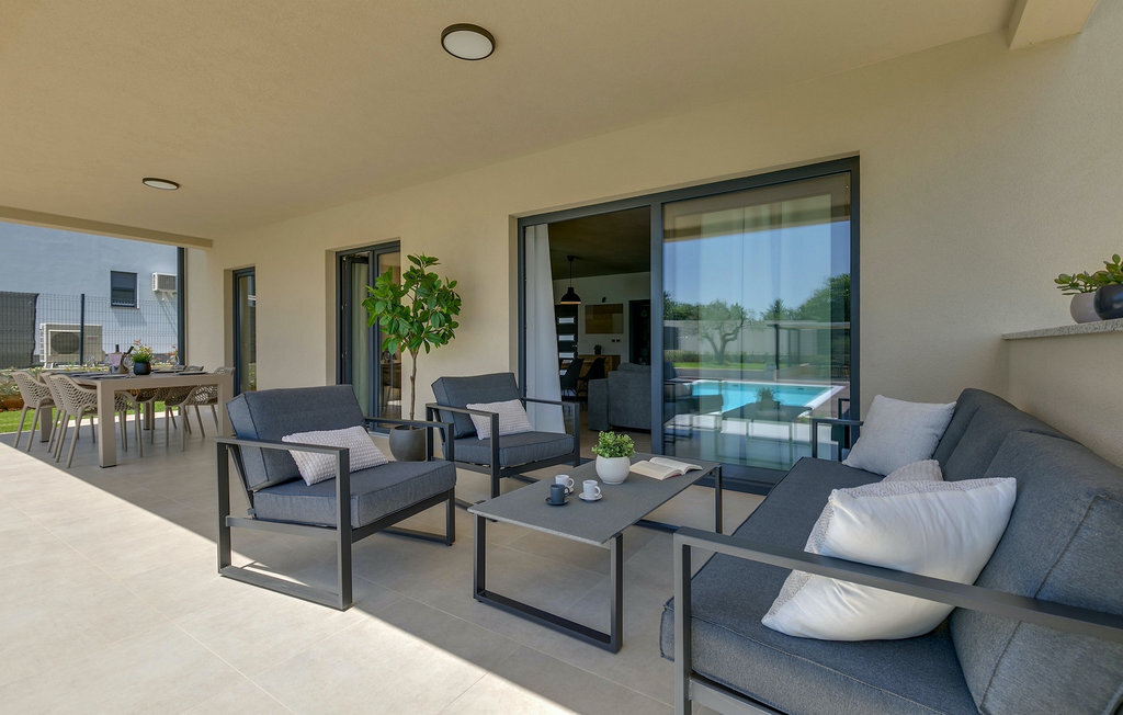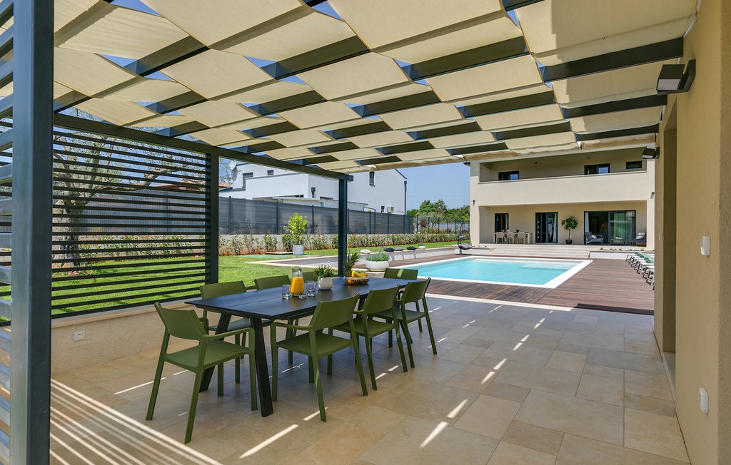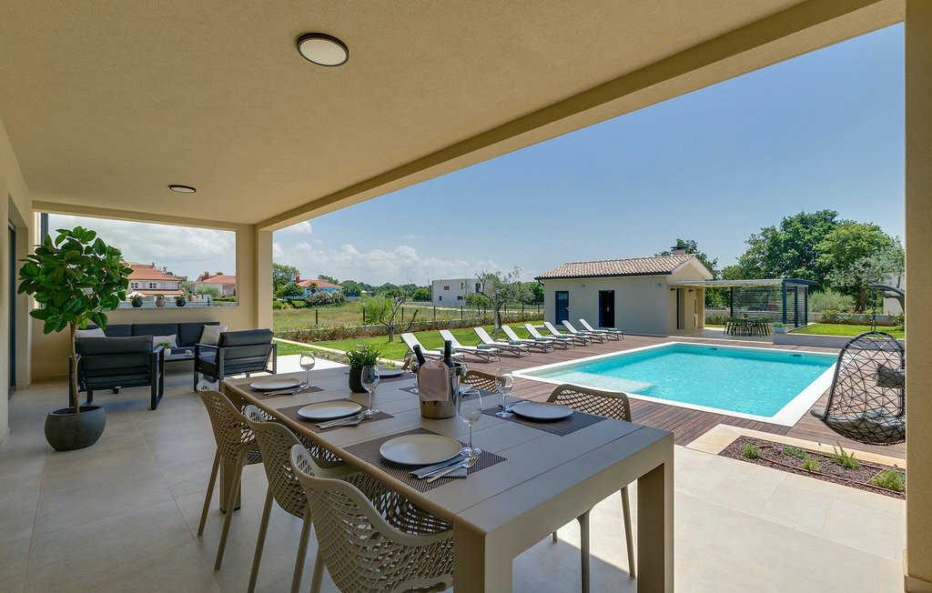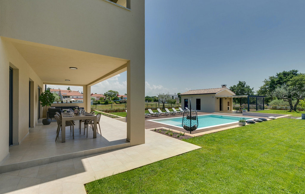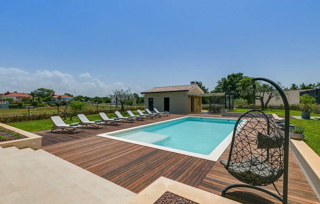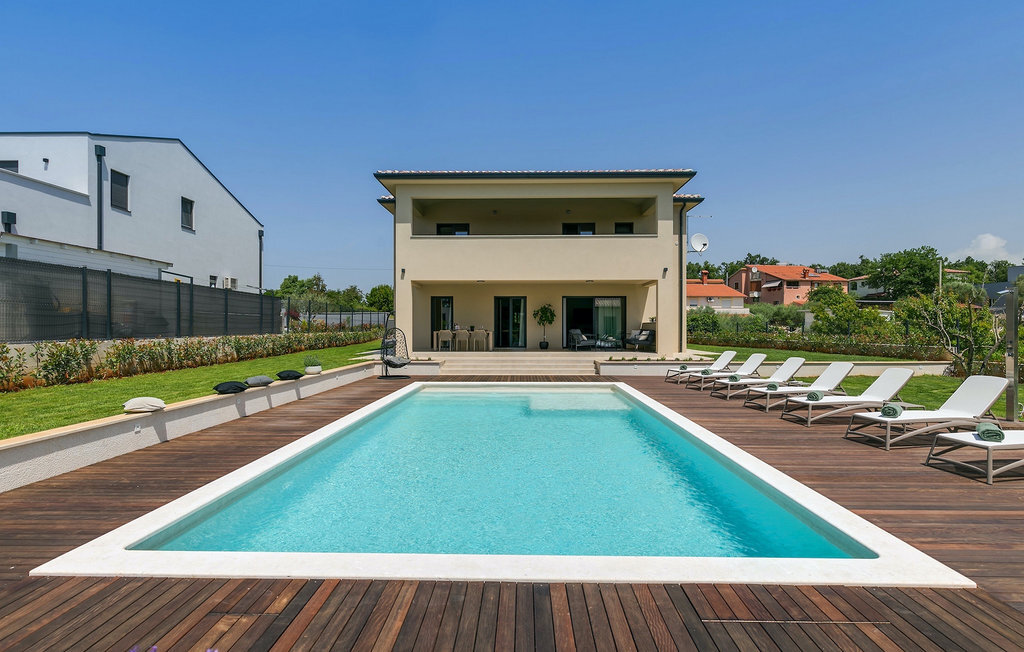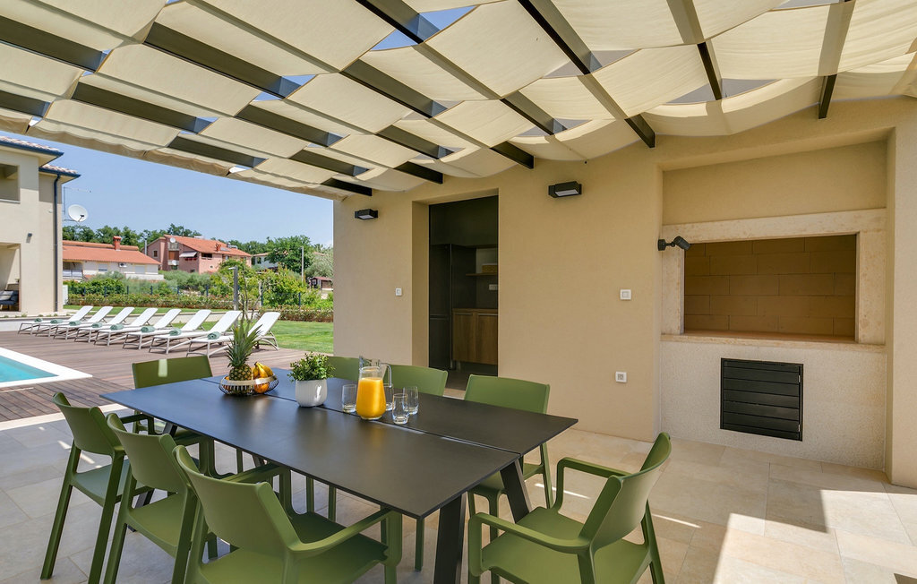 Chaque chambre est équipée de la climatisation et d'une télévision, 3 des chambres se trouvant au premier étage. Le rez-de-chaussée est ouvert et dispose d'un salon confortable et d'un accès direct à l'espace extérieur et à la grande piscine. Le salon s'étend jusqu'à la salle à manger, lumineuse et décorée avec soin. Vous y trouverez également une cuisine très moderne, entièrement équipée pour répondre à toutes vos exigences culinaires. Pour votre confort, une autre chambre à coucher avec sa propre salle de bain se trouve au rez-de-chaussée. La salle à manger extérieure est parfaite pour les moments de détente pendant que votre famille et vos amis dégustent les plats d'inspiration locale préparés dans la cuisine d'été. La grande piscine vous permettra de vous rafraîchir pendant les journées chaudes. Ne perdez pas de temps - réservez dès maintenant vos vacances dans cette villa de rêve moderne!La Villa Amoroso se trouve à une courte distance en voiture de Porec, l'une des plus grandes villes côtières d'Istrie. Porec est définitivement plus que le soleil et la mer - c'est une ville avec une longue et riche histoire qui remonte à l'époque de l'Empire romain. Si vous êtes à Porec, vous devez absolument visiter la basilique d'Euphrasius, un excellent exemple d'architecture byzantine précoce dans le bassin méditerranéen. La basilique est inscrite sur la liste du patrimoine mondial de l'UNESCO depuis 1997. Promenez-vous dans les ruelles étroites de la ville, visitez les musées et les galeries de la ville et profitez de l'atmosphère détendue de la ville. Les plages les plus proches ne sont qu'à 4 km de la villa et il y a une multitude de plages parmi lesquelles vous pouvez choisir en fonction de vos envies. Porec offre également de nombreux restaurants et bars - à vous de choisir ! Ne manquez pas de visiter l'intérieur de l'Istrie, avec ses nombreuses villes médiévales perchées sur les collines, comme Motovun, Buzet et Groznjan. Promenez-vous dans les nombreuses vignes et oliveraies et profitez de la nature de l'Istrie.
