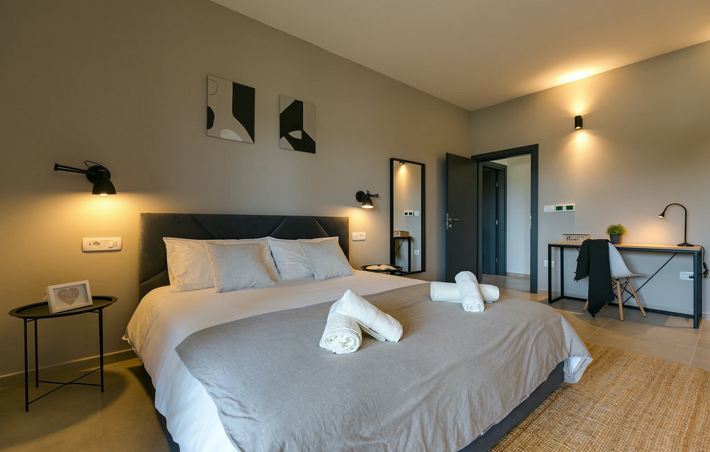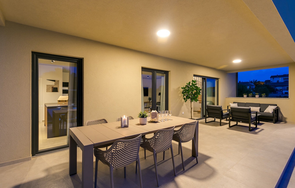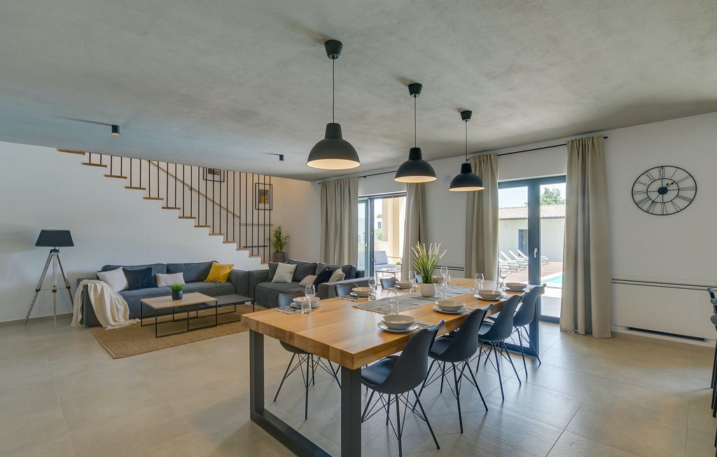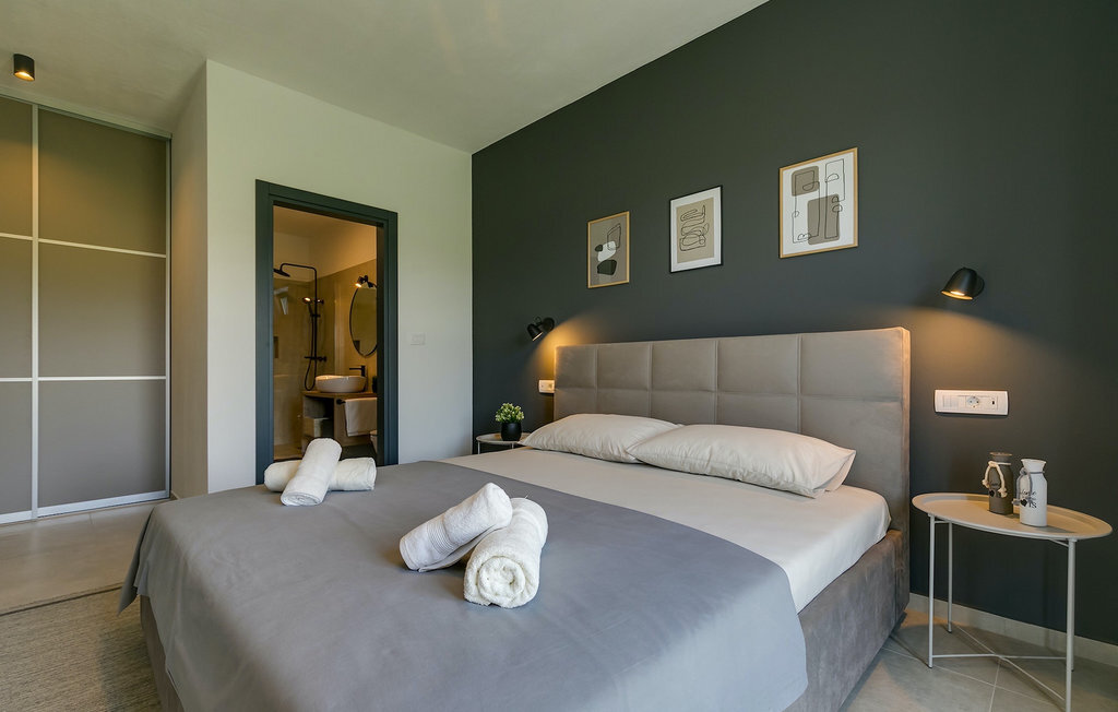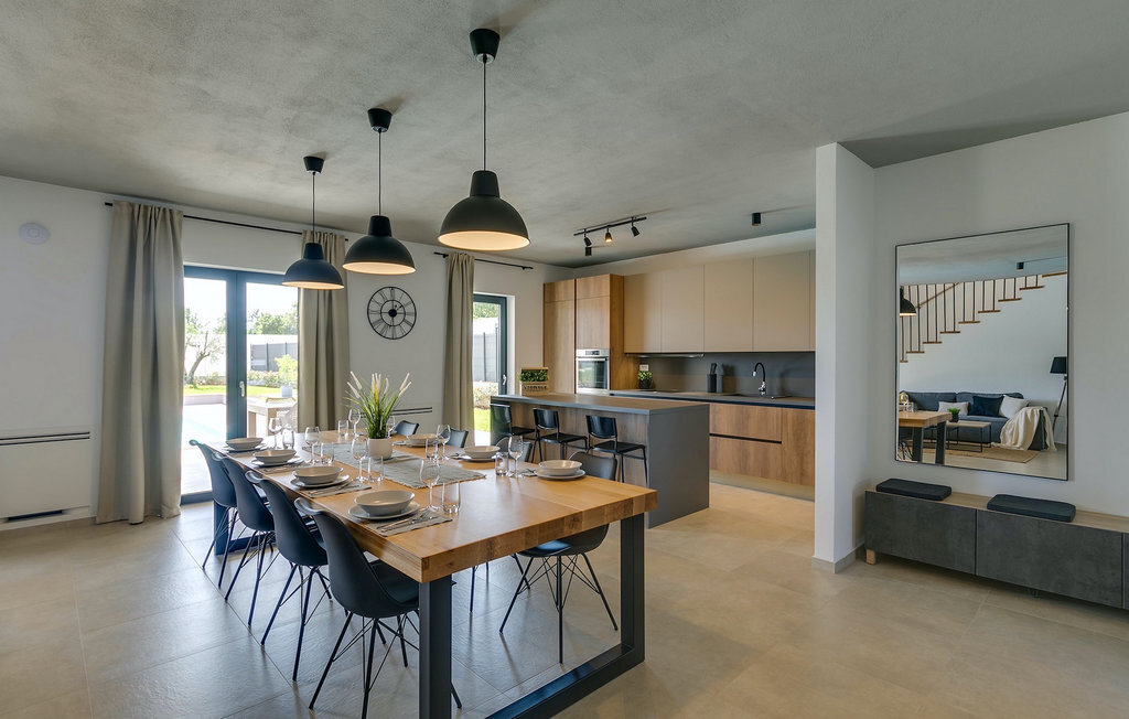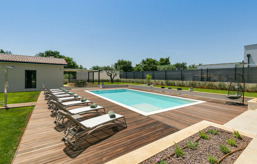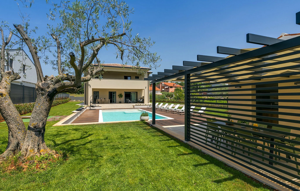 Chaque chambre est équipée de la climatisation et d'une télévision, 3 des chambres se trouvant au premier étage. Le rez-de-chaussée est ouvert et dispose d'un salon confortable et d'un accès direct à l'espace extérieur et à la grande piscine. Le salon s'étend jusqu'à la salle à manger, lumineuse et décorée avec soin. Vous y trouverez également une cuisine très moderne, entièrement équipée pour répondre à toutes vos exigences culinaires. Pour votre confort, une autre chambre à coucher avec sa propre salle de bain se trouve au rez-de-chaussée. La salle à manger extérieure est parfaite pour les moments de détente pendant que votre famille et vos amis dégustent les plats d'inspiration locale préparés dans la cuisine d'été. La grande piscine vous permettra de vous rafraîchir pendant les journées chaudes. Ne perdez pas de temps - réservez dès maintenant vos vacances dans cette villa de rêve moderne!La Villa Amoroso se trouve à une courte distance en voiture de Porec, l'une des plus grandes villes côtières d'Istrie. Porec est définitivement plus que le soleil et la mer - c'est une ville avec une longue et riche histoire qui remonte à l'époque de l'Empire romain. Si vous êtes à Porec, vous devez absolument visiter la basilique d'Euphrasius, un excellent exemple d'architecture byzantine précoce dans le bassin méditerranéen. La basilique est inscrite sur la liste du patrimoine mondial de l'UNESCO depuis 1997. Promenez-vous dans les ruelles étroites de la ville, visitez les musées et les galeries de la ville et profitez de l'atmosphère détendue de la ville. Les plages les plus proches ne sont qu'à 4 km de la villa et il y a une multitude de plages parmi lesquelles vous pouvez choisir en fonction de vos envies. Porec offre également de nombreux restaurants et bars - à vous de choisir ! Ne manquez pas de visiter l'intérieur de l'Istrie, avec ses nombreuses villes médiévales perchées sur les collines, comme Motovun, Buzet et Groznjan. Promenez-vous dans les nombreuses vignes et oliveraies et profitez de la nature de l'Istrie.