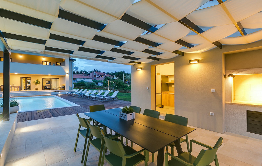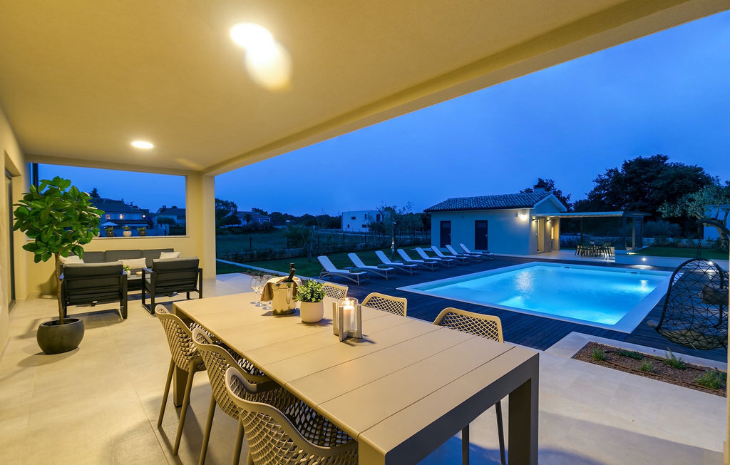 La Villa Amoroso est située dans le petit village pittoresque de Nova Vas, en Istrie, près de la ville de Porec. Il s'agit d'une villa luxueuse, au design moderne, qui offre confort et détente - cela ne ressemble-t-il pas à des vacances de rêve parfaites ? La villa peut accueillir jusqu'à 8 hôtes, dans 4 chambres à coucher modernes mais fonctionnelles et confortables, avec salle de bain privée, qui garantissent une bonne qualité de sommeil.