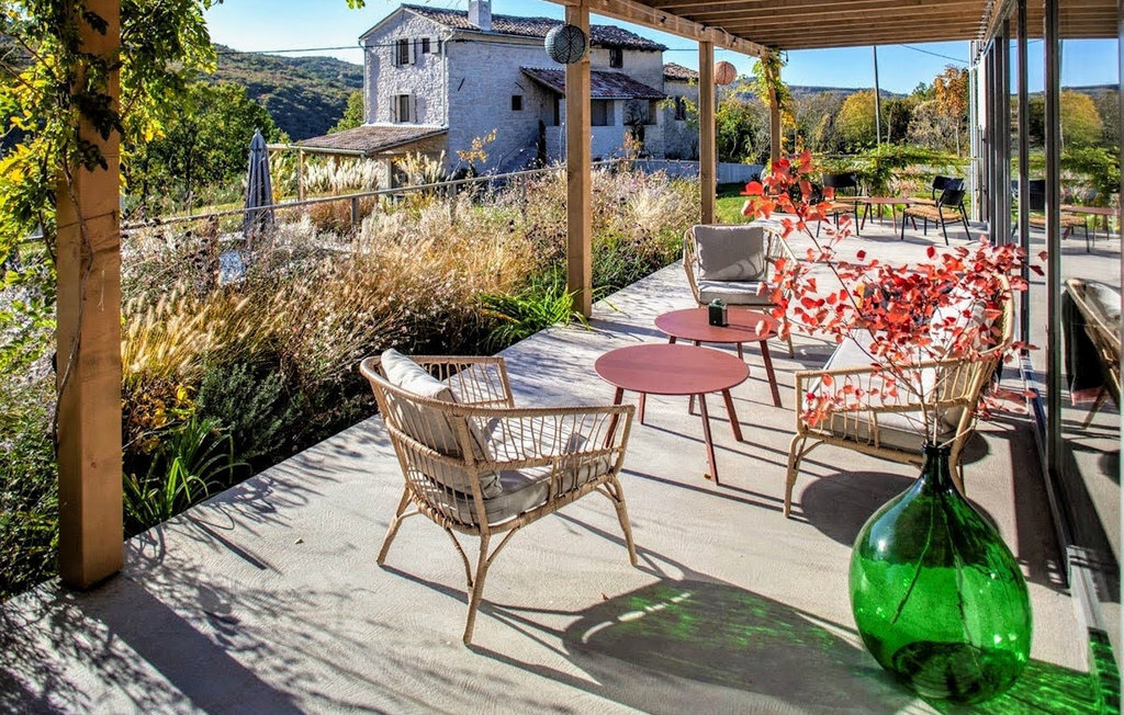 La Villa MilaElla est une magnifique villa avec des espaces extérieurs et intérieurs extrêmement accueillants et se compose en fait de deux maisons, magnifiquement et élégamment meublées, entourées d'une nature magnifique et féerique. La Villa MilaElla propose deux maisons aménagées individuellement et est idéale pour des vacances en famille, elle offre de l'intimité et assure la détente. Les deux villas sont situées sur un grand terrain allant jusqu'à 2500 m2 avec une piscine comme partie centrale du terrain. Dans la petite maison en pierre, il y a 2 chambres, chacune avec sa propre salle de bain, une salle à manger, un salon et une cuisine entièrement équipée qui a tout ce dont vous avez besoin pour préparer de délicieux repas pour toute la famille. La grande maison se compose de 4 chambres et de 3 salles de bains. Toutes les chambres sont entièrement climatisées. Le rez-de-chaussée de la villa se compose d'un salon spacieux avec vue sur la magnifique nature et la piscine, d'une salle à manger et d'une cuisine entièrement moderne. L'espace extérieur de la villa comprend une grande piscine entourée de chaises longues, un endroit idéal pour rassembler toute la famille lors des chaudes journées d'été. Il y a également une grande terrasse couverte spacieuse et un espace barbecue. Réservez la Villa MilaElla et passez un séjour plein de calme, de détente, de confort et de plaisir!La Villa MilaElla est située dans le village idyllique de Brkac, à quelques kilomètres seulement de la ville médiévale de Motovun. Motovun est connue pour ses monuments et sa vue spectaculaire sur les environs pittoresques avec ses collines, ses vignobles et la vallée magique de la Mirna. En outre, un large éventail d'activités de loisirs s'y offre à vous. De nombreux restaurants et tavernes proposent des spécialités régionales telles que l'huile d'olive de qualité, le fromage et le jambon faits maison, des vins de qualité et bien sûr la truffe, pour laquelle la région est mondialement connue. Les amateurs de vacances actives seront ravis de découvrir les nombreuses pistes cyclables et sentiers de randonnée de la région. Bien entendu, vous ne devez pas limiter vos vacances à l'Istrie centrale. Visitez les villes côtières de Pula, Rovinj et Porec. Une attraction inévitable est le parc national de Brijuni, connu pour ses belles plages, ses terrains de golf, mais aussi son zoo. Goûtez aux plats traditionnels istriens dans de petites tavernes familiales ou participez à la recherche de truffes dans la forêt de Motovun.