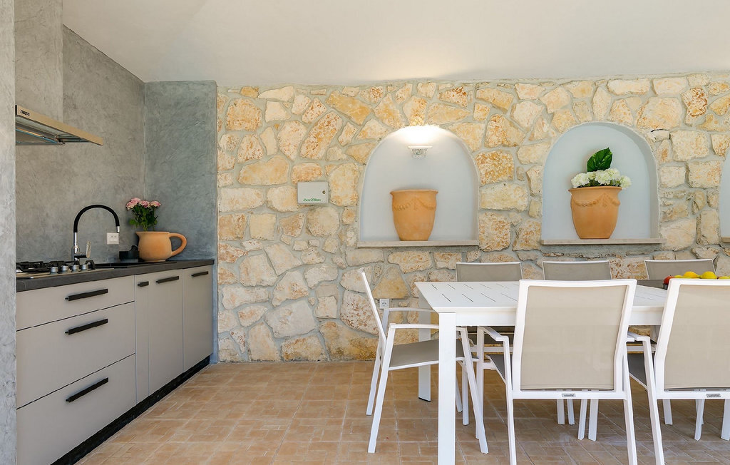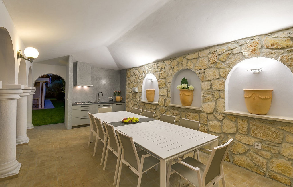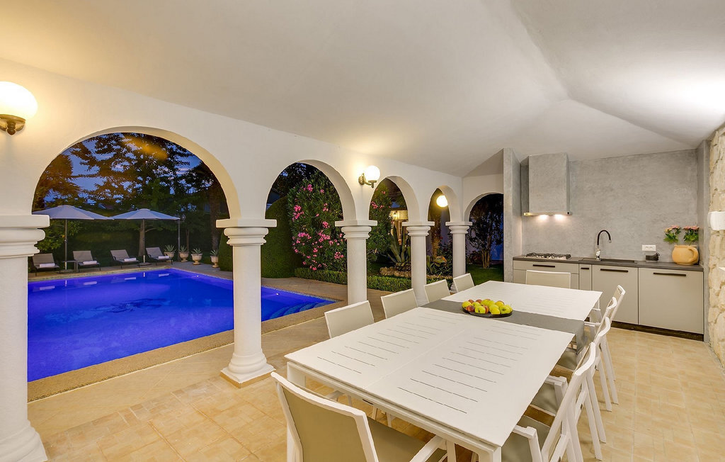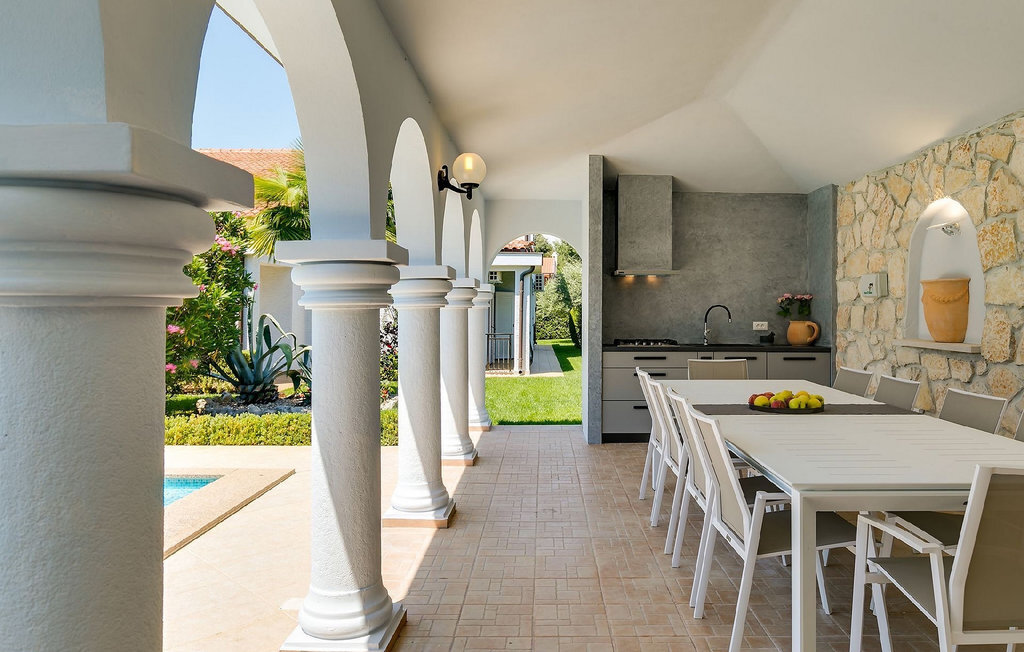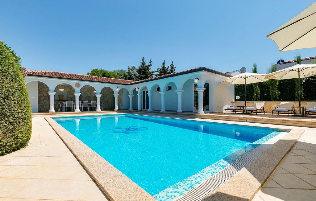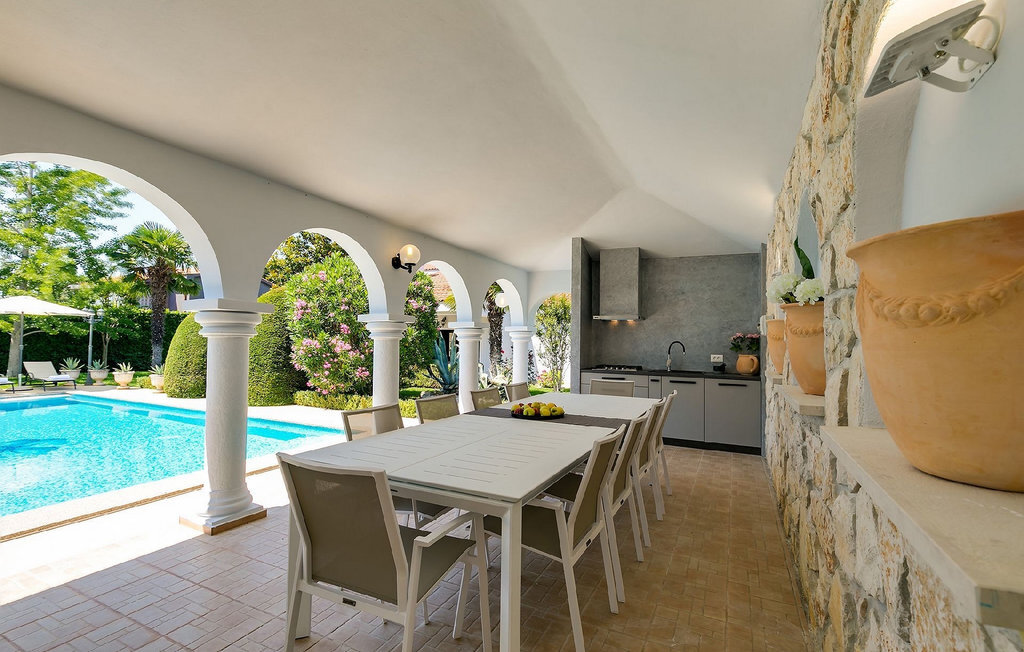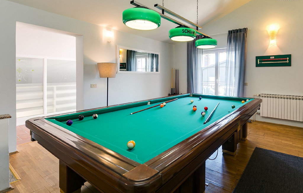 La belle villa familiale My Lia est située dans le petit village de Kukci, à une courte distance en voiture de Porec. Cette villa dispose de 5 chambres et peut accueillir jusqu'à 10 personnes, ce qui en fait le choix parfait pour les familles nombreuses. La villa My Lia est chaleureusement aménagée pour que vous vous sentiez comme chez vous. Le rez-de-chaussée se compose d'un salon confortable avec cheminée et d'une cuisine moderne entièrement équipée avec coin repas. On y trouve également 2 chambres à coucher avec chacune un lit double et une chambre avec 2 lits simples. Au rez-de-chaussée se trouvent également 2 salles de bains, l'une avec baignoire et l'autre avec cabine de douche. Les escaliers vous mènent au premier étage, qui se compose d'un agréable espace de vie ouvert avec une table de billard, d'une chambre à coucher joliment aménagée avec un lit double, d'une chambre à coucher avec deux lits simples et d'une autre salle de bain avec baignoire jacuzzi. La villa offre également une cuisine d'été qui est l'endroit idéal pour une réunion de famille. Un barbecue à gaz est également à votre disposition, ce qui vous permettra de préparer de délicieux repas pour votre famille et vos amis. Si vous souhaitez passer vos vacances au soleil, vous trouverez devant la villa une grande piscine très accueillante et des chaises longues où vous pourrez profiter de la chaude brise d'été. Alors, profitez de cette opportunité et de vos vacances.