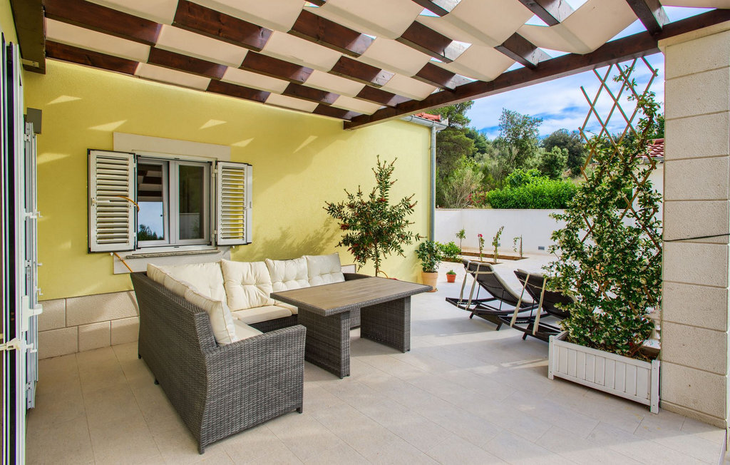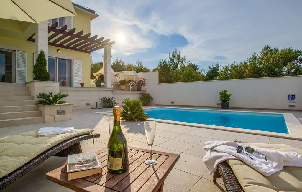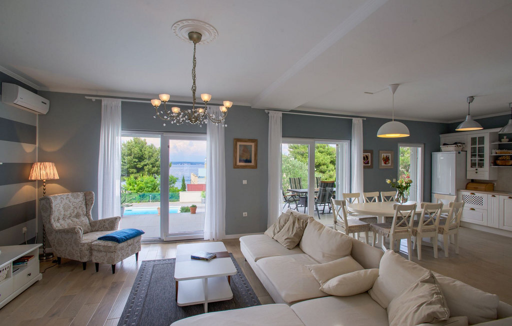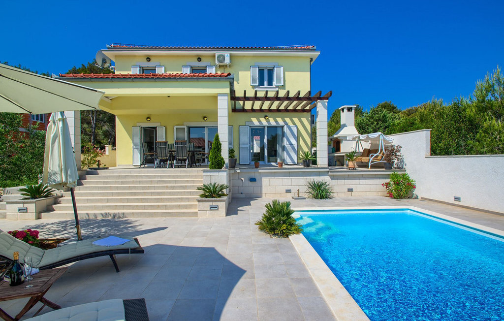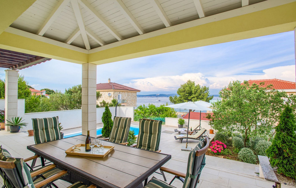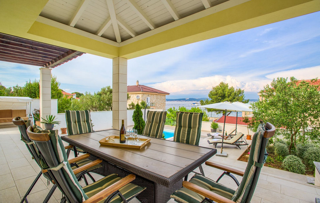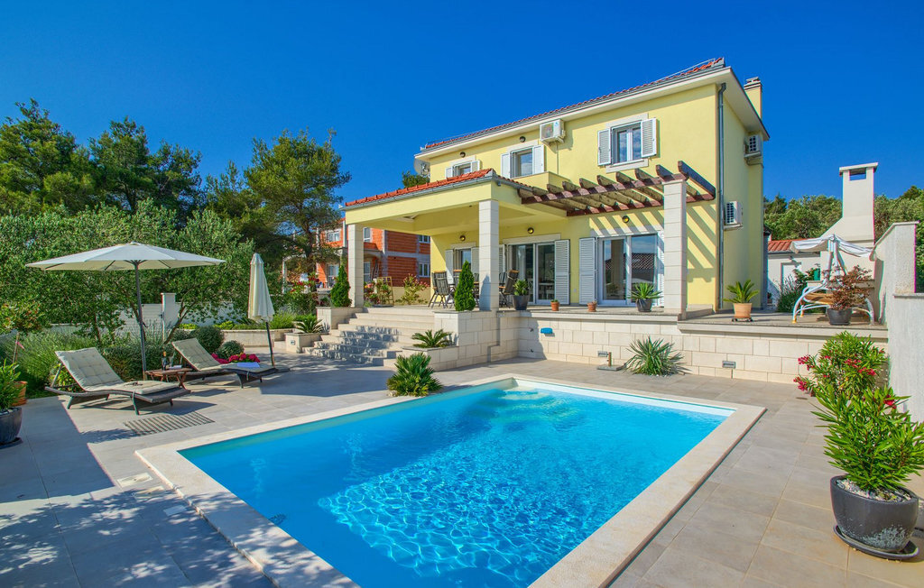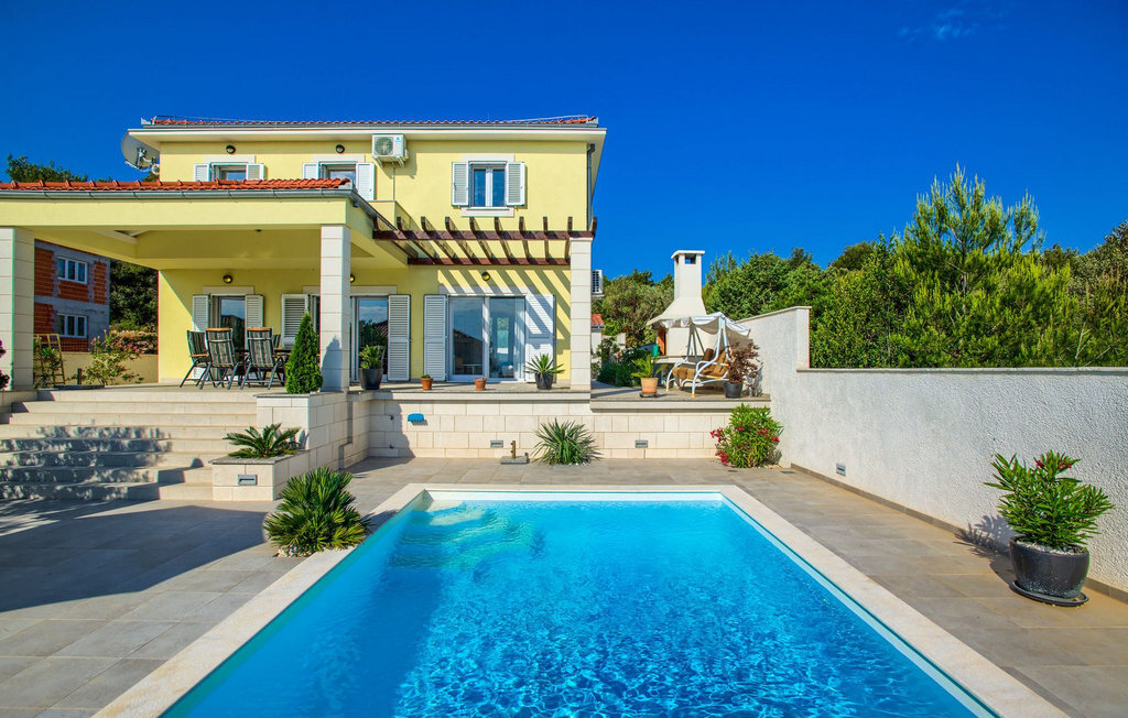 La magnifique villa Tatijana se trouve sur l'île d'Ugljan, à proximité immédiate de la mer. Elle peut accueillir jusqu'à 8 personnes et est idéale pour les familles, les groupes d'amis ou les couples. L'espace extérieur offre un jardin bien entretenu, décoré de plantes méditerranéennes, une piscine privée avec des chaises longues et une vue magnifique sur la mer que vous apprécierez certainement ! Une terrasse couverte et un barbecue sont à votre disposition - parfait pour préparer de délicieuses spécialités et passer la soirée d'été avec vos proches. Le rez-de-chaussée ouvert se compose d'une cuisine entièrement équipée avec coin repas et d'un salon. Dès que vous entrez dans la pièce, vous remarquerez l'aménagement élégant aux couleurs sobres ainsi que la cheminée qui confère à la pièce une atmosphère chaleureuse. Quatre chambres confortables (une au rez-de-chaussée et trois au premier étage) et deux salles de bains sont également à votre disposition. Une table de ping-pong et des fléchettes sont disponibles. La villa entièrement climatisée dispose d'un accès à Internet, d'un parking privé pour quatre voitures et le terrain est entièrement clôturé. La villa Tatijana est le choix parfait si vous souhaitez passer des vacances reposantes à proximité de la mer. Ici, vous vous sentirez comme chez vous!La villa est située à Kukljica, un petit village sur l'île d'Ugljan. Depuis Zadar, il y a des liaisons quotidiennes par ferry vers l'île d'Ugljan et le port du village de Preko. Zadar est une vieille ville qui vaut la peine d'être vue, riche en patrimoine culturel et en attractions historiques. Le célèbre Alfred Hitchcock a dit que le plus beau coucher de soleil était à Zadar - ne le manquez pas ! La vieille ville abrite des monuments de l'Antiquité, du Moyen-Âge et de la Renaissance. De nos jours, Zadar est connue pour son orgue de mer et son installation lumineuse "Pozdrav suncu" (Salutations au soleil).