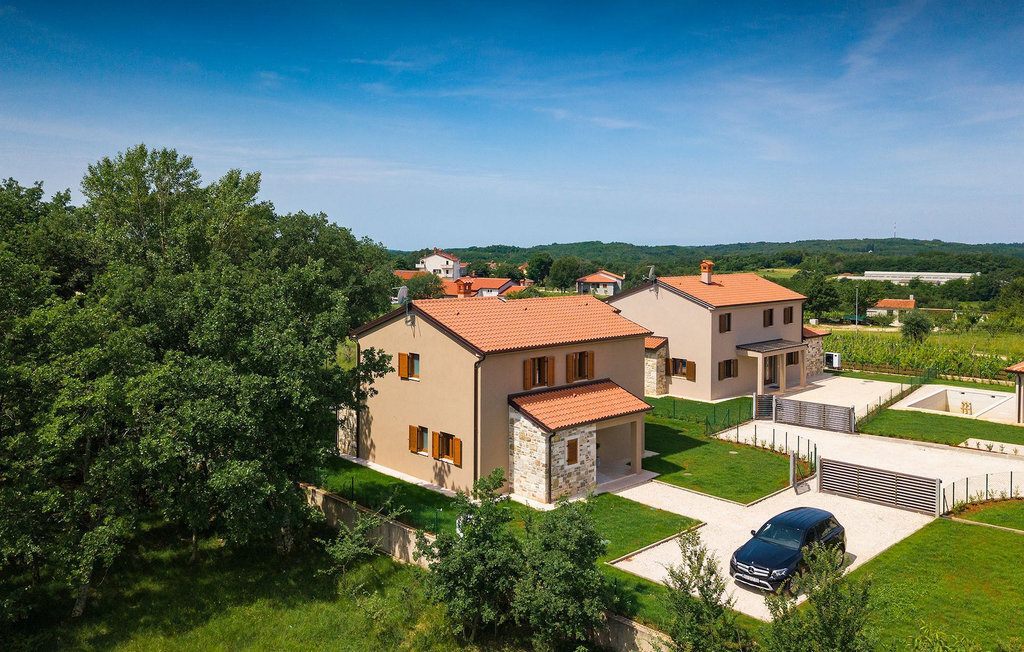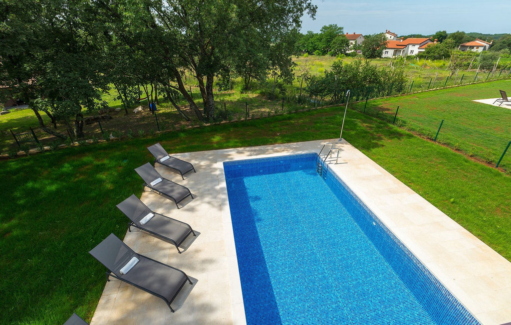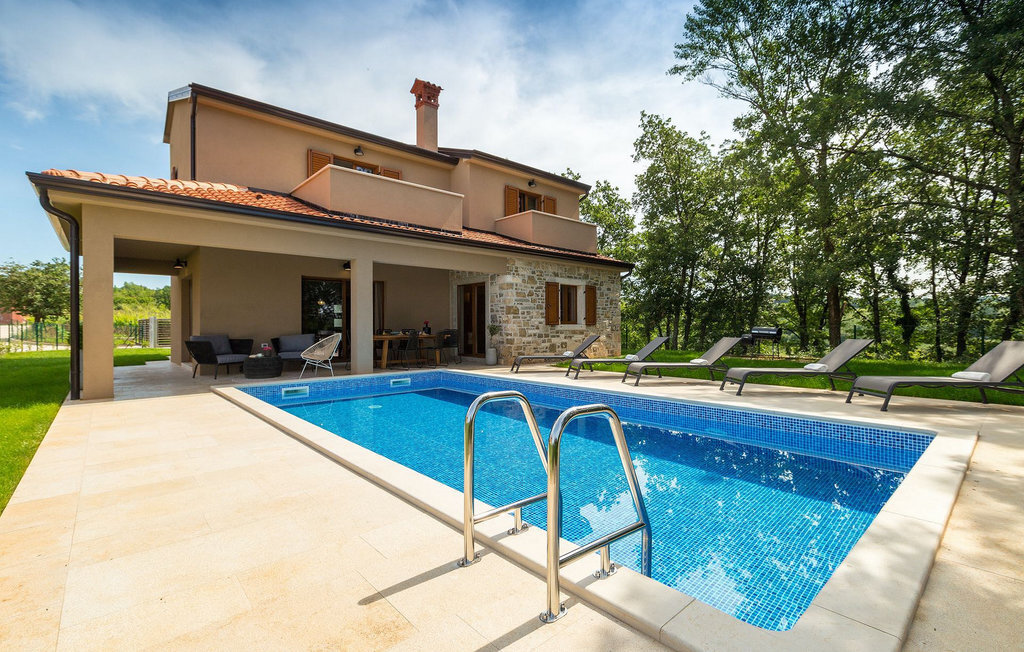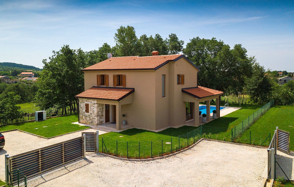 Le rez-de-chaussée de la villa se compose d'un salon aéré avec accès direct au jardin et à l'espace piscine, ainsi que d'une cuisine entièrement équipée avec coin repas. Un WC et une chambre à coucher avec un lit simple se trouvent également au rez-de-chaussée. Les trois chambres restantes, chacune avec un lit double, se trouvent à l'étage supérieur. L'une de ces chambres dispose d'une salle de bain privée et d'un accès à l'un des deux balcons où vous pourrez prendre votre café le matin sous le chaud soleil d'Istrie. À une courte distance en voiture de la villa, au-dessus de la vallée de la Mirna, se trouve probablement la ville médiévale la plus connue et la plus attrayante d'Istrie, Movotun, dont le panorama est un symbole bien connu de l'intérieur de l'Istrie. Les festivités locales traditionnelles ainsi que le célèbre festival international du film y sont organisés et animent cette petite ville tranquille. Le nombre de villes et de villages à visiter est trop long à énumérer ; nous sommes ici au cœur de l'Istrie centrale, l'un des plus beaux endroits du monde. Elle est également célèbre pour ses raisins locaux de teran et de malvazija, son huile d'olive, ses fromages maison, son prosciutto, ses viandes grillées et bien sûr ses truffes, que l'on peut déguster dans les restaurants des nombreux villages et villes de la région. Il existe de nombreux sentiers de randonnée et pistes cyclables, dont l'un des plus beaux est l'historique Parenzana - ancienne ligne de chemin de fer, où l'on peut même faire l'expérience unique d'un voyage en train touristique le long du parcours historique. L'équitation, quelques parties de golf ou le simple fait de profiter des eaux thermales de la station balnéaire voisine viennent allonger cette longue liste d'activités. Les principales villes côtières d'Umag, Novigrad et Porec sont facilement accessibles grâce à l'excellent réseau routier et offrent de très nombreuses installations de loisirs, une bonne vie nocturne, des bars et des restaurants.