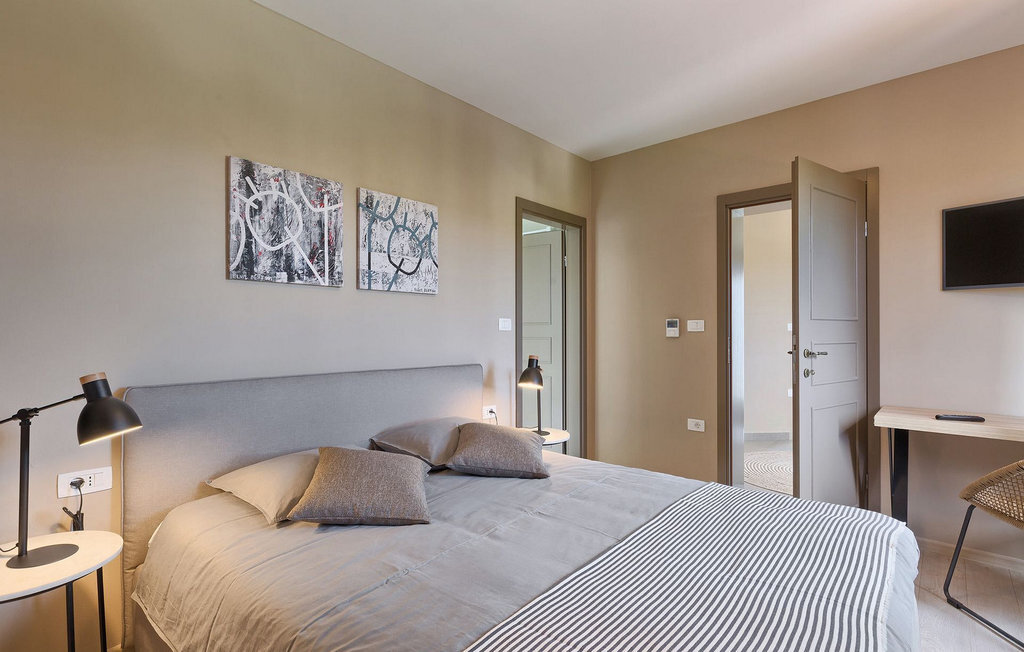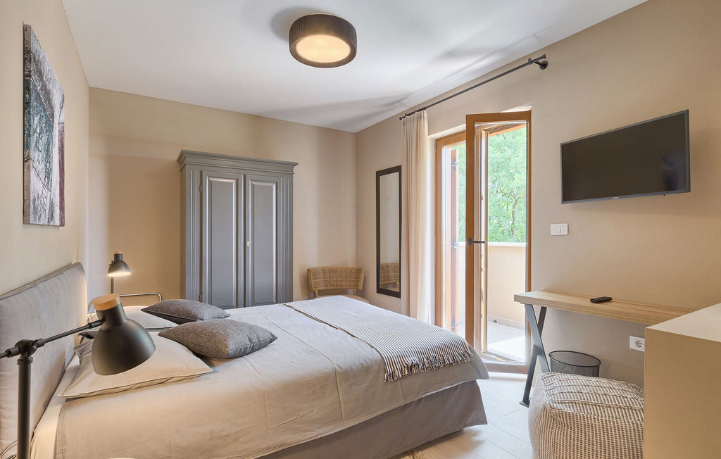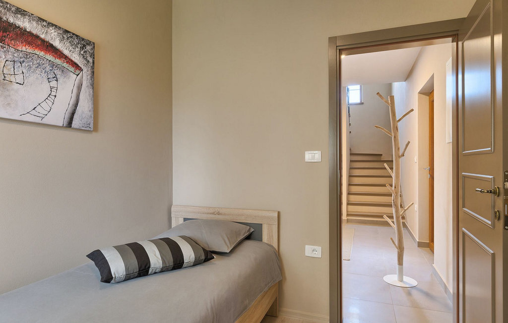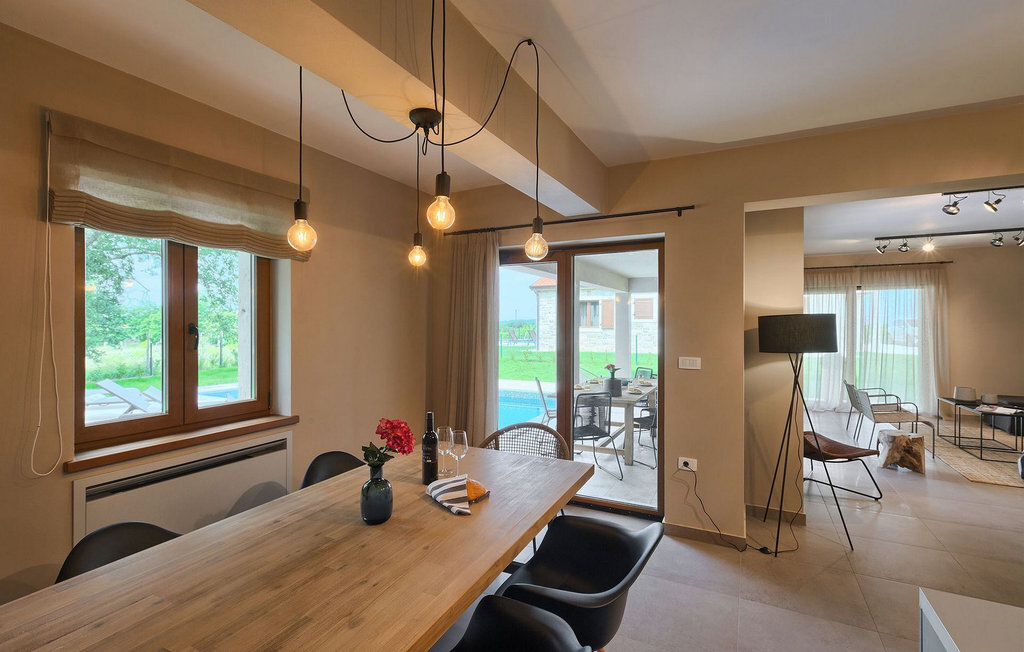 La villa Brih III peut accueillir jusqu'à 8 personnes dans ses quatre chambres à coucher. L'intérieur de la villa, décoré avec goût, et l'environnement rural de l'Istrie font un équilibre parfait pour des vacances reposantes dans le confort et le style. Avec la piscine privée et la belle terrasse couverte avec un coin repas et un salon, vous ne serez pas déçus.