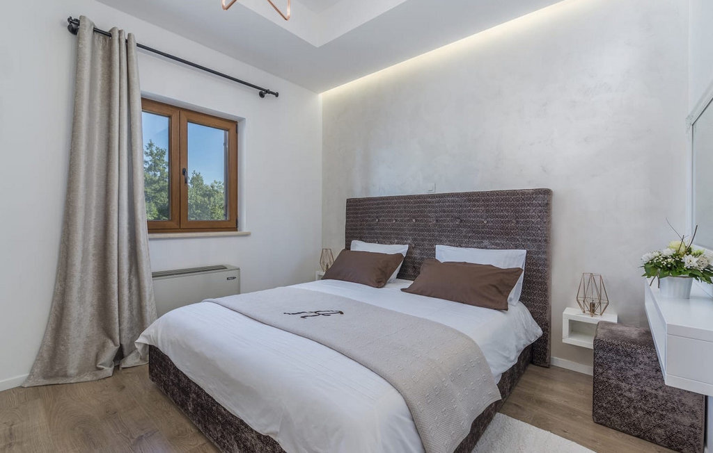 La Villa Anima est une magnifique villa moderne avec piscine privée située dans le centre de l'Istrie. Dans un intérieur joliment aménagé, la Villa Anima peut accueillir 8 hôtes. La villa Anima comprend 4 chambres à coucher, 3 salles de bains, une cuisine entièrement équipée avec une table à manger et un salon. La Villa Anima dispose d'une piscine privée située dans le beau jardin verdoyant, juste à côté de l'aire de jeux pour enfants. Pour des moments encore plus agréables dans cette villa avec piscine, une terrasse avec coin repas en plein air et barbecue est à disposition. La Villa Anima est climatisée et dispose d'un accès Internet sans fil, d'un parking privé pour trois voitures et offre tout ce qu'il faut pour des vacances détendues.