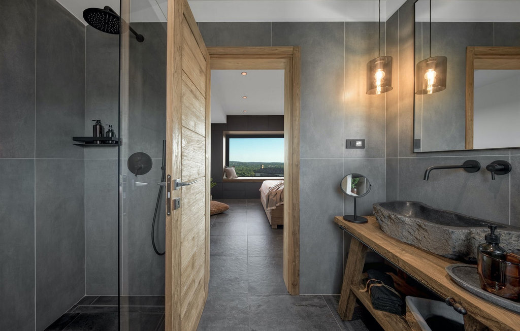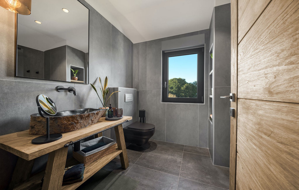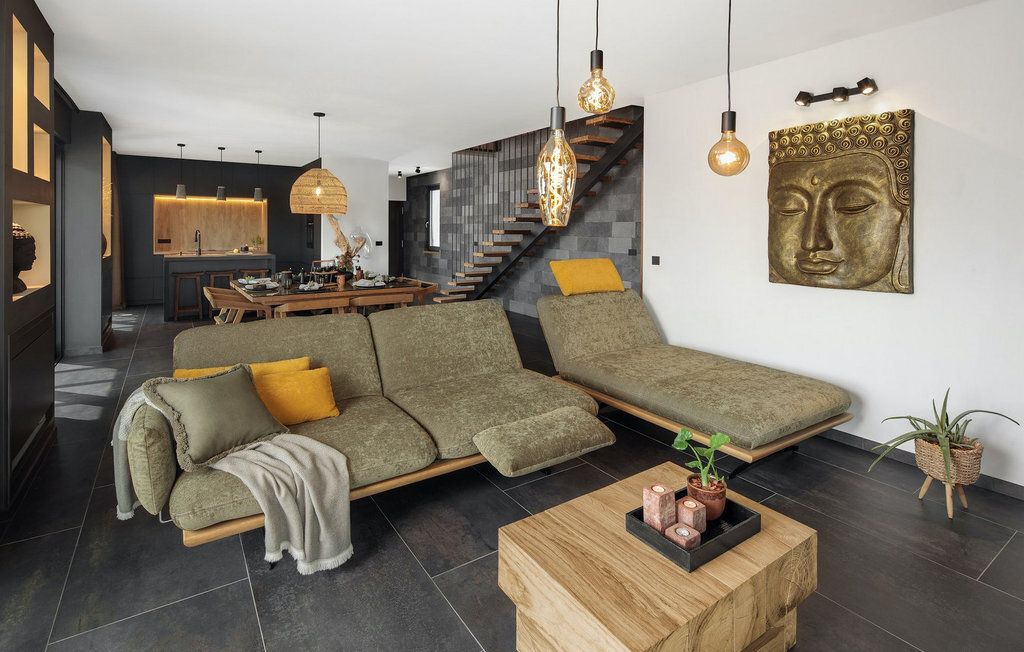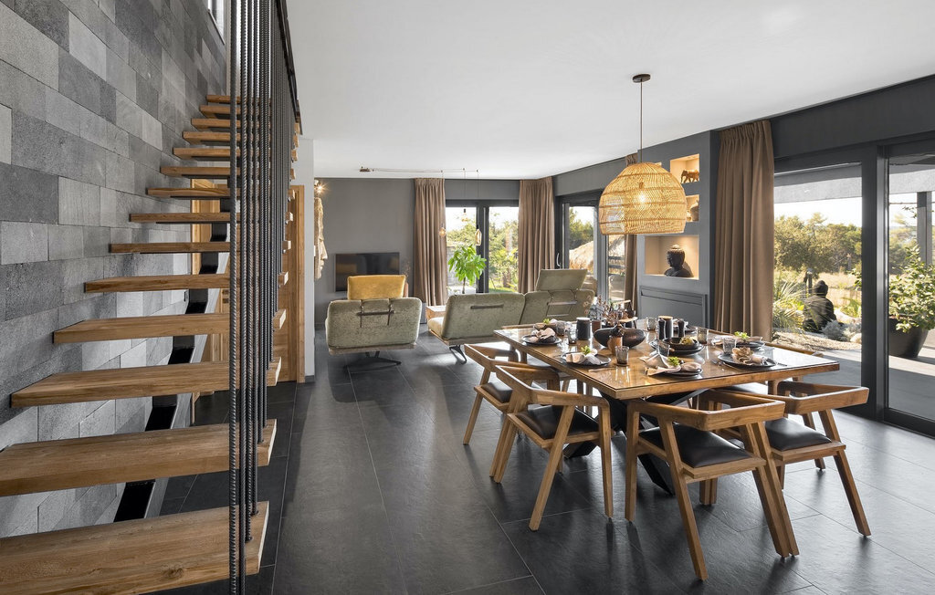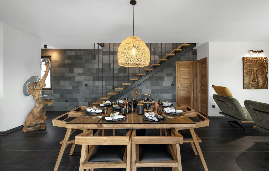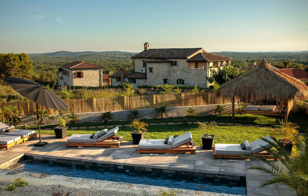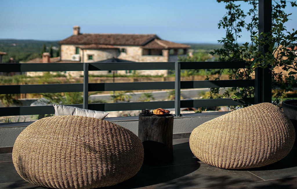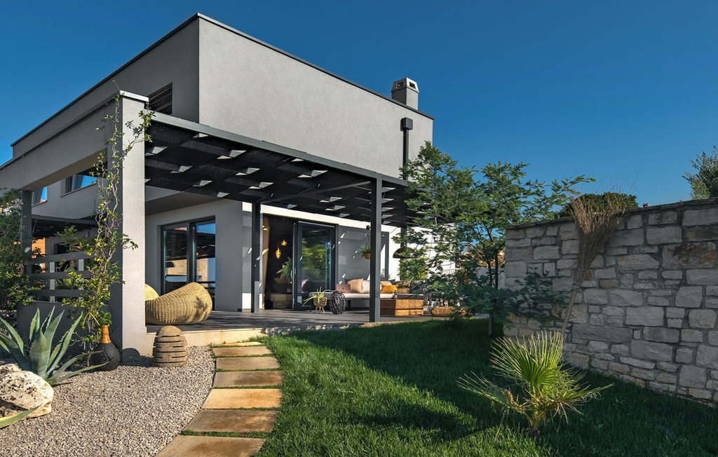 La villa Merapi est un mélange de design moderne, de nature et de spiritualité. La pierre volcanique noire, connue pour ses propriétés curatives et relaxantes, a été utilisée à la fois dans le design moderne de cette villa et dans le design de la piscine. Des meubles en bois faits à la main décorent cette villa avec des éléments naturels. Différentes espèces de plantes entourent la villa et créent une magnifique oasis pour des vacances reposantes. La villa est divisée en rez-de-chaussée et premier étage. Au rez-de-chaussée se trouve un espace ouvert avec un salon, une cuisine et une salle à manger, et au premier étage se trouvent trois chambres et deux salles de bain, dont l'une est une salle de bain en suite. L'intérieur de cette belle villa est décoré avec de nombreux détails naturels. La combinaison du bois et de la pierre donne à cette villa un aspect à la fois naturel et moderne, qui vous procurera un sentiment de tranquillité. Si vous êtes de ceux qui veulent se réveiller chaque matin avec une vue magnifique sur la nature depuis leur lit, la villa Merapi est l'endroit idéal pour vous. Les grandes baies vitrées des chambres à coucher offrent également un espace pour s'asseoir et s'allonger. Profitez ici, avec un bon livre, d'une vue à couper le souffle. La belle cour intérieure de la villa, aménagée avec soin et agrémentée de différentes plantes, décore la villa et crée une petite oasis. Rafraîchissez-vous dans la piscine privée avec cascades de massage. Si vous êtes amateur de jacuzzi, la villa propose un jacuzzi en plein air sous un pavillon en bambou. Pour une ambiance supplémentaire, il y a une grande balançoire pour deux personnes, où vous pouvez savourer une boisson rafraîchissante tout en regardant le ciel étoilé. Plongez dans un lieu exotique au cœur de l'Istrie avec un environnement idyllique et détendez-vous du stress quotidien à la Villa Merapi.La Villa Merapi offre à ses hôtes non seulement une ambiance magnifique avec un intérieur moderne, mais elle se trouve également dans un environnement idyllique avec un jardin aménagé de rêve. La villa est située dans le village de Sv. Lovrec, à 15 km de la mer, à proximité de la ville de Porec et de ses jolies plages de galets. Visitez le célèbre canal de Lim, qui n'est qu'à 30 minutes en voiture, et explorez cette magnifique région naturelle. Des restaurants et des cafés se trouvent à Sveti Lovrec, à 200 mètres de la villa. Si vous avez besoin d'acheter de la nourriture, les magasins locaux ne sont qu'à 500 mètres de la villa, ce qui vous permet de les atteindre facilement à pied. L'emplacement idyllique de la Villa Merapi ravira tous les visiteurs. Réservez cette superbe villa et profitez de l'environnement istrien à couper le souffle.