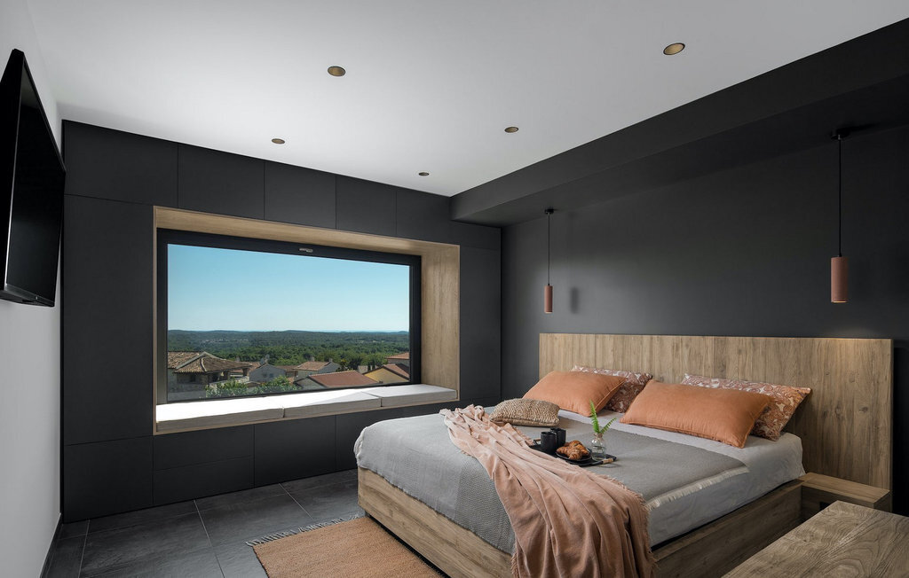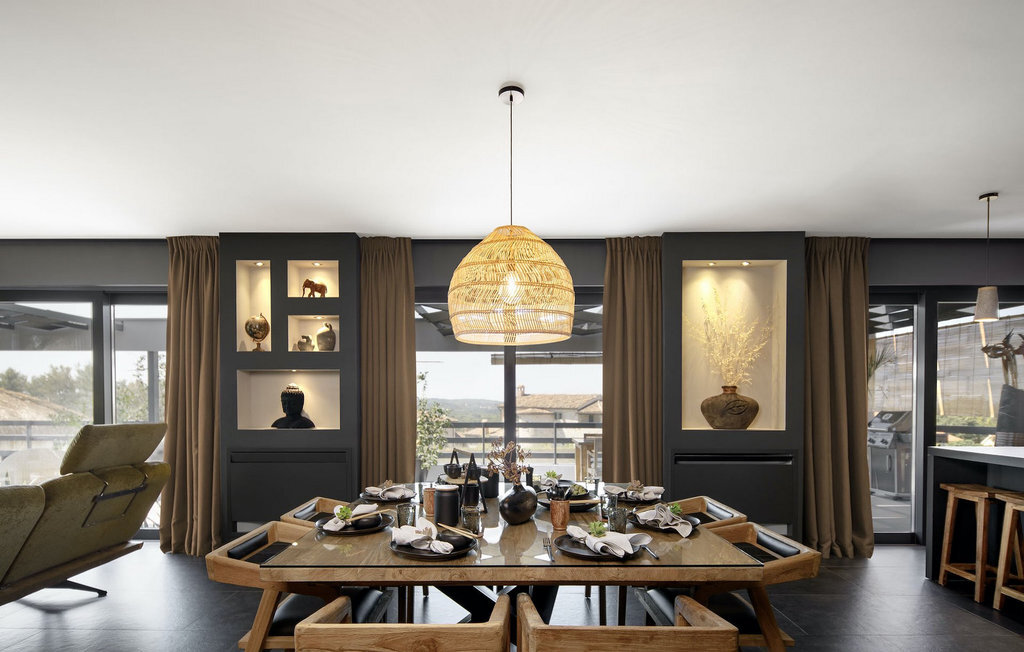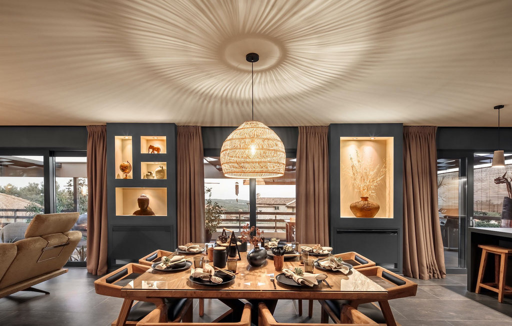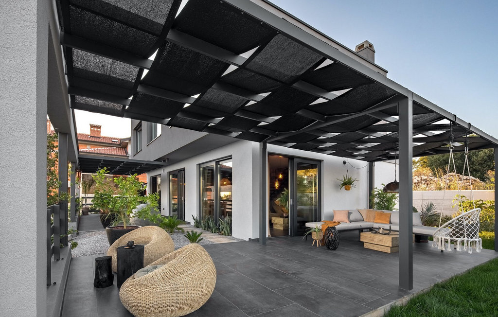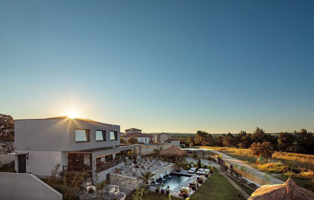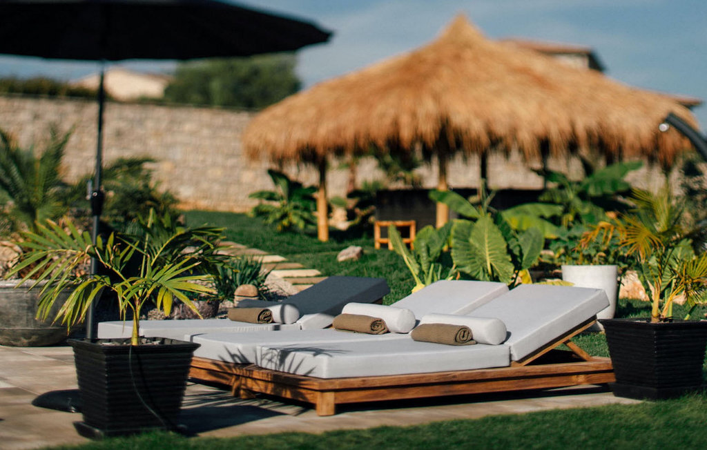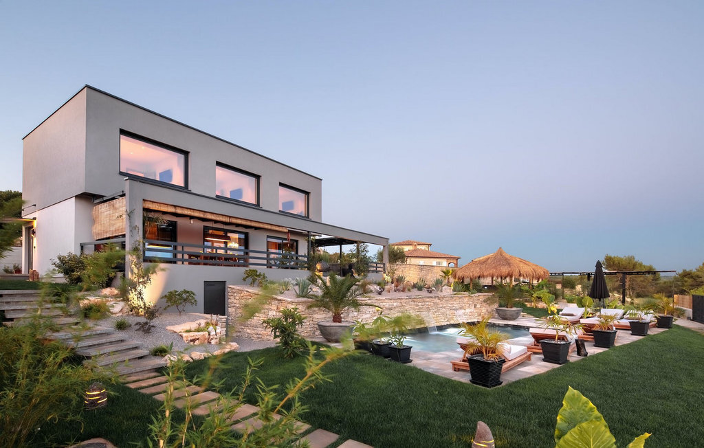 La villa Merapi est un mélange de design moderne, de nature et de spiritualité. La pierre volcanique noire, connue pour ses propriétés curatives et relaxantes, a été utilisée à la fois dans le design moderne de cette villa et dans le design de la piscine. Des meubles en bois faits à la main décorent cette villa avec des éléments naturels. Différentes espèces de plantes entourent la villa et créent une magnifique oasis pour des vacances reposantes. La villa est divisée en rez-de-chaussée et premier étage. Au rez-de-chaussée se trouve un espace ouvert avec un salon, une cuisine et une salle à manger, et au premier étage se trouvent trois chambres et deux salles de bain, dont l'une est une salle de bain en suite. L'intérieur de cette belle villa est décoré avec de nombreux détails naturels. La combinaison du bois et de la pierre donne à cette villa un aspect à la fois naturel et moderne, qui vous procurera un sentiment de tranquillité. Si vous êtes de ceux qui veulent se réveiller chaque matin avec une vue magnifique sur la nature depuis leur lit, la villa Merapi est l'endroit idéal pour vous. Les grandes baies vitrées des chambres à coucher offrent également un espace pour s'asseoir et s'allonger. Profitez ici, avec un bon livre, d'une vue à couper le souffle. La belle cour intérieure de la villa, aménagée avec soin et agrémentée de différentes plantes, décore la villa et crée une petite oasis. Rafraîchissez-vous dans la piscine privée avec cascades de massage. Si vous êtes amateur de jacuzzi, la villa propose un jacuzzi en plein air sous un pavillon en bambou. Pour une ambiance supplémentaire, il y a une grande balançoire pour deux personnes, où vous pouvez savourer une boisson rafraîchissante tout en regardant le ciel étoilé. Plongez dans un lieu exotique au cœur de l'Istrie avec un environnement idyllique et détendez-vous du stress quotidien à la Villa Merapi.La Villa Merapi offre à ses hôtes non seulement une ambiance magnifique avec un intérieur moderne, mais elle se trouve également dans un environnement idyllique avec un jardin aménagé de rêve. La villa est située dans le village de Sv. Lovrec, à 15 km de la mer, à proximité de la ville de Porec et de ses jolies plages de galets. Visitez le célèbre canal de Lim, qui n'est qu'à 30 minutes en voiture, et explorez cette magnifique région naturelle. Des restaurants et des cafés se trouvent à Sveti Lovrec, à 200 mètres de la villa. Si vous avez besoin d'acheter de la nourriture, les magasins locaux ne sont qu'à 500 mètres de la villa, ce qui vous permet de les atteindre facilement à pied. L'emplacement idyllique de la Villa Merapi ravira tous les visiteurs. Réservez cette superbe villa et profitez de l'environnement istrien à couper le souffle.