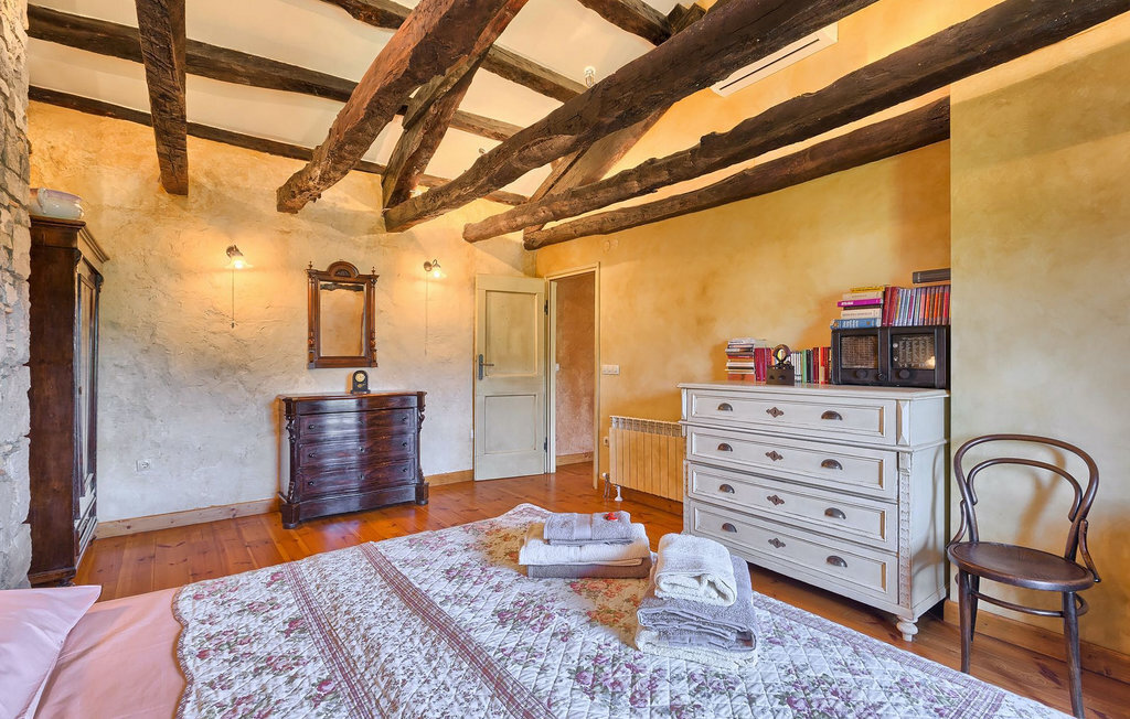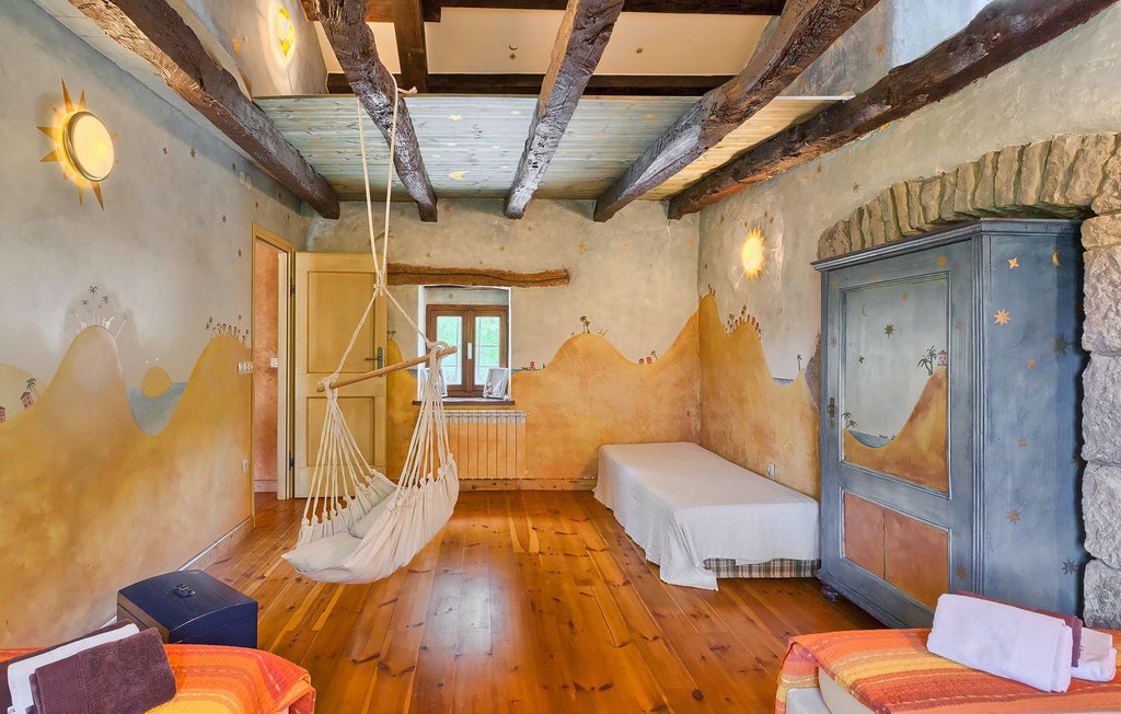 Cette propriété est l'endroit parfait pour ceux qui recherchent une détente absolue, loin de tous les problèmes de la vie moderne. La villa Ariela a été construite en 1886 et restaurée avec amour par ses propriétaires afin d'offrir une sorte de tranquillité difficile à trouver de nos jours. La villa dispose de deux chambres à coucher situées au premier étage, l'une avec un lit double et l'autre avec trois lits simples. En outre, vous trouverez au premier étage un bureau et une bibliothèque qui ont été conçus comme un espace de détente. Mais vous pouvez bien sûr aussi emmener votre livre à l'extérieur, sur la terrasse, pour profiter des chefs-d'œuvre littéraires et de la vue magnifique. Le rez-de-chaussée se compose d'un espace de vie confortable, relié à la cuisine et à la salle à manger, ainsi qu'à une salle de bain et un garde-manger. Et lorsque vous entrez dans l'espace extérieur, vous êtes submergé par l'immense jardin, où vous pouvez explorer une variété de plantes et cueillir des légumes ou des fruits frais du jardin. Et bien sûr, il y a la piscine qui vous offrira le rafraîchissement dont vous avez tant besoin pendant les chaudes journées d'été.La villa Ariela est située près du village de Rim, qui se trouve sur la route qui mène de Rijeka à Trieste. La propriété est unique car les premiers voisins sont à 500 mètres de la villa, ce qui garantit l'intimité. La villa se trouve à proximité immédiate des chaînes de montagnes Ucka et Cicarija à l'est, ainsi que des villes médiévales de Motovun ou Gronjan à l'ouest. À proximité se trouve également Hum, "la plus petite ville du monde", qui a deux rues et une vingtaine d'habitants, mais qui est toujours agréable à visiter it. Le fait d'être si proche de la nature et de la culture signifie que vous pouvez choisir entre de nombreuses activités qui vous permettront d'explorer et de profiter des environs : équitation, randonnée, parapente, etc. C'est à vous de décider :)