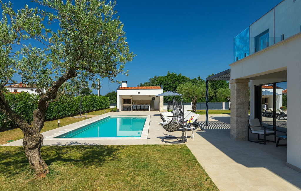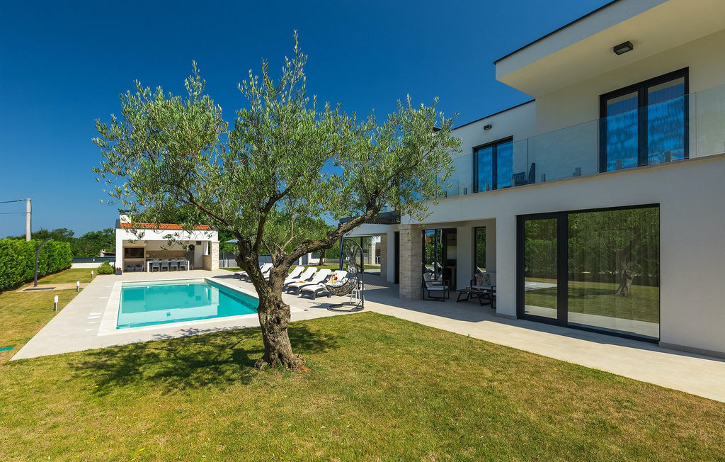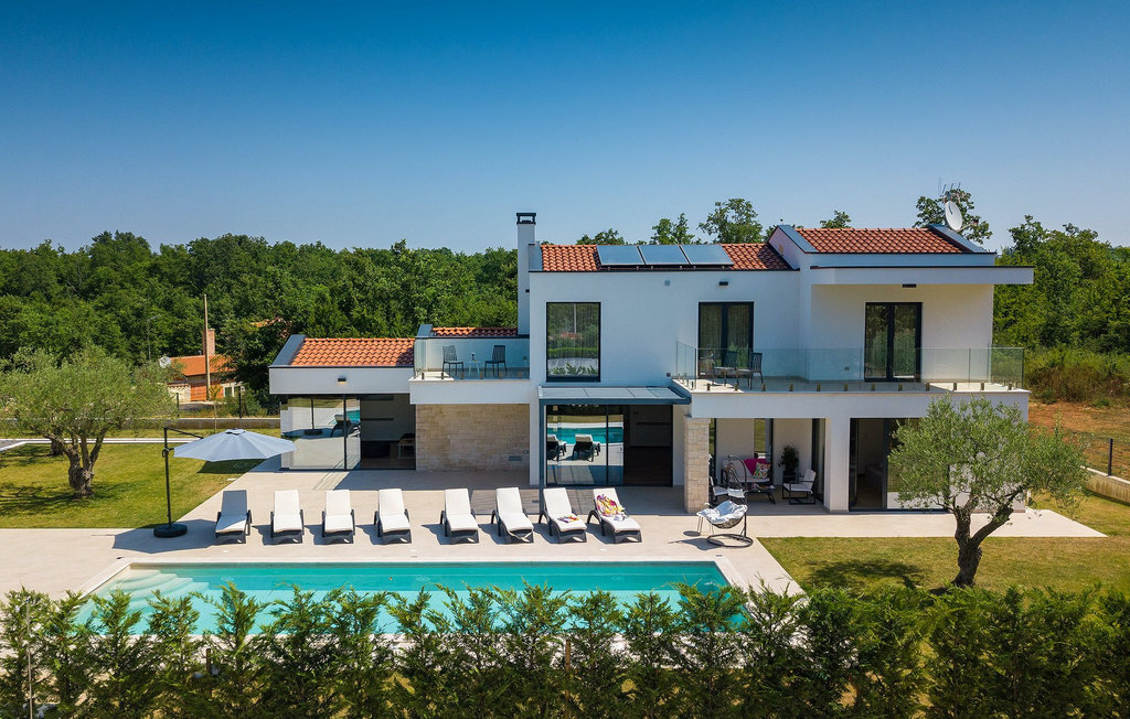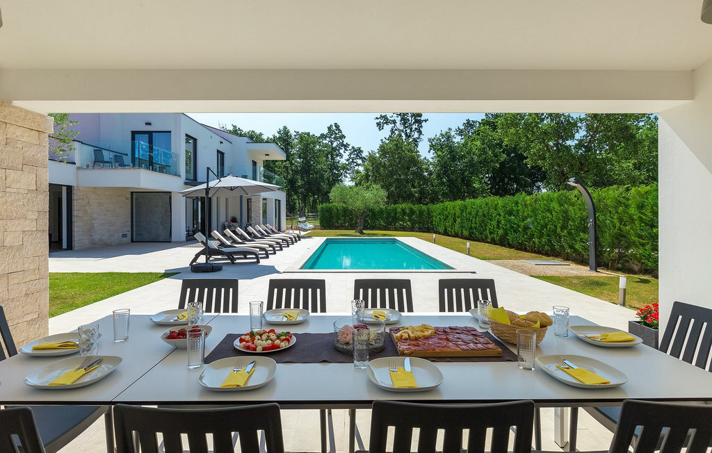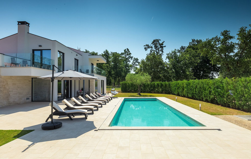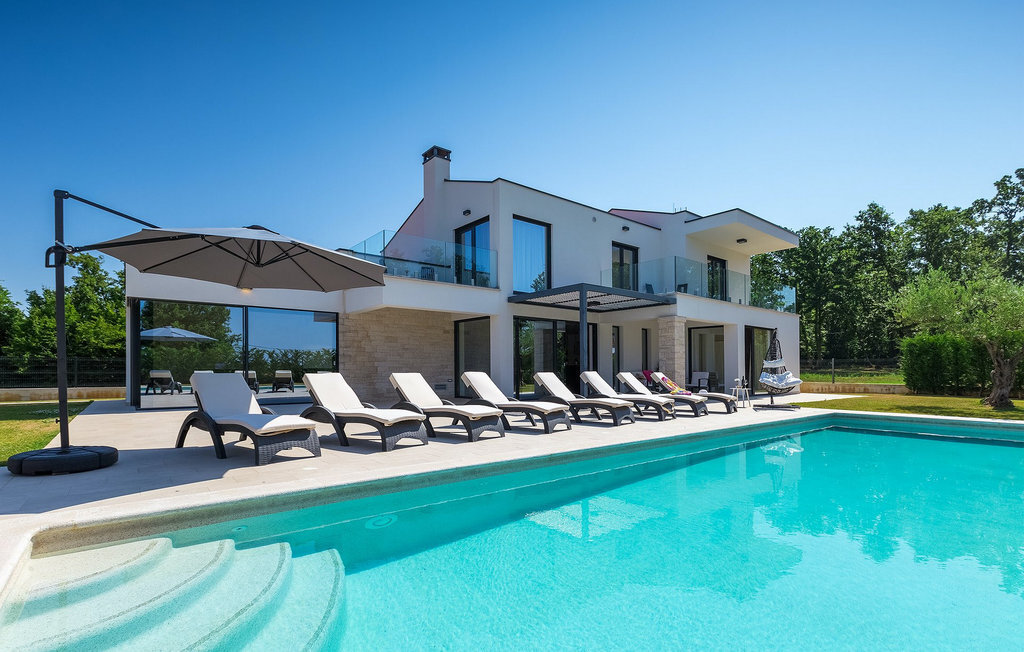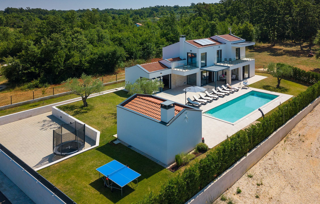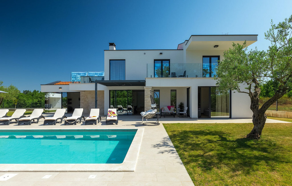 Villa Silvia est une villa élégante et confortable, située à proximité de l'une des destinations touristiques les plus populaires d'Istrie - la belle ville de Porec. La villa dispose de 4 chambres et peut accueillir jusqu'à 10 personnes. Au rez-de-chaussée, vous trouverez une salle de séjour spacieuse et élégante reliée à la salle à manger et à une cuisine entièrement équipée avec un bar pour le petit-déjeuner. À cet étage se trouvent également une chambre à coucher avec salle de bain en-suite, une buanderie et un WC pour les invités. Les trois autres chambres à coucher, lumineuses et confortables, se trouvent à l'étage supérieur. Elles sont toutes équipées d'un lit double et disposent de leur propre salle de bain. Deux des chambres à l'étage partagent une terrasse, tandis qu'une chambre a sa propre terrasse. Depuis les terrasses s'étend une belle vue sur la piscine et les environs. Depuis le salon / salle à manger, vous avez un accès direct à la piscine privée de 45 m2. L'espace extérieur dispose également d'une cuisine d'été avec barbecue et d'une salle à manger où vous pourrez profiter d'une soirée d'été détendue avec des délices locaux. Tout l'espace extérieur et la piscine sont éclairés la nuit.