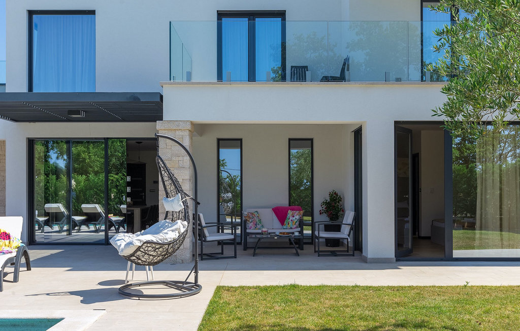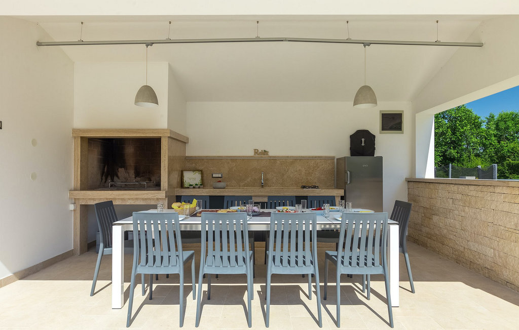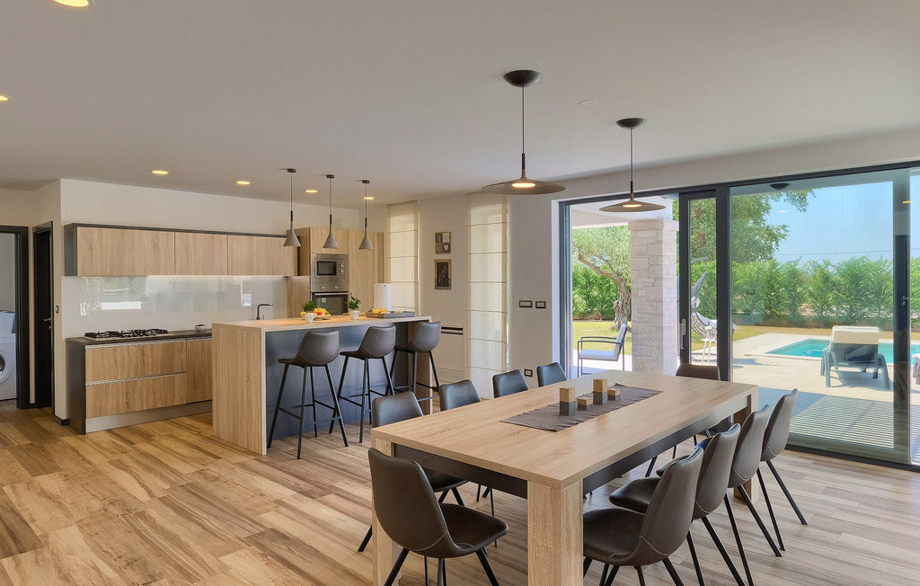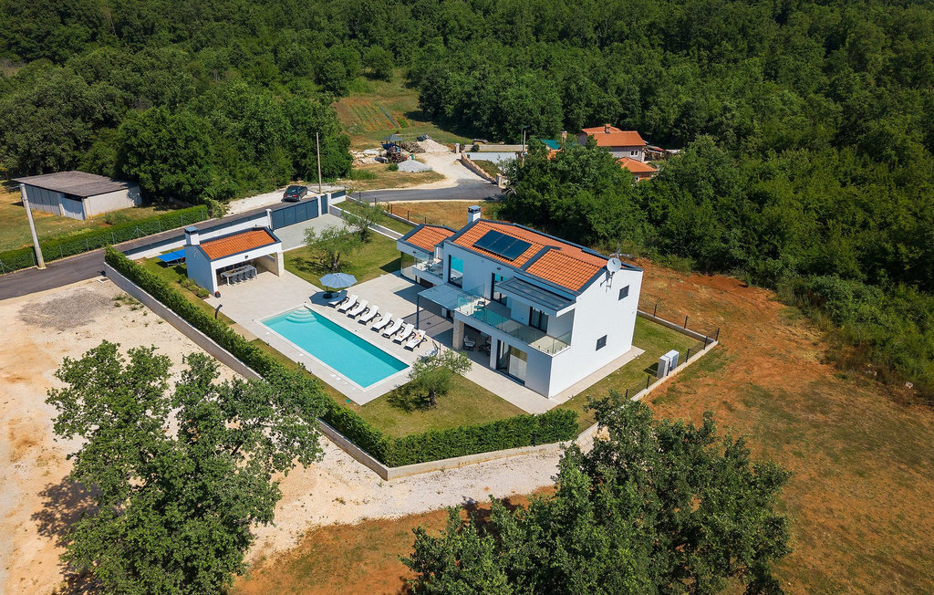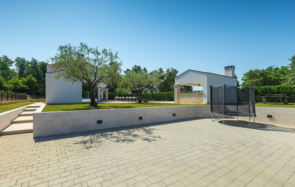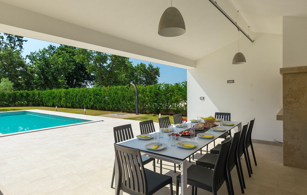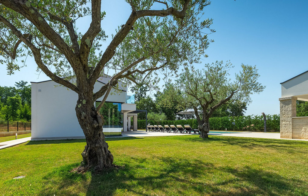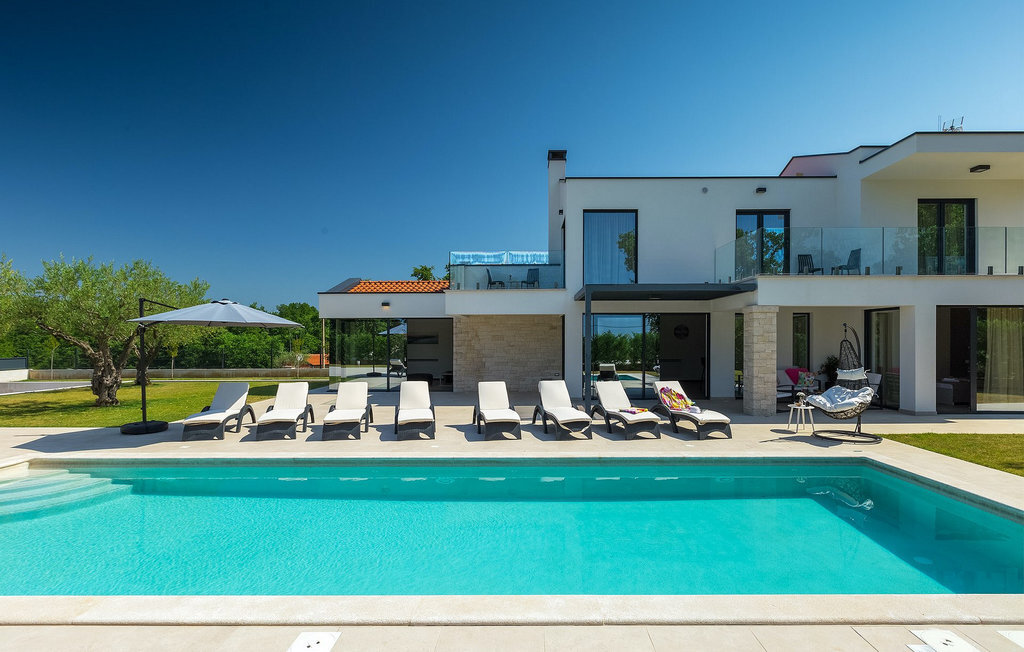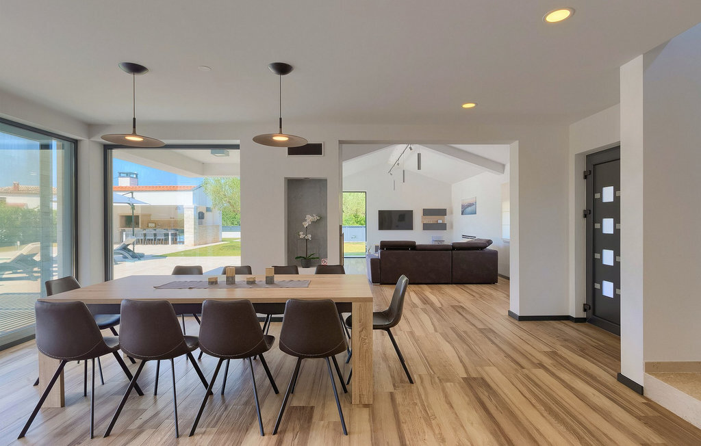 Villa Silvia est une villa élégante et confortable, située à proximité de l'une des destinations touristiques les plus populaires d'Istrie - la belle ville de Porec. La villa dispose de 4 chambres et peut accueillir jusqu'à 10 personnes. Au rez-de-chaussée, vous trouverez une salle de séjour spacieuse et élégante reliée à la salle à manger et à une cuisine entièrement équipée avec un bar pour le petit-déjeuner. À cet étage se trouvent également une chambre à coucher avec salle de bain en-suite, une buanderie et un WC pour les invités. Les trois autres chambres à coucher, lumineuses et confortables, se trouvent à l'étage supérieur. Elles sont toutes équipées d'un lit double et disposent de leur propre salle de bain. Deux des chambres à l'étage partagent une terrasse, tandis qu'une chambre a sa propre terrasse. Depuis les terrasses s'étend une belle vue sur la piscine et les environs. Depuis le salon / salle à manger, vous avez un accès direct à la piscine privée de 45 m2. L'espace extérieur dispose également d'une cuisine d'été avec barbecue et d'une salle à manger où vous pourrez profiter d'une soirée d'été détendue avec des délices locaux. Tout l'espace extérieur et la piscine sont éclairés la nuit.