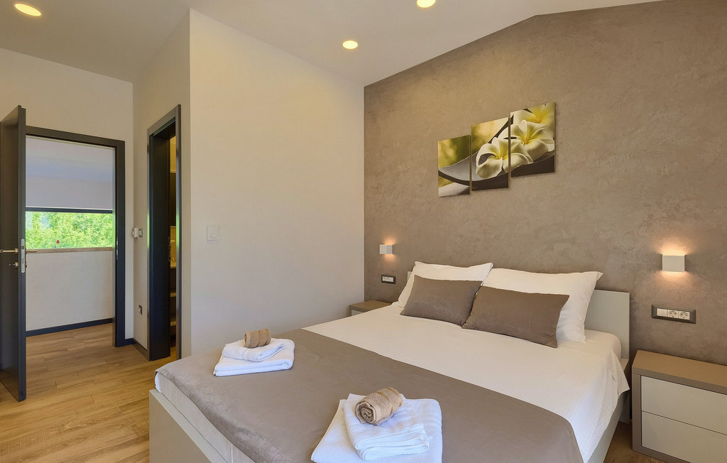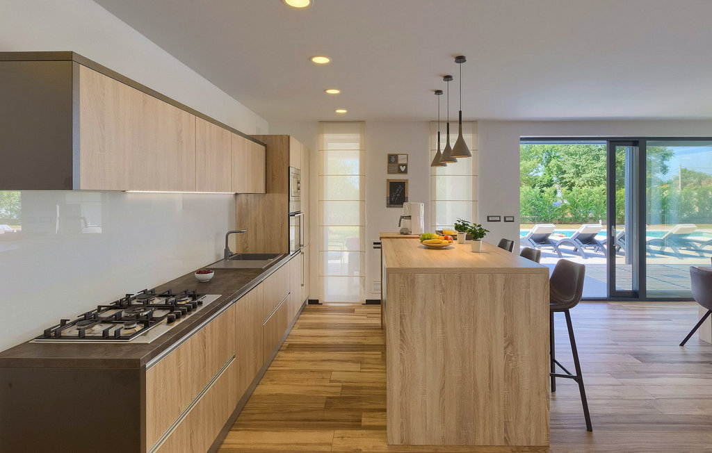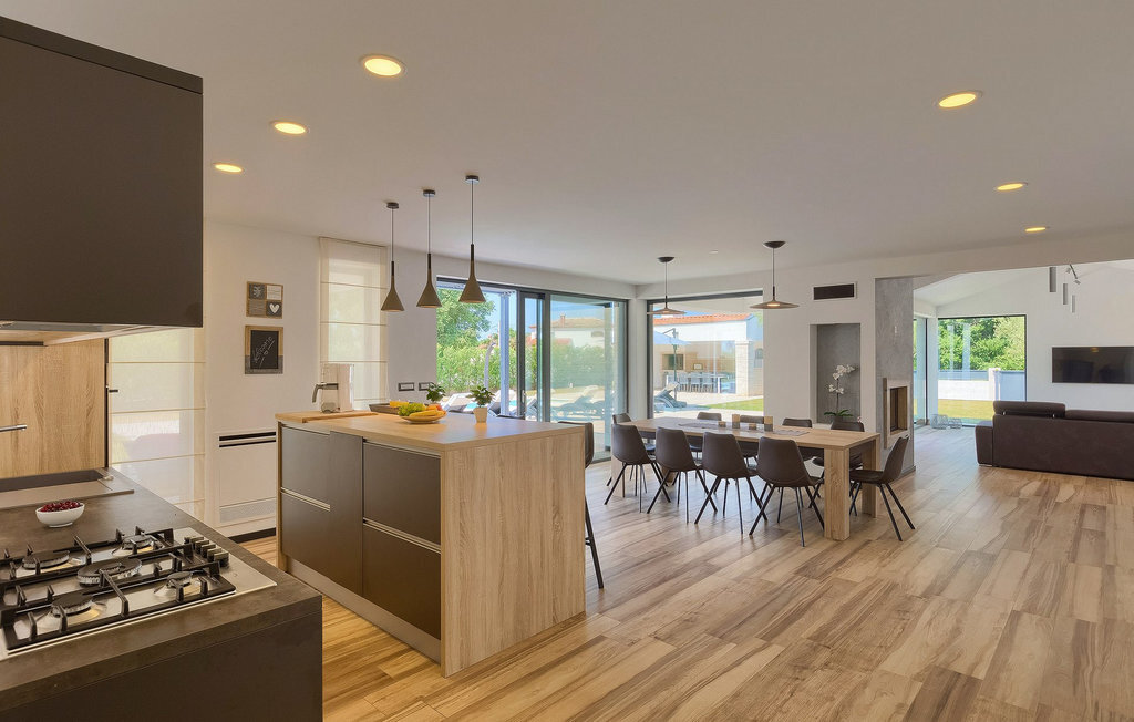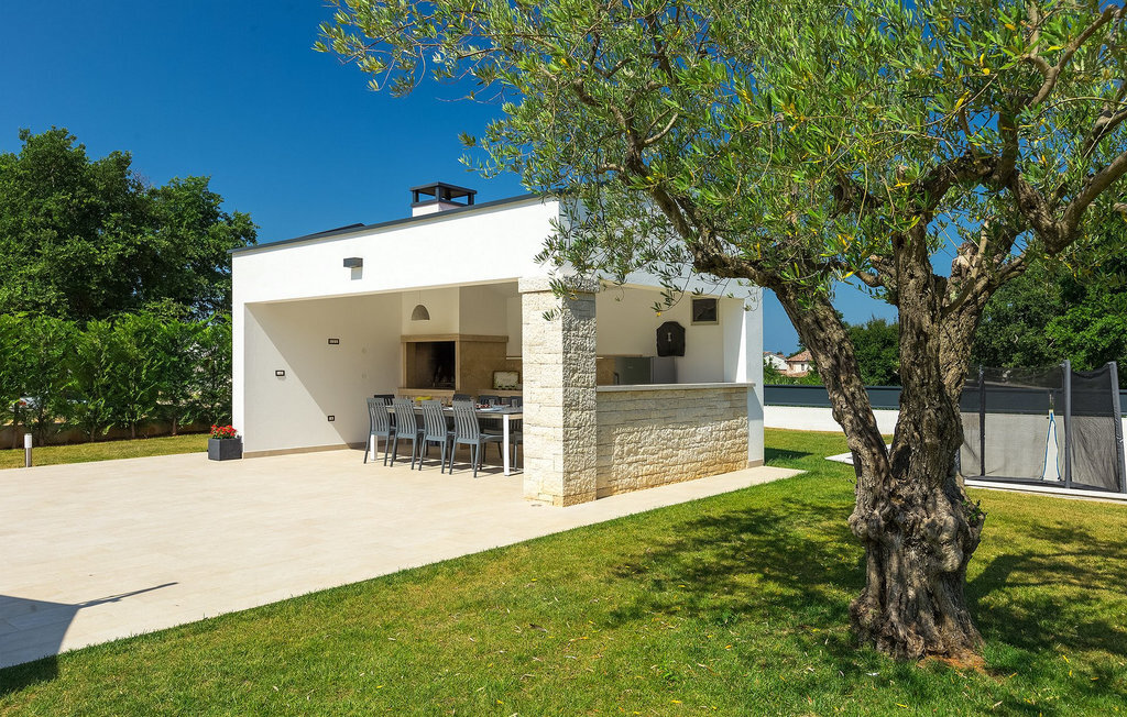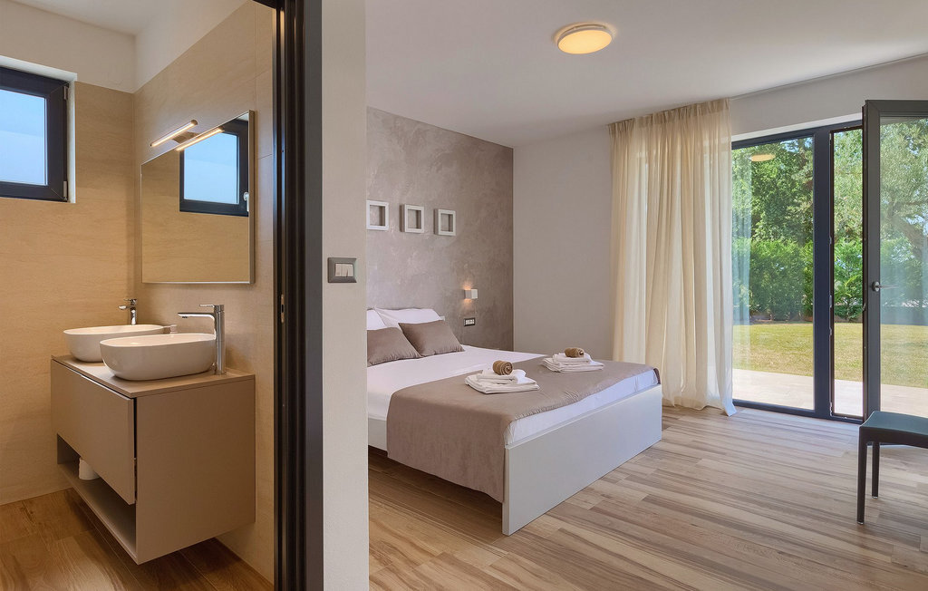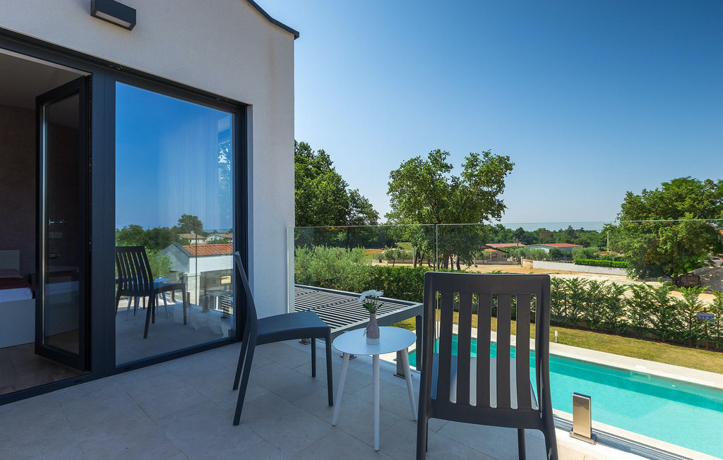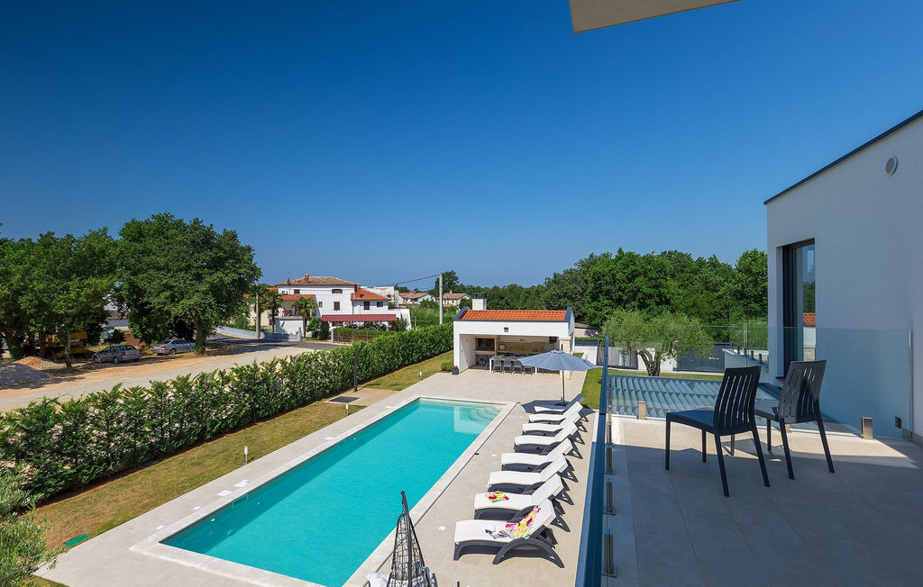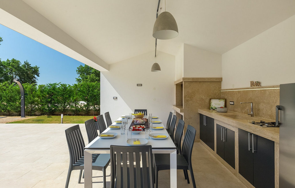 Villa Silvia est une villa élégante et confortable, située à proximité de l'une des destinations touristiques les plus populaires d'Istrie - la belle ville de Porec. La villa dispose de 4 chambres et peut accueillir jusqu'à 10 personnes. Au rez-de-chaussée, vous trouverez une salle de séjour spacieuse et élégante reliée à la salle à manger et à une cuisine entièrement équipée avec un bar pour le petit-déjeuner. À cet étage se trouvent également une chambre à coucher avec salle de bain en-suite, une buanderie et un WC pour les invités. Les trois autres chambres à coucher, lumineuses et confortables, se trouvent à l'étage supérieur. Elles sont toutes équipées d'un lit double et disposent de leur propre salle de bain. Deux des chambres à l'étage partagent une terrasse, tandis qu'une chambre a sa propre terrasse. Depuis les terrasses s'étend une belle vue sur la piscine et les environs. Depuis le salon / salle à manger, vous avez un accès direct à la piscine privée de 45 m2. L'espace extérieur dispose également d'une cuisine d'été avec barbecue et d'une salle à manger où vous pourrez profiter d'une soirée d'été détendue avec des délices locaux. Tout l'espace extérieur et la piscine sont éclairés la nuit.