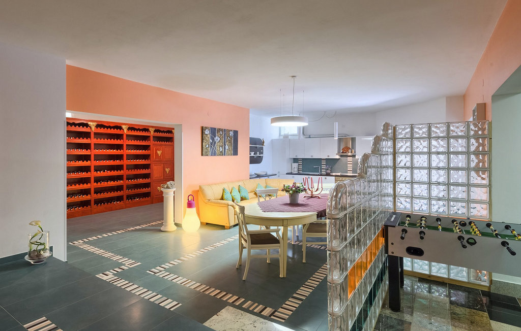 Au sous-sol se trouvent 1 chambre double, une cuisine entièrement équipée, un salon / salle à manger, une salle de bain, une cave à vin et un espace de loisirs où vous pourrez vous détendre en jouant au ping-pong ou au baby-foot.