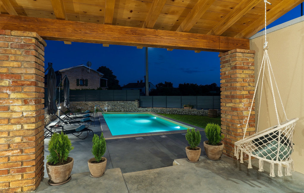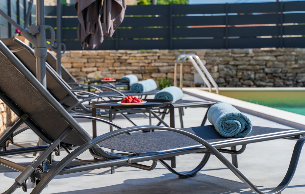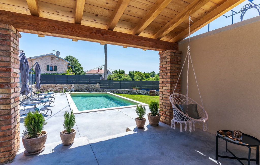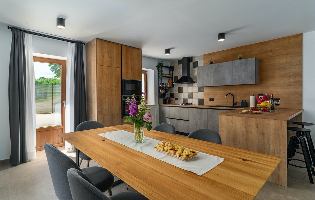 La charmante villa n° 8 se trouve au centre de l'Istrie, près de Pazin. Cette villa de deux étages est idéale pour les familles ou les couples qui souhaitent passer des vacances reposantes au cœur de la nature. La villa dispose en tout de 4 chambres à coucher et peut accueillir jusqu'à 9 personnes. L'élégance sobre s'étend de l'extérieur jusqu'aux chambres à coucher. Devant la villa, vous trouverez une piscine accueillante et ensoleillée dans laquelle vous pourrez vous rafraîchir lors des chaudes journées d'été. À l'extérieur, vous trouverez également un barbecue au charbon de bois sur lequel vous pourrez préparer de délicieux repas et les déguster en buvant un verre de la meilleure malvazija d'Istrie. Le rez-de-chaussée se compose d'un espace de vie moderne avec un salon confortable avec cheminée où vous pourrez vous détendre en lisant votre livre préféré, une cuisine entièrement équipée et un coin repas. Il y a également une chambre avec un lit double et une salle de bain avec une douche à l'italienne. À l'étage supérieur, vous trouverez 3 autres chambres et 2 salles de bains. Cette villa offrira à votre famille des moments spéciaux et de beaux souvenirs, alors profitez de l'occasion pour passer vos vacances dans la Villa No.8.La Villa No.8 se trouve dans le petit village de Bazgalji, non loin de Pazin, en Istrie centrale. Toutes les commodités dont vous avez besoin pour des vacances sans soucis se trouvent à proximité immédiate de la villa. La plage la plus proche est à seulement 32 km de la villa, dans la ville romantique de Rovinj, sur la côte ouest de la péninsule d'Istrie. Rovinj est particulièrement célèbre pour ses plages, ses rues pavées étroites et ses maisons colorées qui ne manqueront pas de vous séduire. Après avoir nagé dans les eaux cristallines de l'Adriatique, vous pourrez vous détendre avec une boisson rafraîchissante dans l'un des nombreux bars de la plage ou savourer de délicieux plats traditionnels que vous pourrez déguster dans des restaurants et tavernes de première classe. Si vous souhaitez visiter d'autres villes, ne manquez pas Pula, le centre culturel de l'Istrie, célèbre pour son amphithéâtre, et Porec, la ville qui abrite la basilique d'Euphrasius, classée au patrimoine mondial de l'UNESCO. L'Istrie centrale est idéale pour les amateurs de vacances actives, de gastronomie et de culture. Outre les nombreuses pistes cyclables et sentiers de randonnée, vous pourrez visiter de nombreuses villes médiévales à l'intérieur des terres, comme Motovun et Groznjan, ou profiter de la chasse aux truffes d'Istrie.