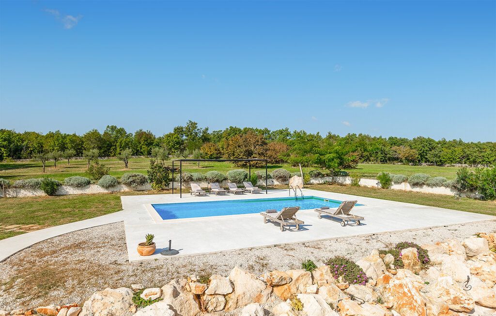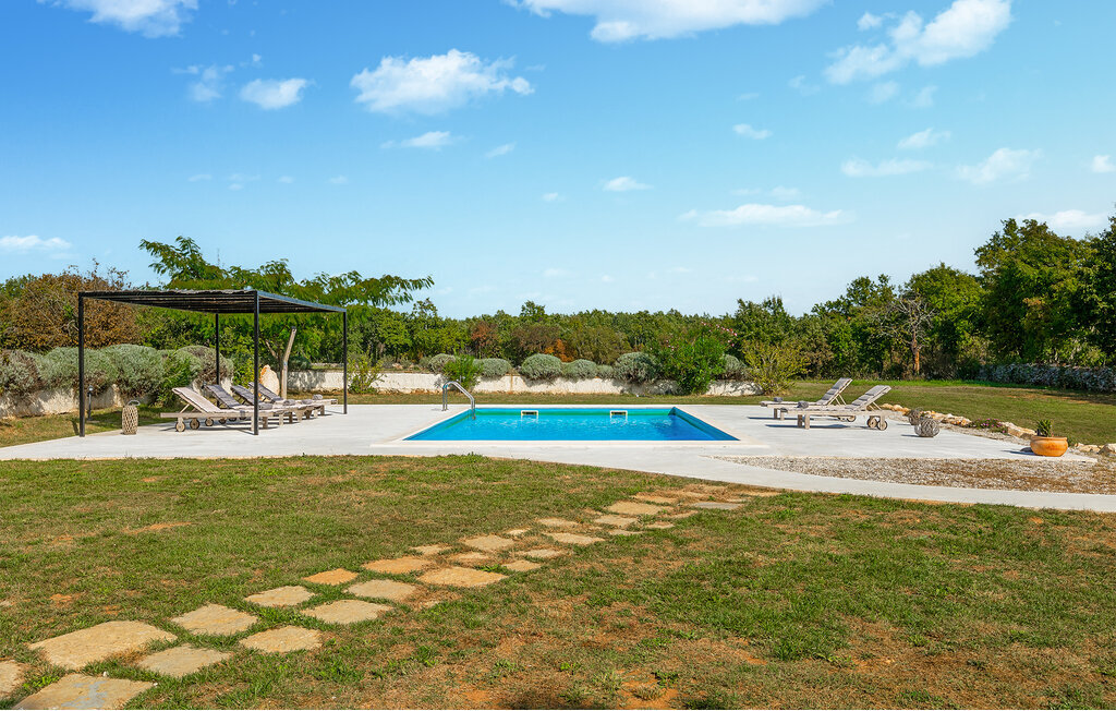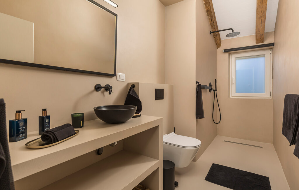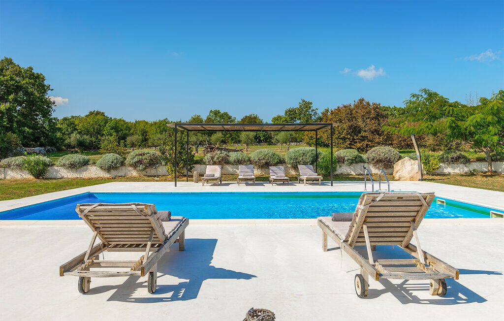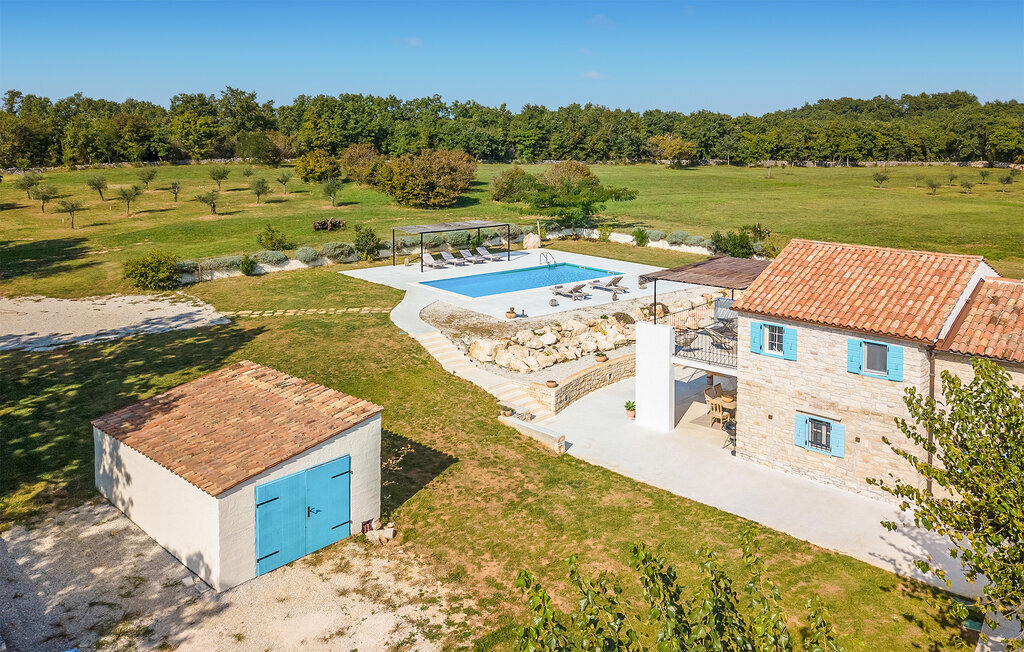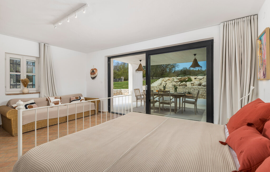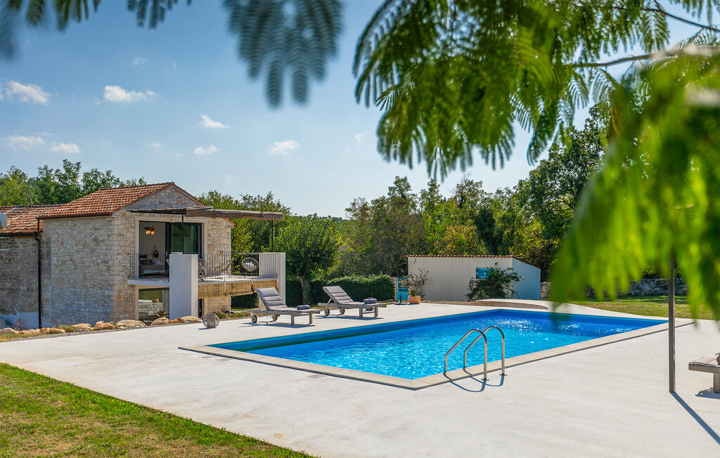 La terrasse couverte moderne du premier étage offre une vue magnifique sur le champ et ses magnifiques oliviers. En outre, la chambre à coucher du rez-de-chaussée et la chambre à coucher supérieure avec la terrasse ont de très grandes parois vitrées qui renforcent le sentiment de vivre à l'extérieur et la lumière naturelle. Le soir, il est agréable de profiter de l'environnement magnifiquement éclairé sous un ciel étoilé magique. Avec la Villa Natura, vous êtes en pleine nature, mais pas trop loin de la grande ville la plus proche - la ville côtière la plus proche est Porec - à seulement 20 minutes en voiture.