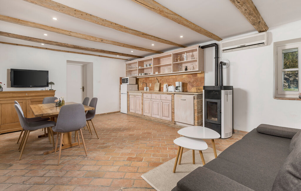 Cette ancienne maison en pierre traditionnelle magnifiquement restaurée, combinée avec des améliorations de style moderne, se trouve sur un grand terrain avec des prairies et des forêts tout autour. L'endroit est absolument paisible et relaxant, si bien que vous n'entendez que le chant des oiseaux. La seule chose qui rompt l'atmosphère verte et relaxante est la belle et grande piscine bleue de 50 m². Des chaises longues et des parasols sont à votre disposition pour votre petit moment de détente au bord de la piscine, pendant que vos enfants jouent et s'amusent. Le vaste espace autour de la piscine vous permet de vous sentir à l'aise et de profiter de la vie en plein air. La terrasse couverte dispose d'une table à manger, ce qui vous permet de savourer de délicieux repas en plein air.