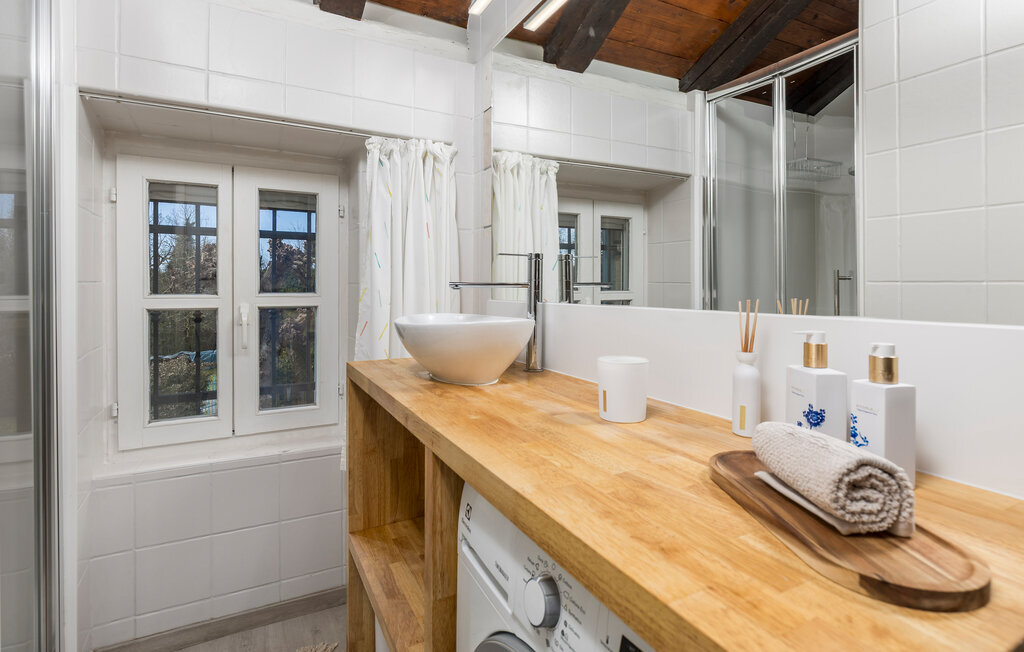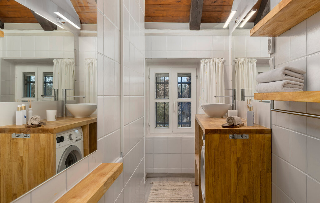 Des escaliers en bois mènent à l'étage supérieur, qui compte deux autres chambres doubles. L'une des chambres a sa propre salle de bain pour votre confort. À cet étage, il y a une autre belle salle de bains avec douche ainsi que des toilettes séparées.