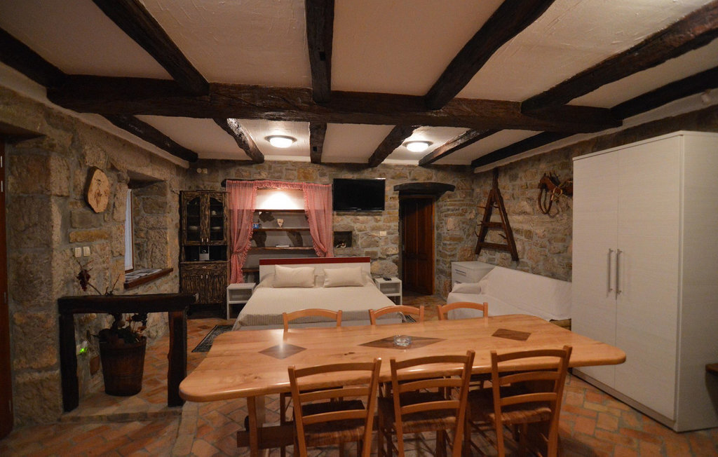 Cette belle villa de 2 chambres est le logement familial idéal. La villa offre avant tout calme et détente, mais se trouve également dans une région idéale pour les randonnées, les différentes activités sportives et la découverte de petites villes et villages authentiques de l'Istrie. La Villa Anelia dispose d'un jardin bien entretenu de 1500 m² avec sa propre piscine privée, un petit paradis de jeux pour enfants et une terrasse avec un coin repas et un barbecue au charbon de bois. La piscine privée permet de se rafraîchir pendant les chaudes journées d'été après un jogging ou une balade à vélo dans le village ou simplement après avoir paressé dans le jardin entouré de nature. La villa dispose de deux cuisines au total et est divisée en deux parties - le rez-de-chaussée et l'étage. Le rez-de-chaussée est la partie de la maison avec une touche rustique. C'était autrefois une taverne traditionnelle et c'est maintenant une pièce spacieuse avec une cuisine équipée et une cheminée, un coin repas et un lit double. Un canapé-lit pour une personne est disponible dans cette pièce ainsi que dans le salon à l'étage. Il y a également une cuisine entièrement équipée, une chambre avec un lit double et une salle de bain à l'étage.