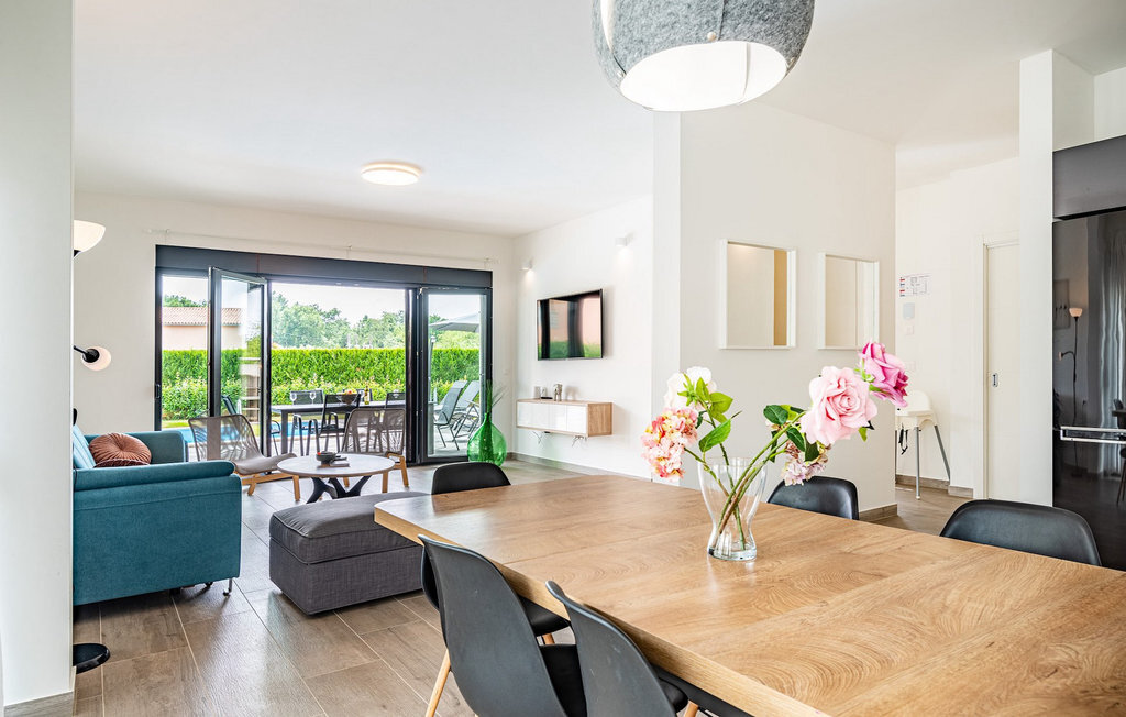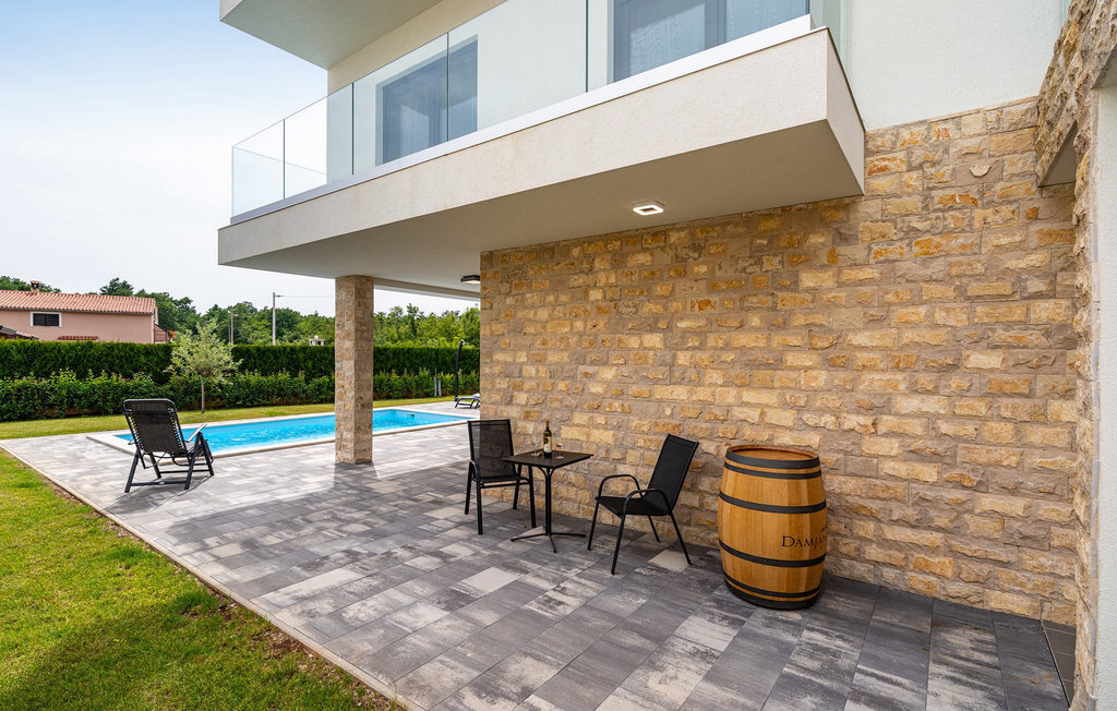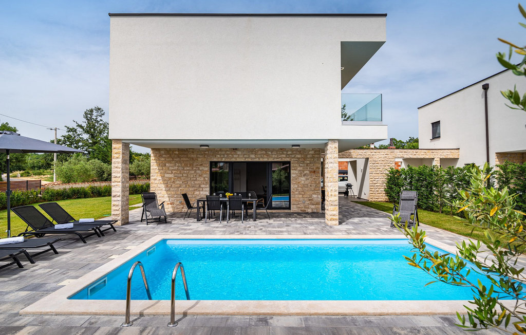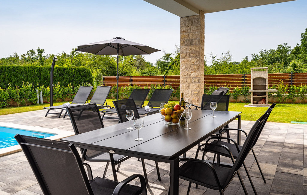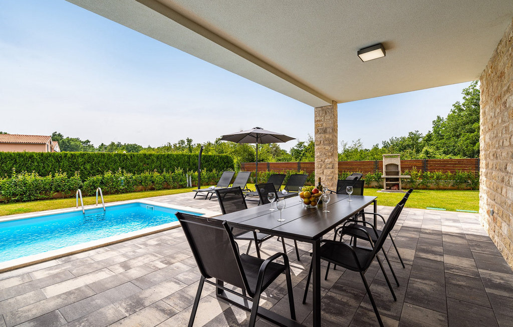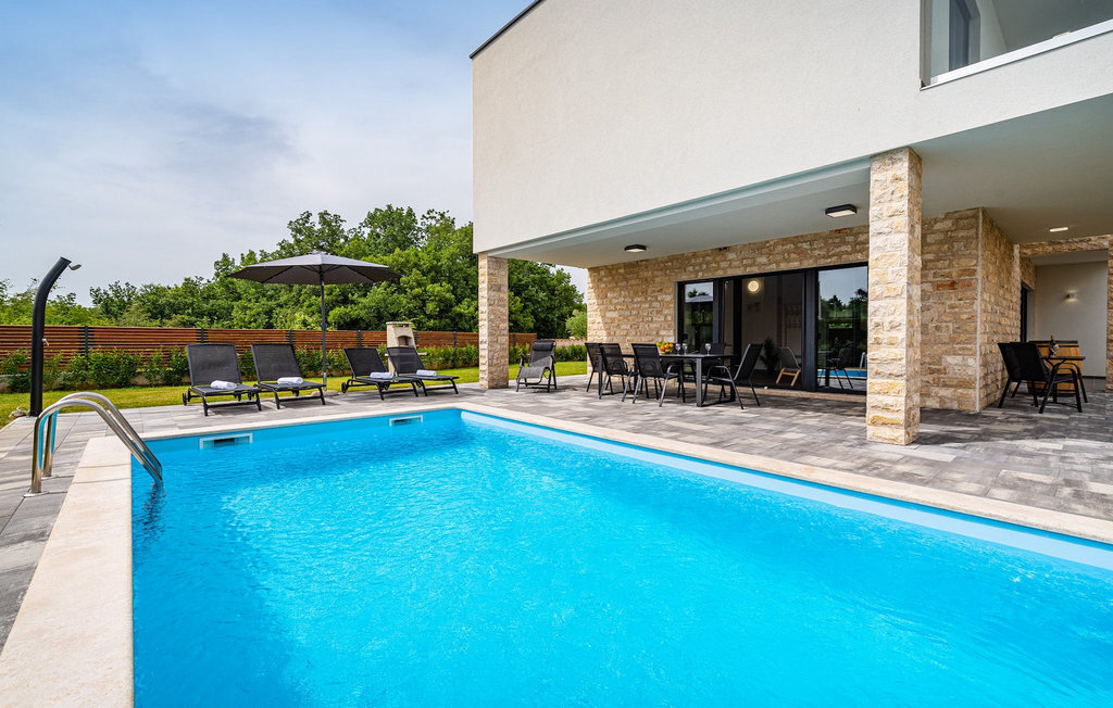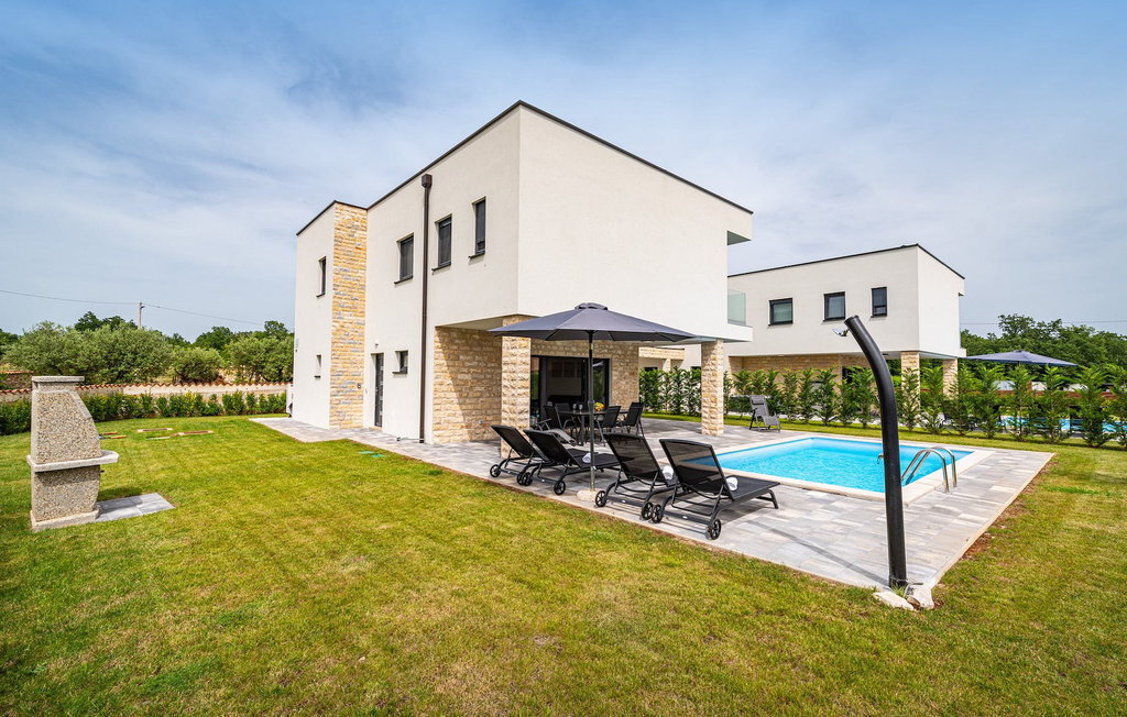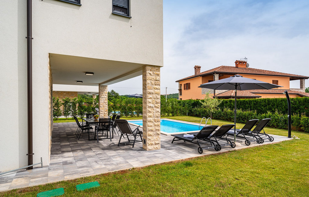 Ceux qui aspirent à des vacances à la fois détendues et passionnantes sont entre de bonnes mains à la Villa Monspinosso Aria 2. L'emplacement est parfait pour découvrir les trésors cachés de l'Istrie. La villa est située dans un village paisible de Dracevac, dans le centre de l'Istrie, à proximité de la ville de Porec. La villa entièrement climatisée, située sur un terrain de 840 m2, peut accueillir jusqu'à huit personnes et est donc idéale pour les familles ou les groupes d'amis. La cuisine et la salle à manger pour six personnes se trouvent au rez-de-chaussée inondé de lumière, tout comme le salon meublé avec goût et l'une des quatre salles de bains. Depuis le salon, vous accédez à la terrasse qui dispose d'un barbecue et d'une table pour huit personnes, idéale pour un barbecue en famille ou entre amis. À l'étage supérieur se trouvent trois chambres à coucher confortables avec télévision et trois salles de bains. Depuis les chambres à coucher, vous accédez au balcon commun. Dans le jardin bien entretenu, une piscine privée de 27m2, des chaises longues et un parasol vous invitent à vous détendre. Quatre places de parking se trouvent sur le terrain. Échappez à votre quotidien et profitez de vos vacances dans cette belle villa.La villa Monspinosso Aria 2 se trouve dans le petit village de Dracevac, à 7 km de la ville de Porec, le plus grand centre touristique d'Istrie. Les habitants travaillent principalement dans l'agriculture et l'élevage ou louent des maisons de vacances. Le village a été créé au Moyen-Âge et était entouré de murs pour se défendre. La ville de Porec, toute proche, offre de nombreuses possibilités de sport et de loisirs pour tous les âges. Une visite à la célèbre basilique d'Euphrasius, inscrite au patrimoine mondial de l'UNESCO en 1997, s'impose ! Si vous voyagez avec vos enfants, nous vous conseillons de faire une excursion dans un parc aquatique. Dans toute l'Istrie, vous trouverez des pistes cyclables bien aménagées. De magnifiques plages, des lieux historiques et des sites intéressants ne sont qu'à une courte distance en voiture. L'aéroport de Pula et le parc national de Brijuni sont à environ 45 minutes. Venise est facilement accessible depuis cette région. Découvrez les trésors de l'Istrie et passez des vacances reposantes.