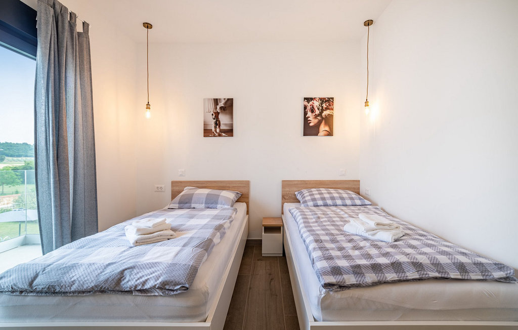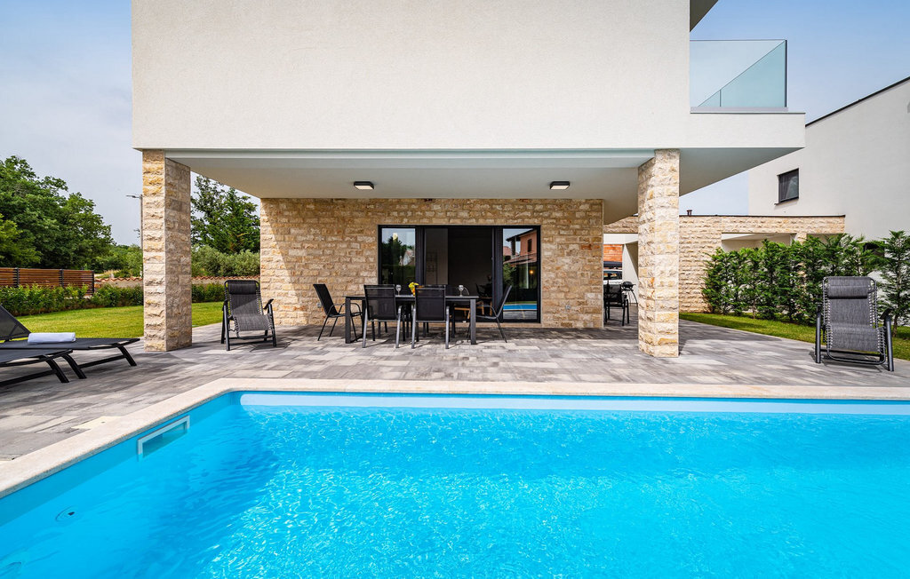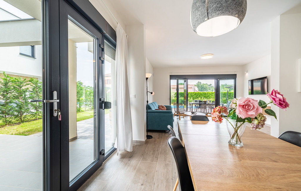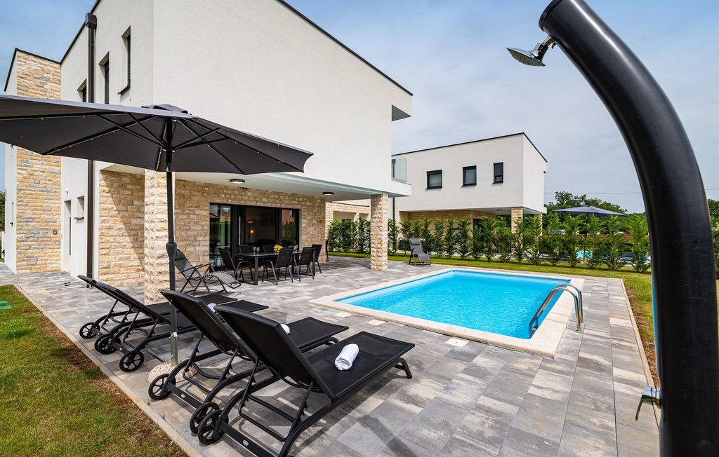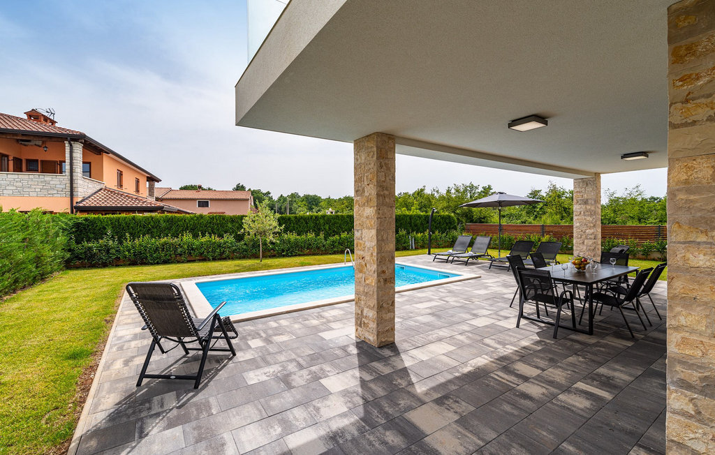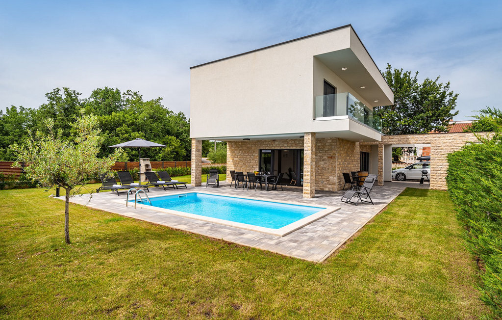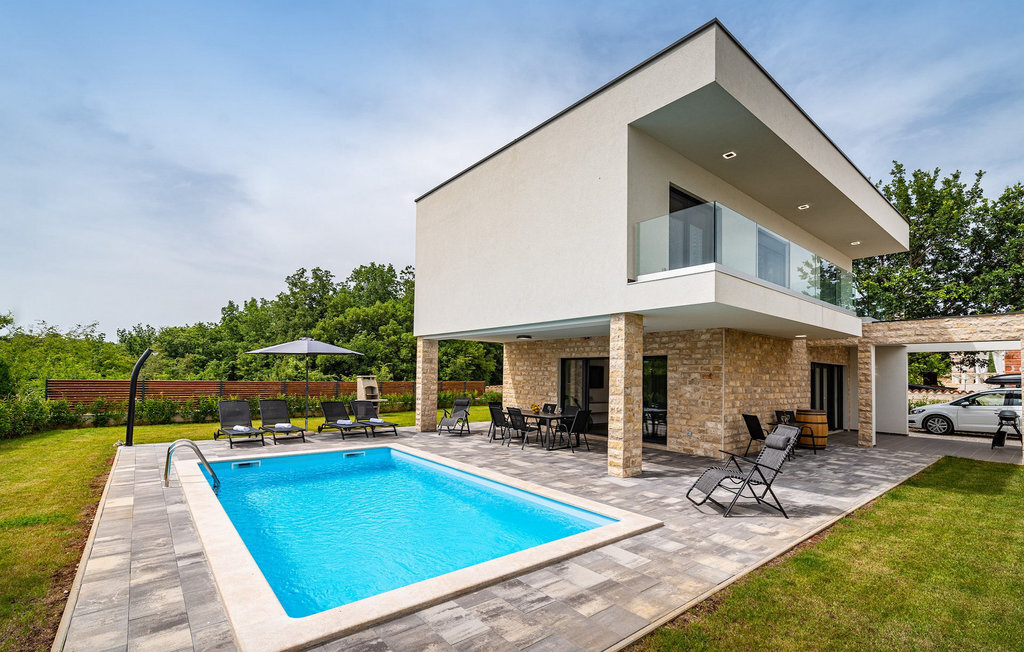 Ceux qui aspirent à des vacances à la fois détendues et passionnantes sont entre de bonnes mains à la Villa Monspinosso Aria 2. L'emplacement est parfait pour découvrir les trésors cachés de l'Istrie. La villa est située dans un village paisible de Dracevac, dans le centre de l'Istrie, à proximité de la ville de Porec. La villa entièrement climatisée, située sur un terrain de 840 m2, peut accueillir jusqu'à huit personnes et est donc idéale pour les familles ou les groupes d'amis. La cuisine et la salle à manger pour six personnes se trouvent au rez-de-chaussée inondé de lumière, tout comme le salon meublé avec goût et l'une des quatre salles de bains. Depuis le salon, vous accédez à la terrasse qui dispose d'un barbecue et d'une table pour huit personnes, idéale pour un barbecue en famille ou entre amis. À l'étage supérieur se trouvent trois chambres à coucher confortables avec télévision et trois salles de bains. Depuis les chambres à coucher, vous accédez au balcon commun. Dans le jardin bien entretenu, une piscine privée de 27m2, des chaises longues et un parasol vous invitent à vous détendre. Quatre places de parking se trouvent sur le terrain. Échappez à votre quotidien et profitez de vos vacances dans cette belle villa.La villa Monspinosso Aria 2 se trouve dans le petit village de Dracevac, à 7 km de la ville de Porec, le plus grand centre touristique d'Istrie. Les habitants travaillent principalement dans l'agriculture et l'élevage ou louent des maisons de vacances. Le village a été créé au Moyen-Âge et était entouré de murs pour se défendre. La ville de Porec, toute proche, offre de nombreuses possibilités de sport et de loisirs pour tous les âges. Une visite à la célèbre basilique d'Euphrasius, inscrite au patrimoine mondial de l'UNESCO en 1997, s'impose ! Si vous voyagez avec vos enfants, nous vous conseillons de faire une excursion dans un parc aquatique. Dans toute l'Istrie, vous trouverez des pistes cyclables bien aménagées. De magnifiques plages, des lieux historiques et des sites intéressants ne sont qu'à une courte distance en voiture. L'aéroport de Pula et le parc national de Brijuni sont à environ 45 minutes. Venise est facilement accessible depuis cette région. Découvrez les trésors de l'Istrie et passez des vacances reposantes.