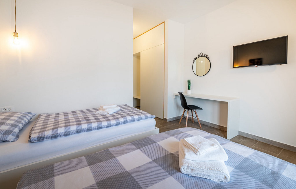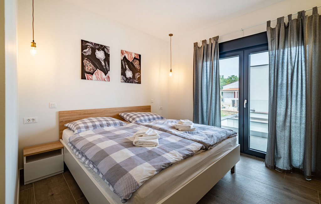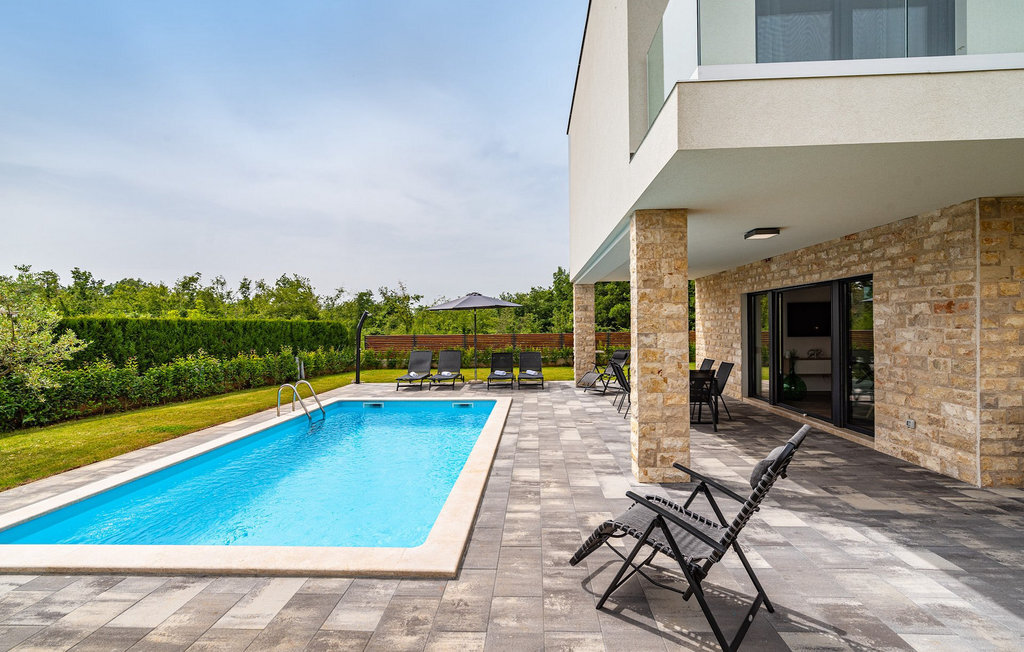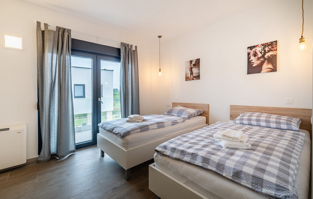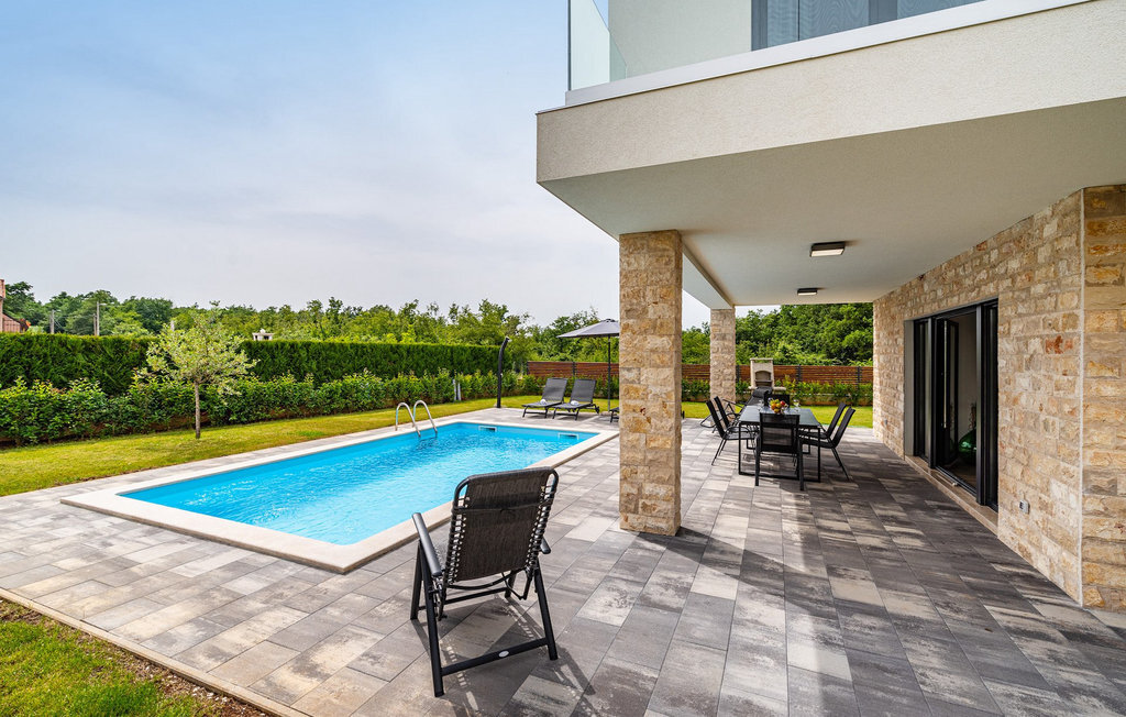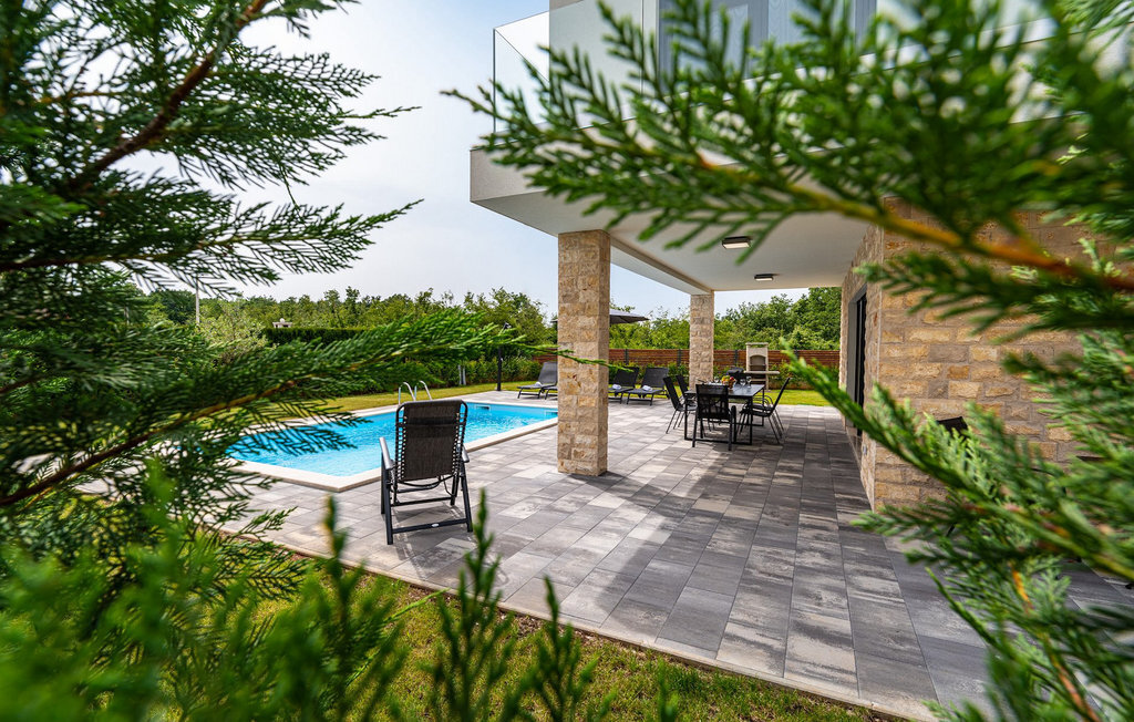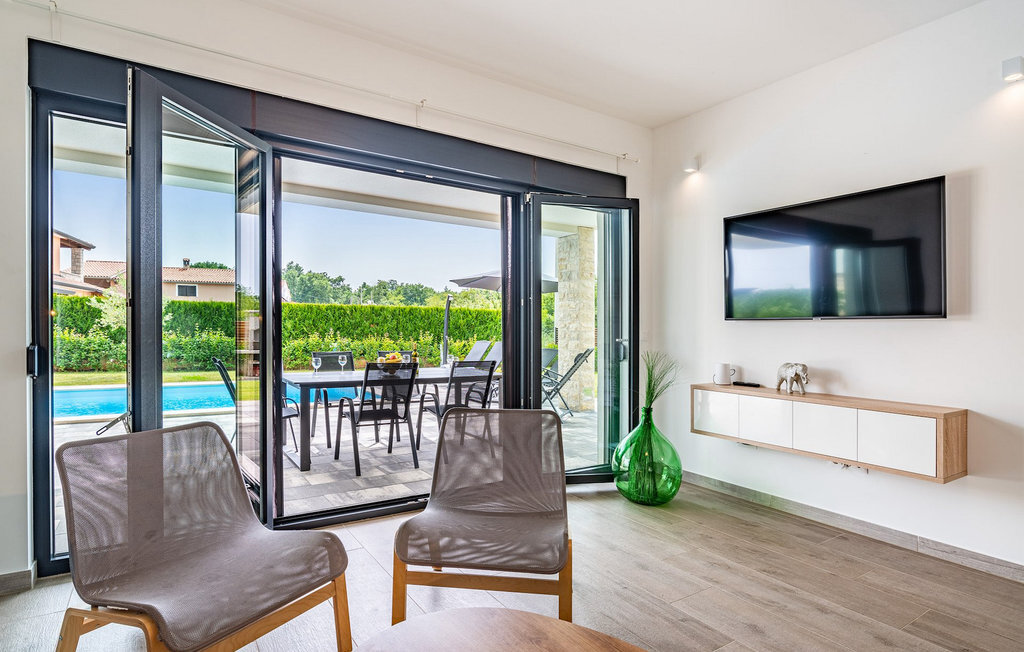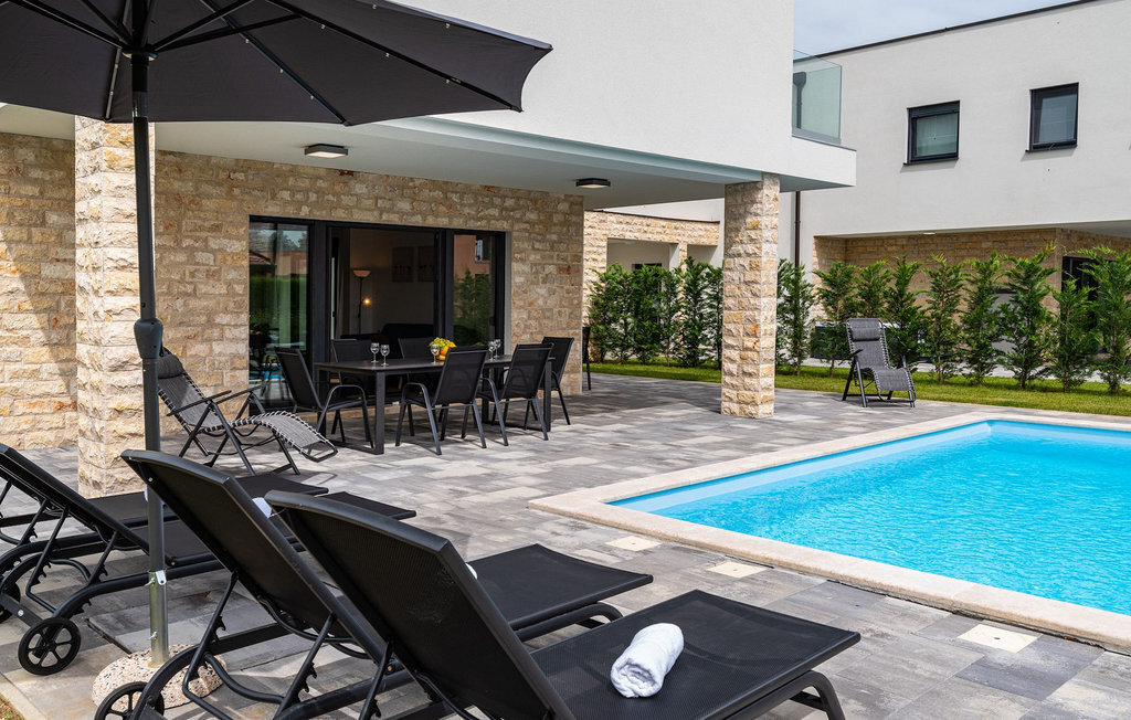 Ceux qui aspirent à des vacances à la fois détendues et passionnantes sont entre de bonnes mains à la Villa Monspinosso Aria 2. L'emplacement est parfait pour découvrir les trésors cachés de l'Istrie. La villa est située dans un village paisible de Dracevac, dans le centre de l'Istrie, à proximité de la ville de Porec. La villa entièrement climatisée, située sur un terrain de 840 m2, peut accueillir jusqu'à huit personnes et est donc idéale pour les familles ou les groupes d'amis. La cuisine et la salle à manger pour six personnes se trouvent au rez-de-chaussée inondé de lumière, tout comme le salon meublé avec goût et l'une des quatre salles de bains. Depuis le salon, vous accédez à la terrasse qui dispose d'un barbecue et d'une table pour huit personnes, idéale pour un barbecue en famille ou entre amis. À l'étage supérieur se trouvent trois chambres à coucher confortables avec télévision et trois salles de bains. Depuis les chambres à coucher, vous accédez au balcon commun. Dans le jardin bien entretenu, une piscine privée de 27m2, des chaises longues et un parasol vous invitent à vous détendre. Quatre places de parking se trouvent sur le terrain. Échappez à votre quotidien et profitez de vos vacances dans cette belle villa.La villa Monspinosso Aria 2 se trouve dans le petit village de Dracevac, à 7 km de la ville de Porec, le plus grand centre touristique d'Istrie. Les habitants travaillent principalement dans l'agriculture et l'élevage ou louent des maisons de vacances. Le village a été créé au Moyen-Âge et était entouré de murs pour se défendre. La ville de Porec, toute proche, offre de nombreuses possibilités de sport et de loisirs pour tous les âges. Une visite à la célèbre basilique d'Euphrasius, inscrite au patrimoine mondial de l'UNESCO en 1997, s'impose ! Si vous voyagez avec vos enfants, nous vous conseillons de faire une excursion dans un parc aquatique. Dans toute l'Istrie, vous trouverez des pistes cyclables bien aménagées. De magnifiques plages, des lieux historiques et des sites intéressants ne sont qu'à une courte distance en voiture. L'aéroport de Pula et le parc national de Brijuni sont à environ 45 minutes. Venise est facilement accessible depuis cette région. Découvrez les trésors de l'Istrie et passez des vacances reposantes.