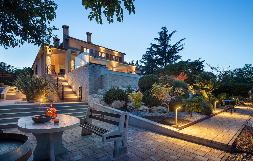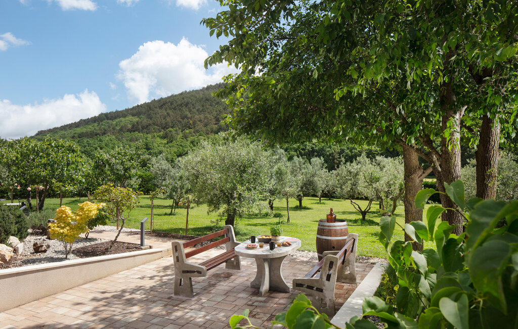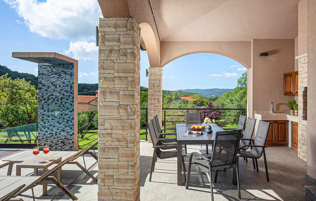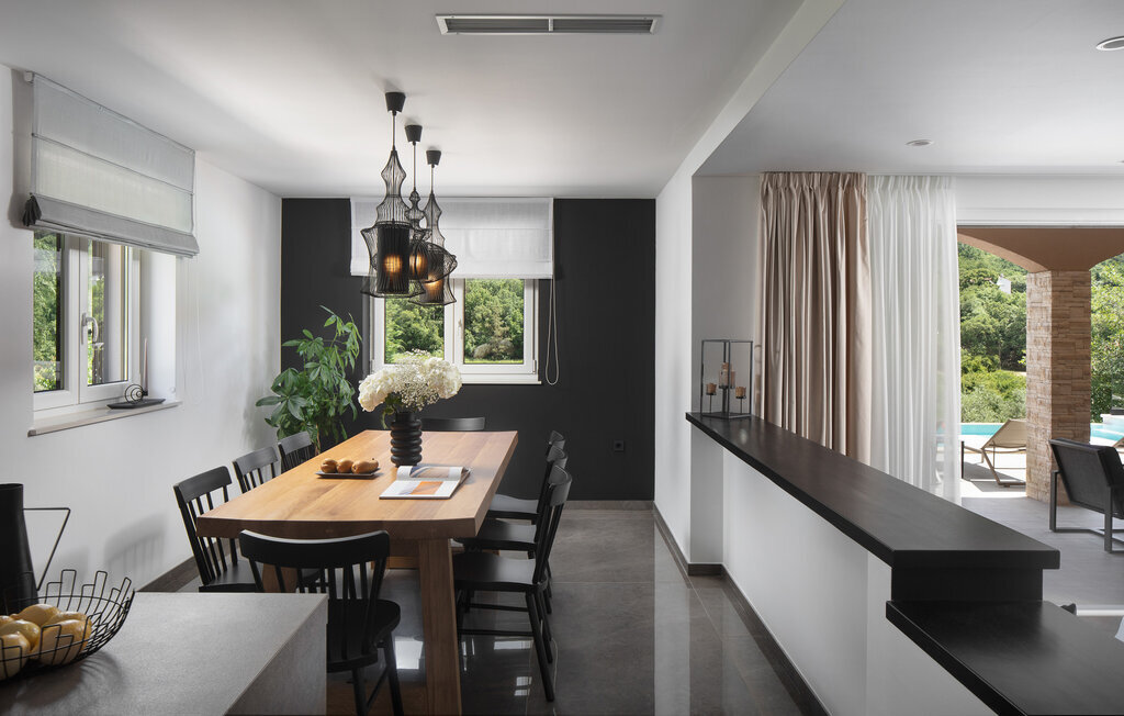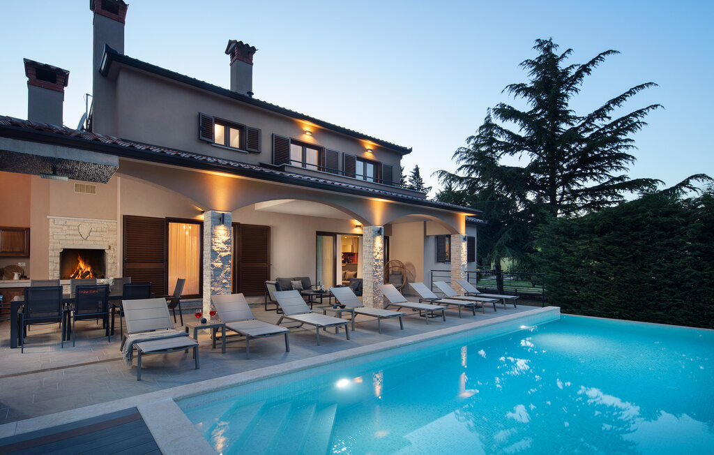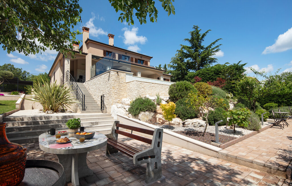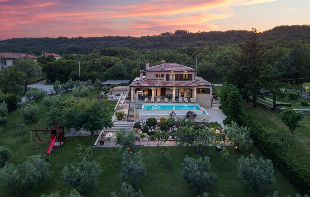 Cette belle villa près de Labin est située dans le magnifique paysage verdoyant de l'Istrie, entourée d'une oliveraie sur un terrain de 3600 m2, à seulement 5 km environ de la mer. La Villa Ripenda Labin peut accueillir 8 personnes dans 4 chambres à coucher confortables et meublées avec goût. Le rez-de-chaussée se compose d'un salon et d'une salle à manger spacieux et d'une cuisine équipée. Une salle de bain et l'une des quatre chambres à coucher se trouvent également au rez-de-chaussée, tandis que les trois autres chambres, chacune avec un lit double, la climatisation et une salle de bain privée, se trouvent à l'étage supérieur. Le jardin de la villa est spacieux et parfait pour profiter de la magnifique nature environnante depuis la piscine privée ou le salon et la salle à manger en plein air. Un sauna et une machine de fitness sont également à votre disposition. Profitez de votre temps dans cette fantastique villa et saisissez l'occasion de vous détendre vraiment, car c'est l'endroit idéal pour cela.Labin est une ville médiévale, située sur une colline au-dessus de la côte magique du Kvarner. Labin est le centre historique et administratif de l'Estrie. La région est un paradis pour les amateurs d'art et d'histoire grâce à son riche patrimoine culturel et architectural. Les ruelles escarpées et sinueuses de la vieille ville abritent des palais historiques bien conservés, de nombreuses galeries d'art et ?studios, ainsi que divers festivals de jazz et de musique classique pendant les mois d'été. La ville dispose de quelques excellents restaurants de poisson, avec de délicieux produits locaux, ainsi que de cafés confortables où vous pourrez profiter de l'atmosphère détendue. La ville côtière de Labin est Rabac, ancien village de pêcheurs, et aujourd'hui une jolie ville côtière avec de nombreuses plages de galets et d'excellents restaurants. Vous pouvez louer un bateau et explorer les criques cachées le long de la côte, ou partir en excursion de pêche avec un bateau de pêche. Le soir, il est possible de se promener merveilleusement bien au bord de la mer à Rabac et de dîner dans l'un des nombreux restaurants de poisson avec des terrasses au bord de l'eau. En raison de son ambiance formidable de petit village de pêcheurs, de ses baies à couper le souffle et de ses eaux cristallines, Rabac est surnommée la 'perle de la baie de Kvarner'.