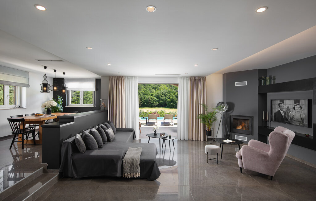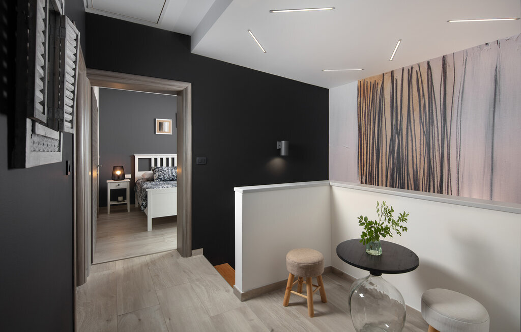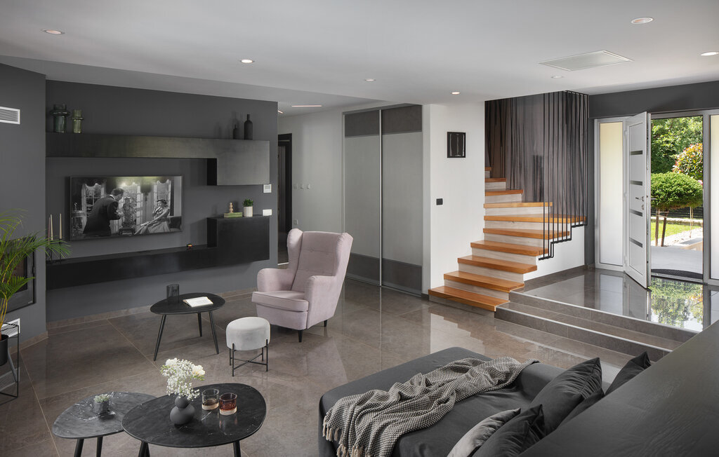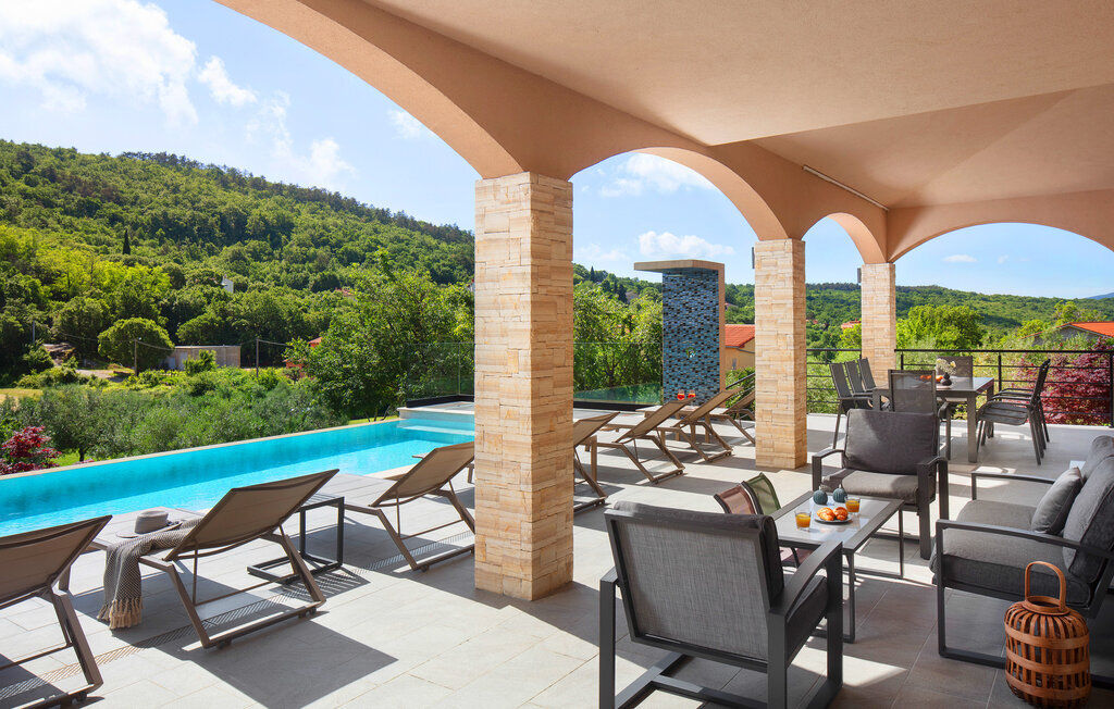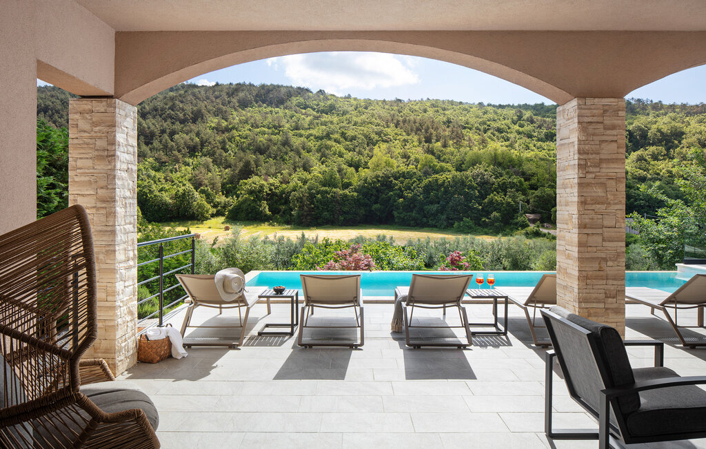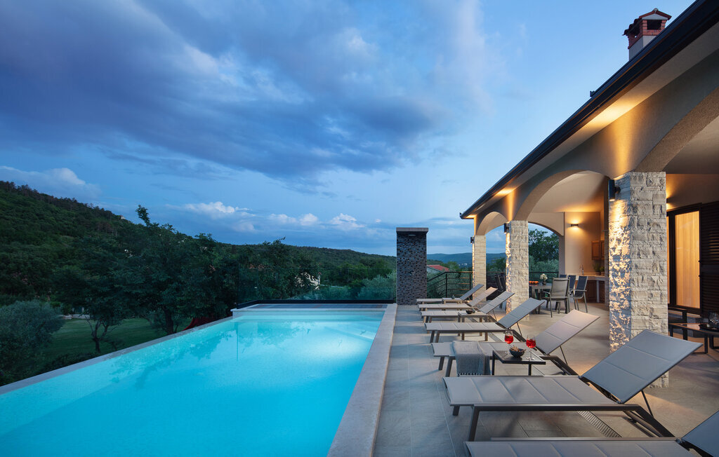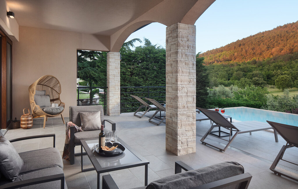 Cette belle villa près de Labin est située dans le magnifique paysage verdoyant de l'Istrie, entourée d'une oliveraie sur un terrain de 3600 m2, à seulement 5 km environ de la mer. La Villa Ripenda Labin peut accueillir 8 personnes dans 4 chambres à coucher confortables et meublées avec goût. Le rez-de-chaussée se compose d'un salon et d'une salle à manger spacieux et d'une cuisine équipée. Une salle de bain et l'une des quatre chambres à coucher se trouvent également au rez-de-chaussée, tandis que les trois autres chambres, chacune avec un lit double, la climatisation et une salle de bain privée, se trouvent à l'étage supérieur. Le jardin de la villa est spacieux et parfait pour profiter de la magnifique nature environnante depuis la piscine privée ou le salon et la salle à manger en plein air. Un sauna et une machine de fitness sont également à votre disposition. Profitez de votre temps dans cette fantastique villa et saisissez l'occasion de vous détendre vraiment, car c'est l'endroit idéal pour cela.Labin est une ville médiévale, située sur une colline au-dessus de la côte magique du Kvarner. Labin est le centre historique et administratif de l'Estrie. La région est un paradis pour les amateurs d'art et d'histoire grâce à son riche patrimoine culturel et architectural. Les ruelles escarpées et sinueuses de la vieille ville abritent des palais historiques bien conservés, de nombreuses galeries d'art et ?studios, ainsi que divers festivals de jazz et de musique classique pendant les mois d'été. La ville dispose de quelques excellents restaurants de poisson, avec de délicieux produits locaux, ainsi que de cafés confortables où vous pourrez profiter de l'atmosphère détendue. La ville côtière de Labin est Rabac, ancien village de pêcheurs, et aujourd'hui une jolie ville côtière avec de nombreuses plages de galets et d'excellents restaurants. Vous pouvez louer un bateau et explorer les criques cachées le long de la côte, ou partir en excursion de pêche avec un bateau de pêche. Le soir, il est possible de se promener merveilleusement bien au bord de la mer à Rabac et de dîner dans l'un des nombreux restaurants de poisson avec des terrasses au bord de l'eau. En raison de son ambiance formidable de petit village de pêcheurs, de ses baies à couper le souffle et de ses eaux cristallines, Rabac est surnommée la 'perle de la baie de Kvarner'.