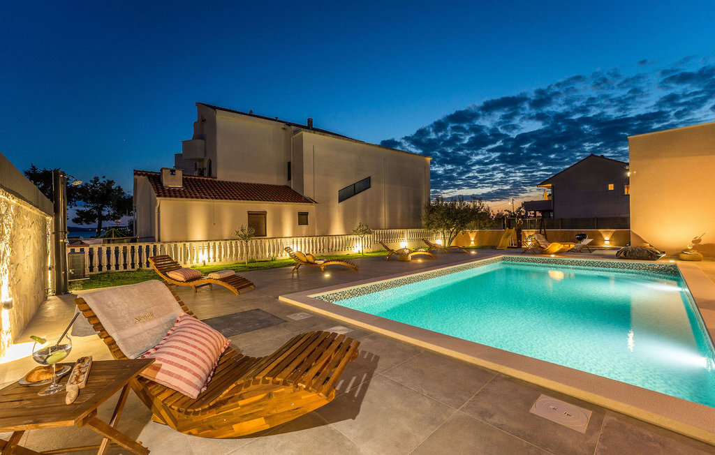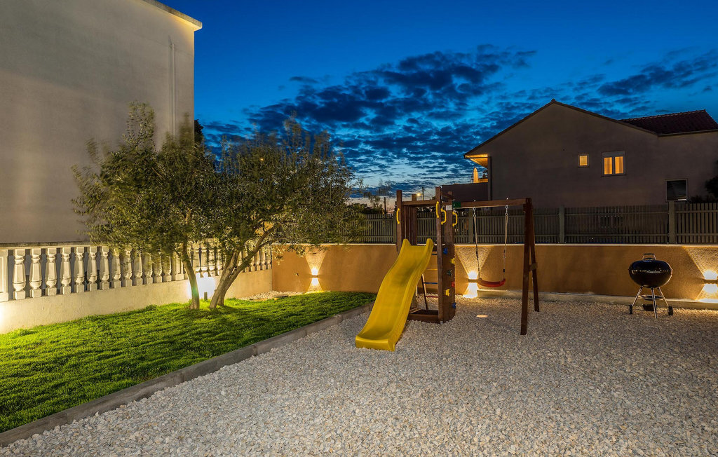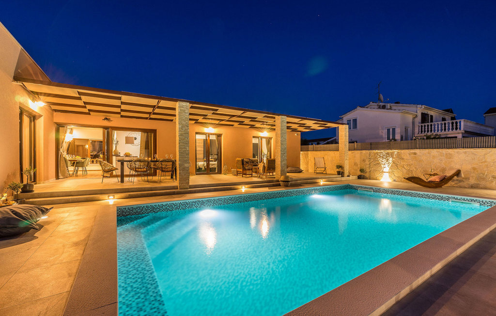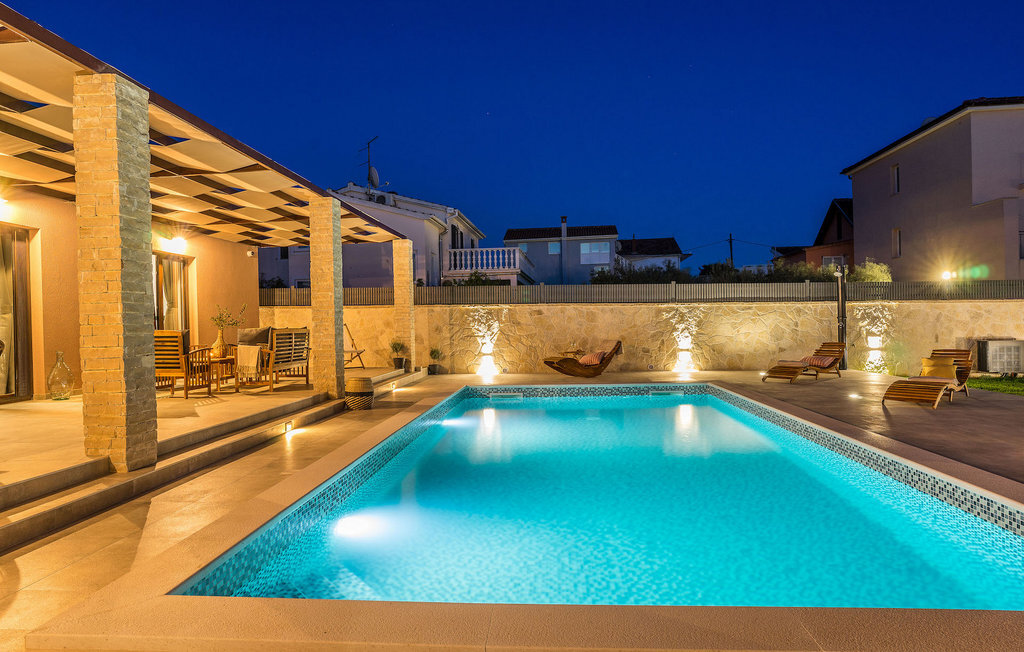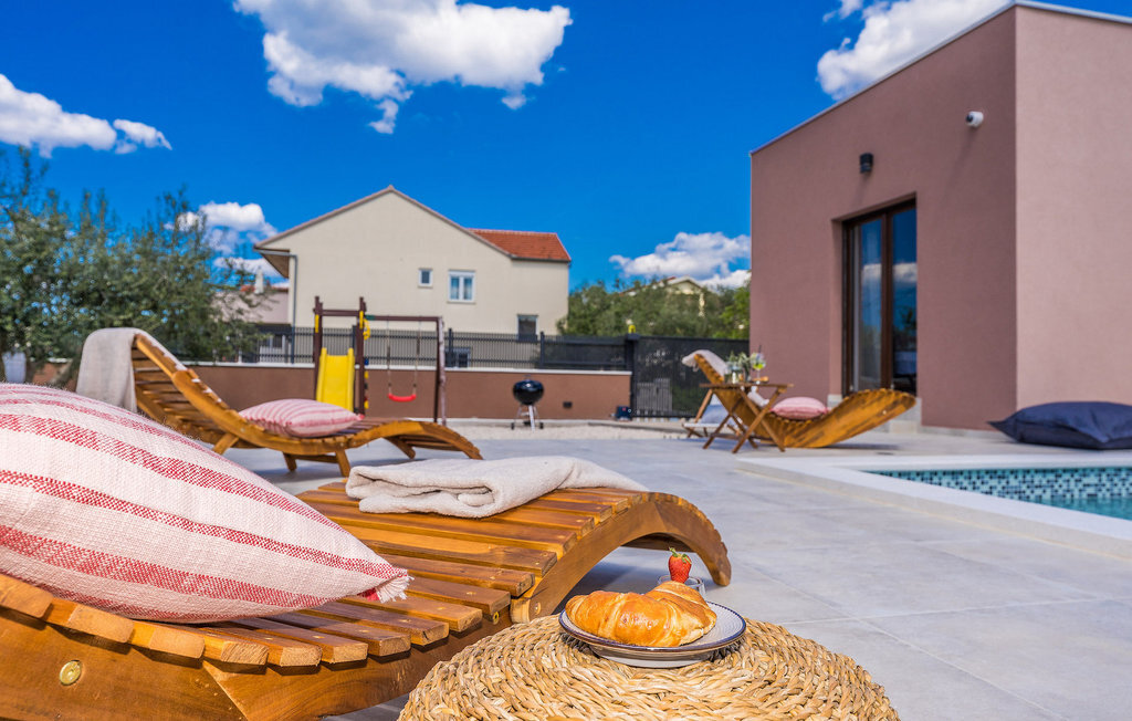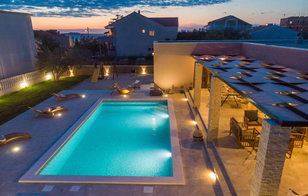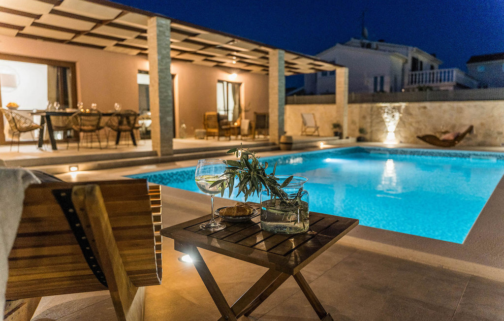 La magnifique villa Skyfall se trouve dans la petite ville côtière de Bibinje, à une courte distance en voiture de Zadar. La villa dispose de 3 chambres bien équipées et peut accueillir jusqu'à 6 personnes. Le rez-de-chaussée ouvert se compose d'une cuisine entièrement équipée, d'un salon confortable avec canapé et télévision et d'un coin repas, l'endroit idéal pour des dîners agréables avec votre famille. Les trois chambres à coucher disposent d'un lit double boxspring et d'une salle de bain privée avec douche. L'espace extérieur est le fleuron de la villa. Si vous souhaitez passer vos vacances au soleil, vous trouverez devant la villa une belle et grande piscine privée dans laquelle vous pourrez vous rafraîchir lors des chaudes journées d'été. L'espace piscine est équipé de chaises longues confortables, l'endroit parfait pour se détendre et lire votre livre préféré. À quelques pas de là se trouve une terrasse couverte avec un coin salon. La villa dispose d'une aire de jeux pour enfants où vos enfants pourront s'amuser pendant que vous préparez de délicieux repas sur le barbecue au charbon de bois. La villa est idéale pour les familles ou les groupes à la recherche de vacances reposantes à deux pas de la mer.La villa moderne Skyfall est située dans la petite ville côtière de Bibinje, à quelques minutes en voiture de Zadar. La villa est idéalement située pour une série d'excursions. À quelques pas de la villa se trouve la plage, qui convient à tous les âges. Nous vous recommandons également de visiter les îles voisines comme Ugljan, Paman et le parc national de Kornati et de découvrir les baies pittoresques et les plus belles plages de l'Adriatique. Zadar vous séduira surtout par sa riche histoire. Promenez-vous dans les ruelles étroites de la ville et visitez les nombreuses galeries et boutiques où vous pourrez acheter des souvenirs faits main. L'attraction incontournable de cette ville est l'orgue de mer unique et la Salutation au soleil, d'où vous pourrez admirer le plus beau coucher de soleil du monde. Toutes les installations nécessaires, comme les magasins et les restaurants, sont accessibles à pied.