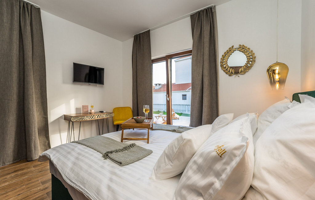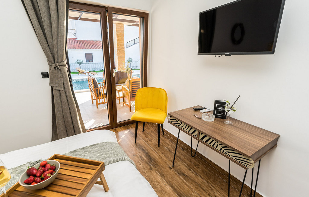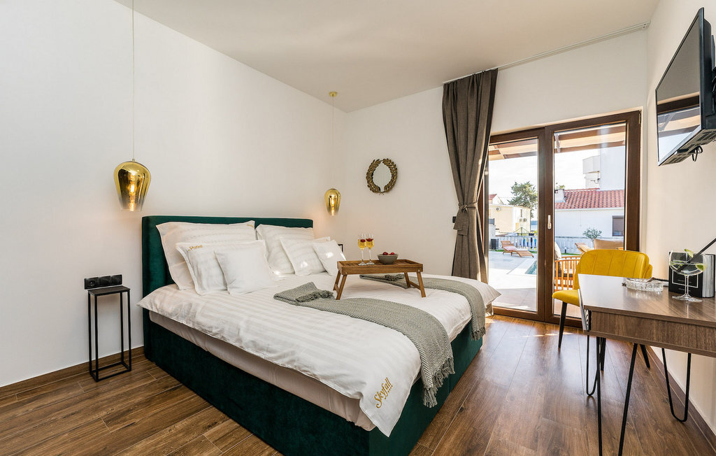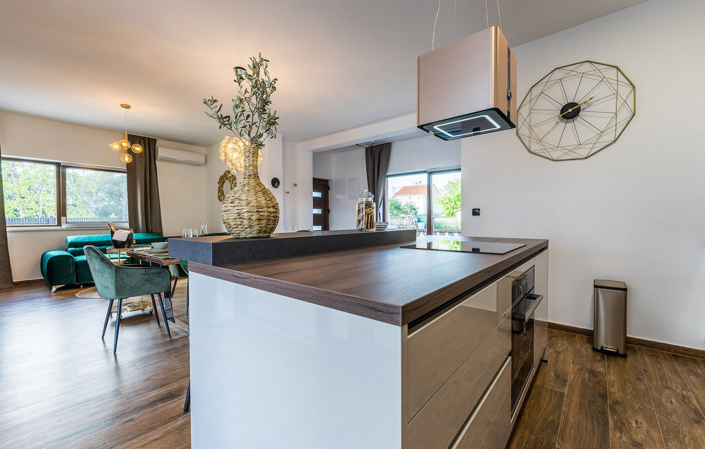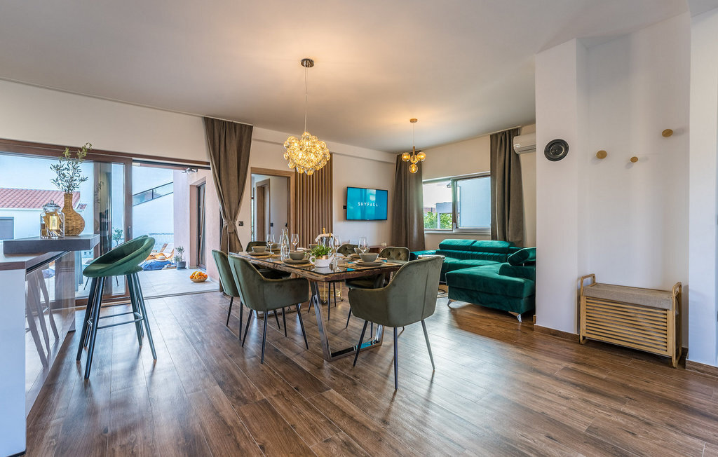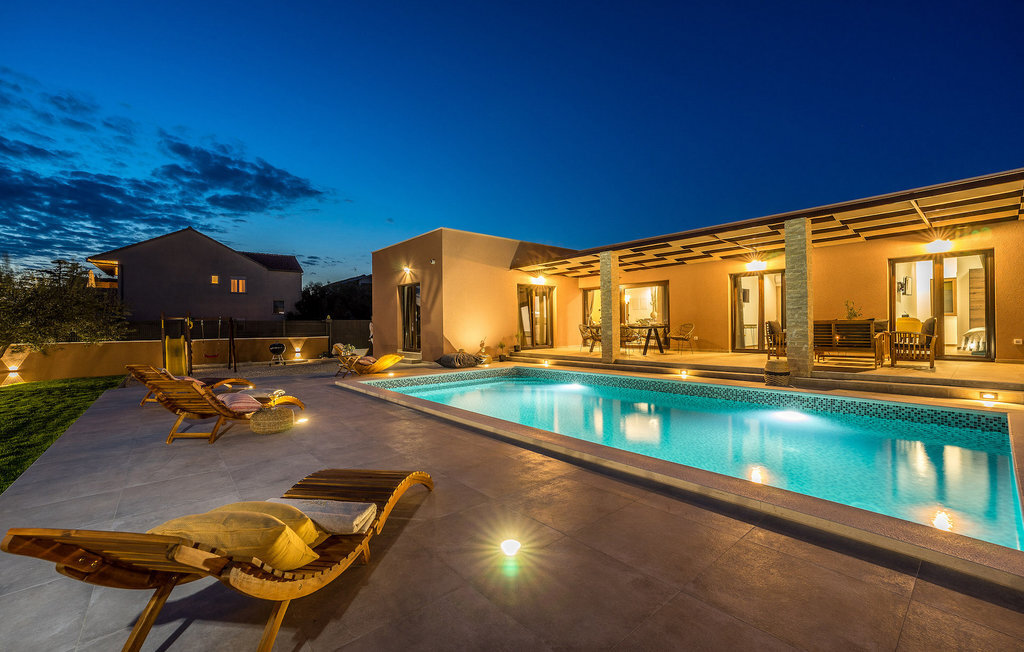 La magnifique villa Skyfall se trouve dans la petite ville côtière de Bibinje, à une courte distance en voiture de Zadar. La villa dispose de 3 chambres bien équipées et peut accueillir jusqu'à 6 personnes. Le rez-de-chaussée ouvert se compose d'une cuisine entièrement équipée, d'un salon confortable avec canapé et télévision et d'un coin repas, l'endroit idéal pour des dîners agréables avec votre famille. Les trois chambres à coucher disposent d'un lit double boxspring et d'une salle de bain privée avec douche. L'espace extérieur est le fleuron de la villa. Si vous souhaitez passer vos vacances au soleil, vous trouverez devant la villa une belle et grande piscine privée dans laquelle vous pourrez vous rafraîchir lors des chaudes journées d'été. L'espace piscine est équipé de chaises longues confortables, l'endroit parfait pour se détendre et lire votre livre préféré. À quelques pas de là se trouve une terrasse couverte avec un coin salon. La villa dispose d'une aire de jeux pour enfants où vos enfants pourront s'amuser pendant que vous préparez de délicieux repas sur le barbecue au charbon de bois. La villa est idéale pour les familles ou les groupes à la recherche de vacances reposantes à deux pas de la mer.La villa moderne Skyfall est située dans la petite ville côtière de Bibinje, à quelques minutes en voiture de Zadar. La villa est idéalement située pour une série d'excursions. À quelques pas de la villa se trouve la plage, qui convient à tous les âges. Nous vous recommandons également de visiter les îles voisines comme Ugljan, Paman et le parc national de Kornati et de découvrir les baies pittoresques et les plus belles plages de l'Adriatique. Zadar vous séduira surtout par sa riche histoire. Promenez-vous dans les ruelles étroites de la ville et visitez les nombreuses galeries et boutiques où vous pourrez acheter des souvenirs faits main. L'attraction incontournable de cette ville est l'orgue de mer unique et la Salutation au soleil, d'où vous pourrez admirer le plus beau coucher de soleil du monde. Toutes les installations nécessaires, comme les magasins et les restaurants, sont accessibles à pied.