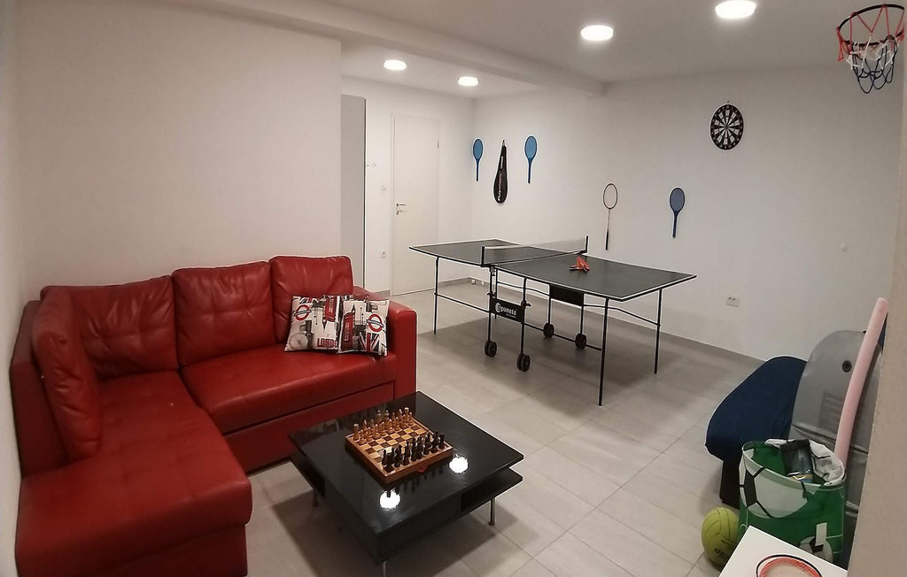 Une particularité pour les petits hôtes se trouve au sous-sol de la villa : dans la salle de jeux, les enfants peuvent s'ébattre et passer du temps sans être dérangés. On y trouve également une autre salle de bain et le garage avec deux vélos, un hoverboard, un skateboard, une trottinette et un vélo de fitness. Comme vous pouvez le constater, la villa a beaucoup à offrir. Laissez-vous convaincre par le confort d'habitation moderne de la Villa Albi, idéale pour les familles ! La Villa Albi se trouve à Kostrena, une ancienne et charmante ville côtière à proximité immédiate de la ville portuaire de Rijeka. Autrefois habitée par plusieurs générations de marins et de capitaines, cette petite ville a une longue tradition maritime. Kostrena est située sur une presqu'île d'environ 10 km de long, encadrée par les baies de Martinscica et de Bakar. De nombreuses plages et une mer cristalline attirent chaque année les baigneurs dans la baie de Kvarner. Une promenade de 3 km le long de la côte permet de se promener à merveille et de profiter de l'offre gastronomique des restaurants et des bars. Vous aimez être actif pendant vos vacances ? Alors profitez sur place de l'offre sportive variée. Que ce soit la plongée, la voile, le vélo, le jogging, la randonnée ou le jet-ski, il y a certainement quelque chose pour chaque passionné de sport. Le clou - les plages, comme beaucoup d'autres choses, ne sont qu'à une très courte distance à pied de la Villa Albi. Vous pouvez donc vous rendre rapidement à la plage après votre café du matin et profiter des premiers rayons de soleil sur votre peau.