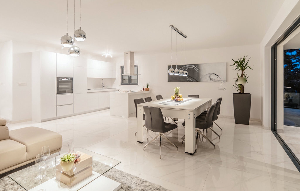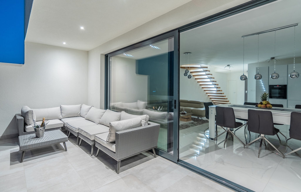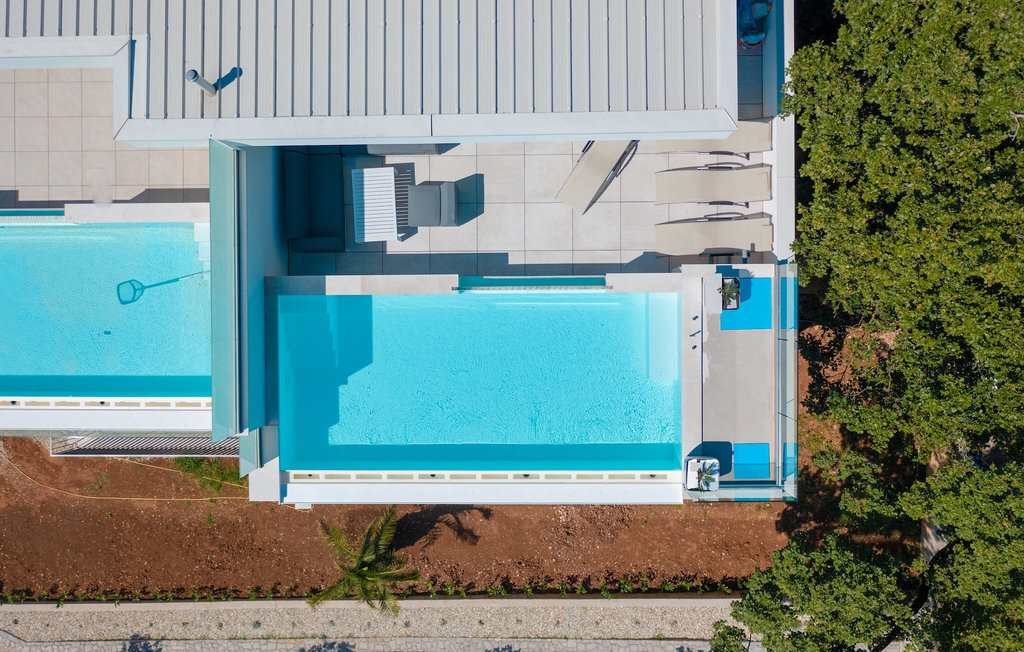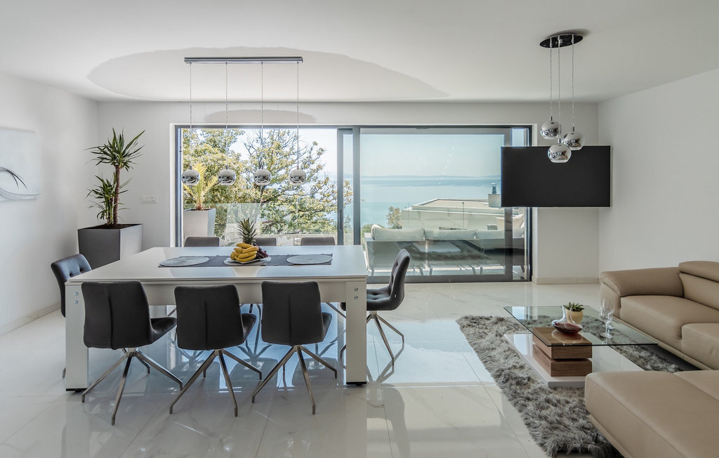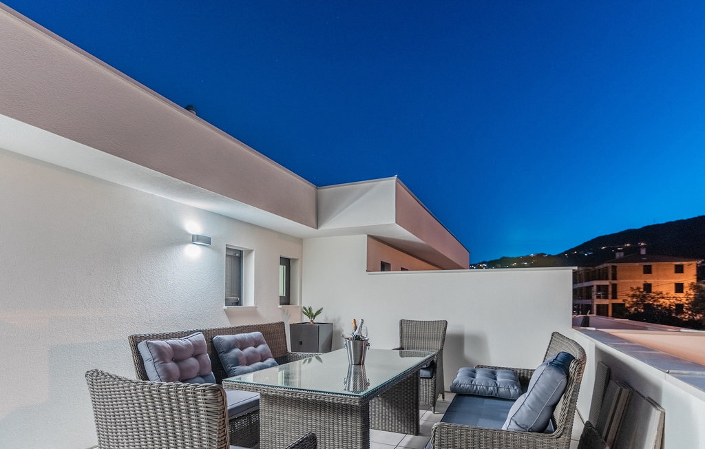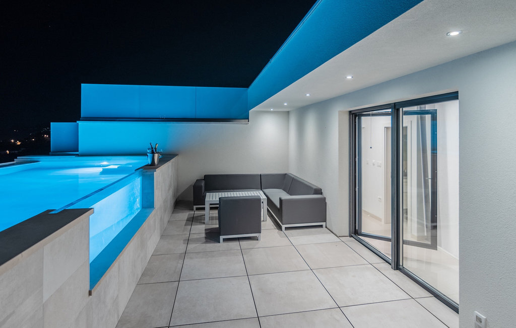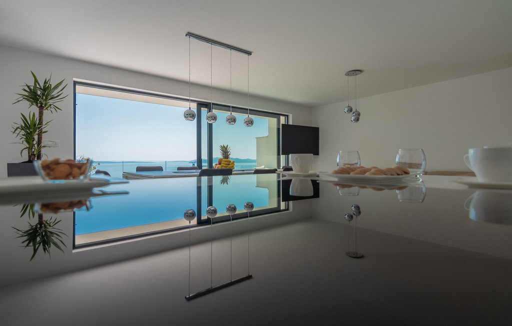 La villa moderne The Boat se trouve à proximité d'Opatija, la station balnéaire la plus populaire de Kvarner. Située sur la colline de la petite ville de Matulji, les terrasses de cette villa offrent une vue panoramique magnifique sur le golfe de Kvarner. Au bord de la piscine sur le toit de la villa The Boat, vous aurez l'impression de naviguer sur les vagues du golfe.