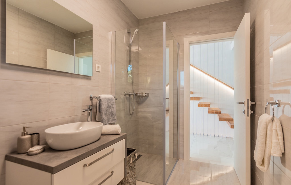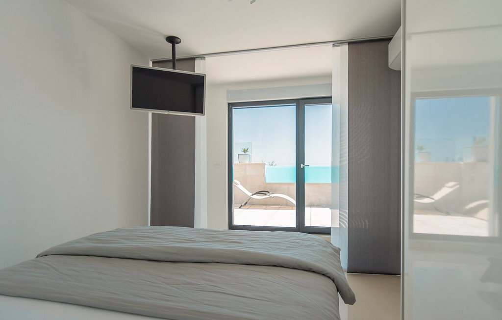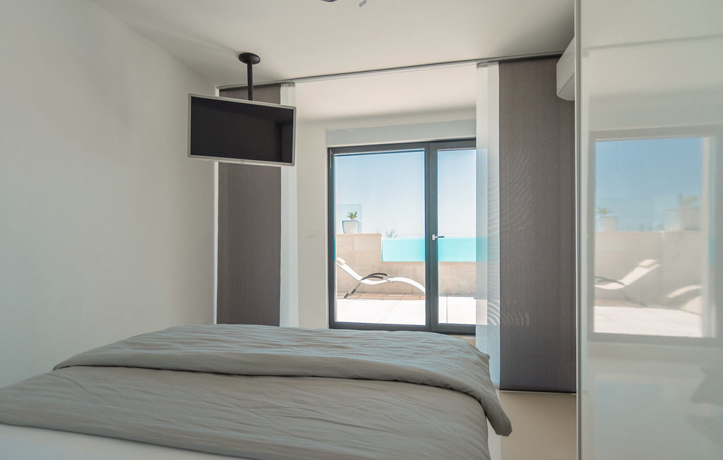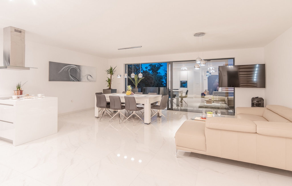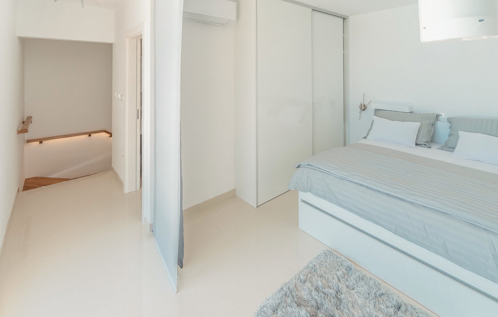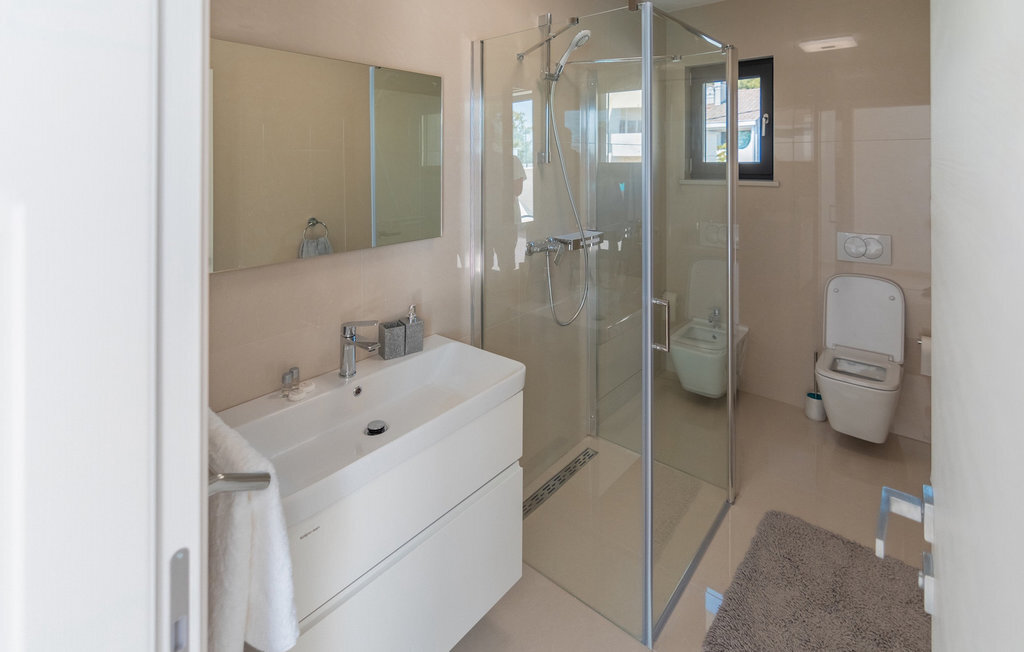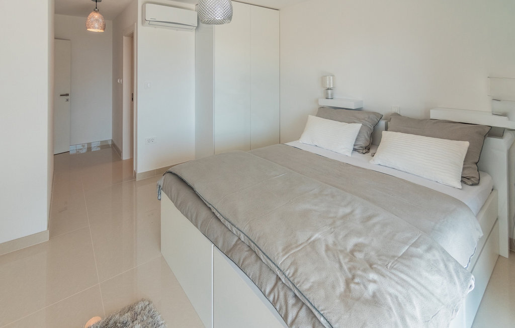 La villa est divisée en trois niveaux. Au rez-de-chaussée se trouvent deux chambres à lit double, chacune avec sa propre salle de bain avec douche, télévision et climatisation. Au premier étage se trouvent un salon et une salle à manger modernes avec une cuisine et une salle de bain. La table à manger peut facilement être transformée en table de billard. Au même étage, il y a une chambre supplémentaire pour deux enfants plus sur demande. L'imposant escalier en bois mène à une autre chambre avec un lit double au deuxième étage. La chambre dispose d'une salle de bain privée, d'une télévision et de la climatisation. Chaque étage de cette villa dispose d'une terrasse où vous pourrez profiter du soleil ou du ciel étoilé en famille ou entre amis. Vous ne quitterez qu'à regret la piscine sur le toit de la villa, qui vous invite à nager au-dessus des nuages de la baie de Kvarner.
