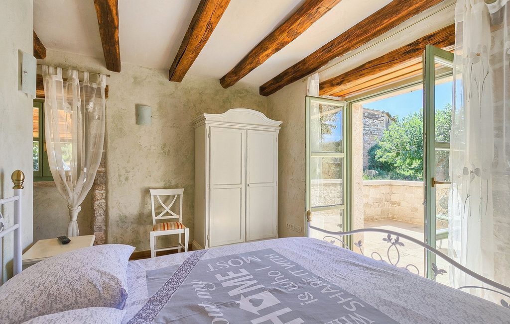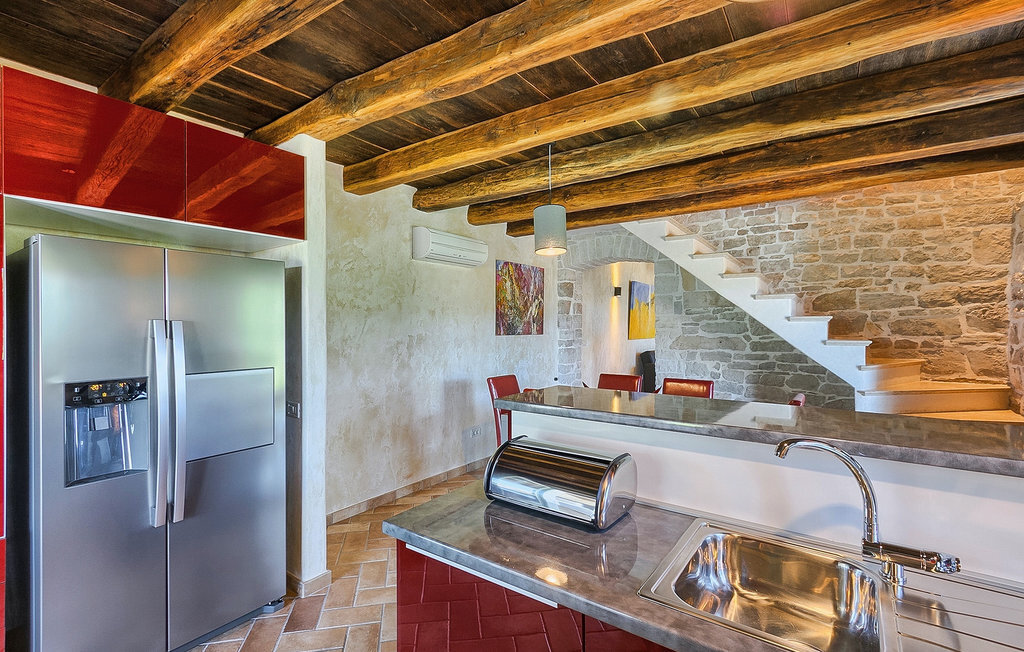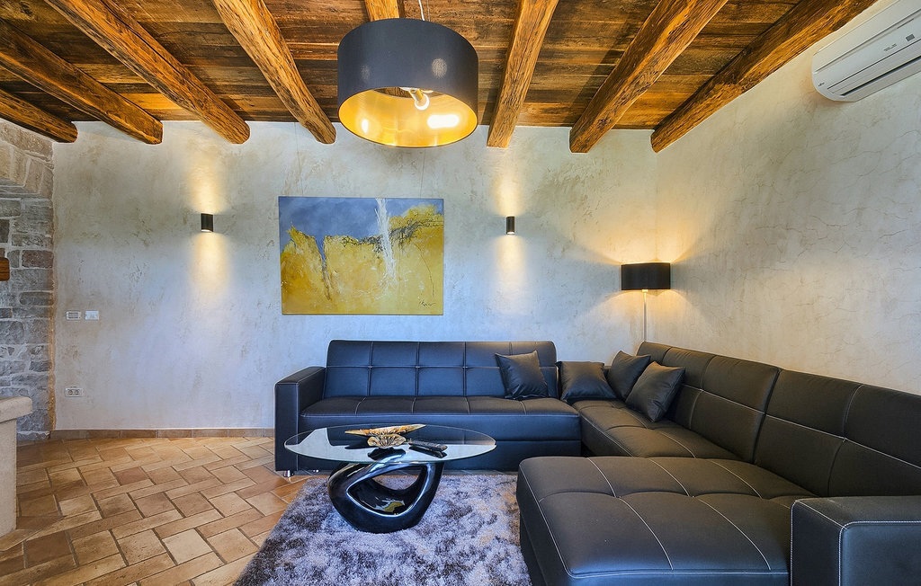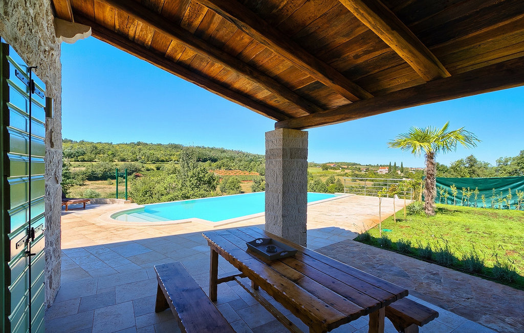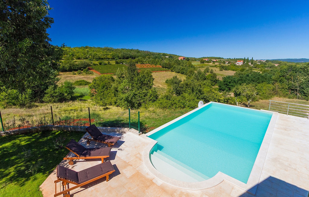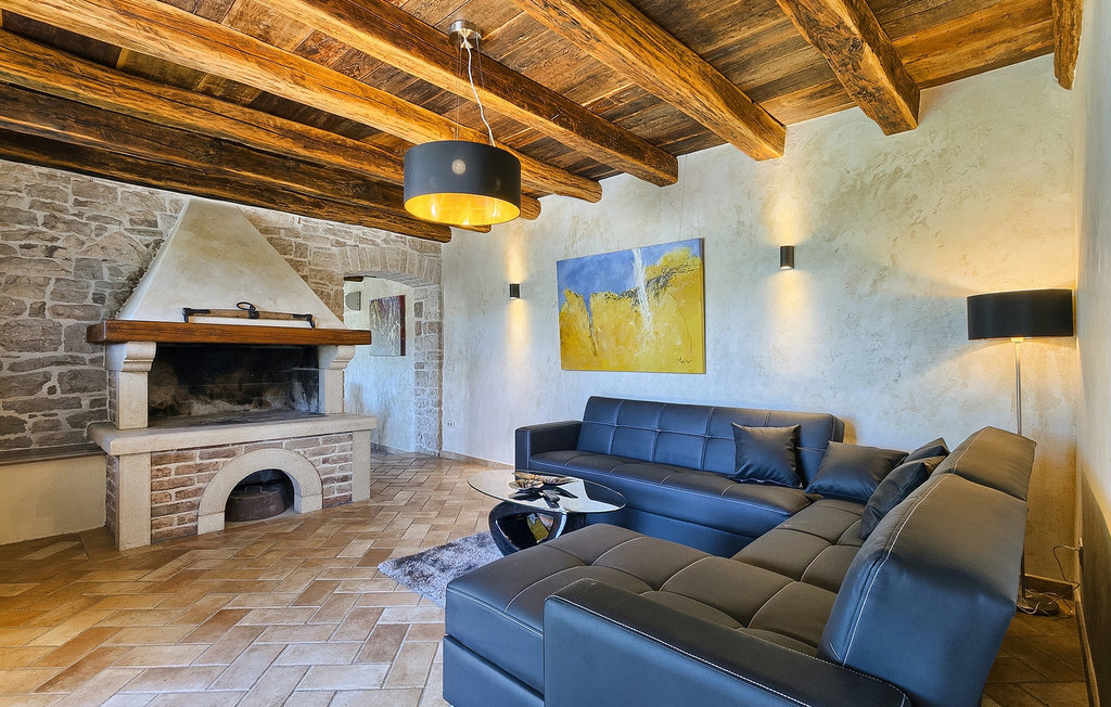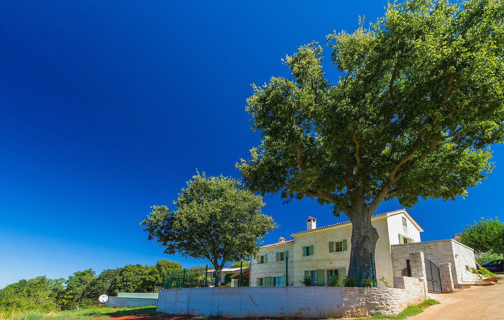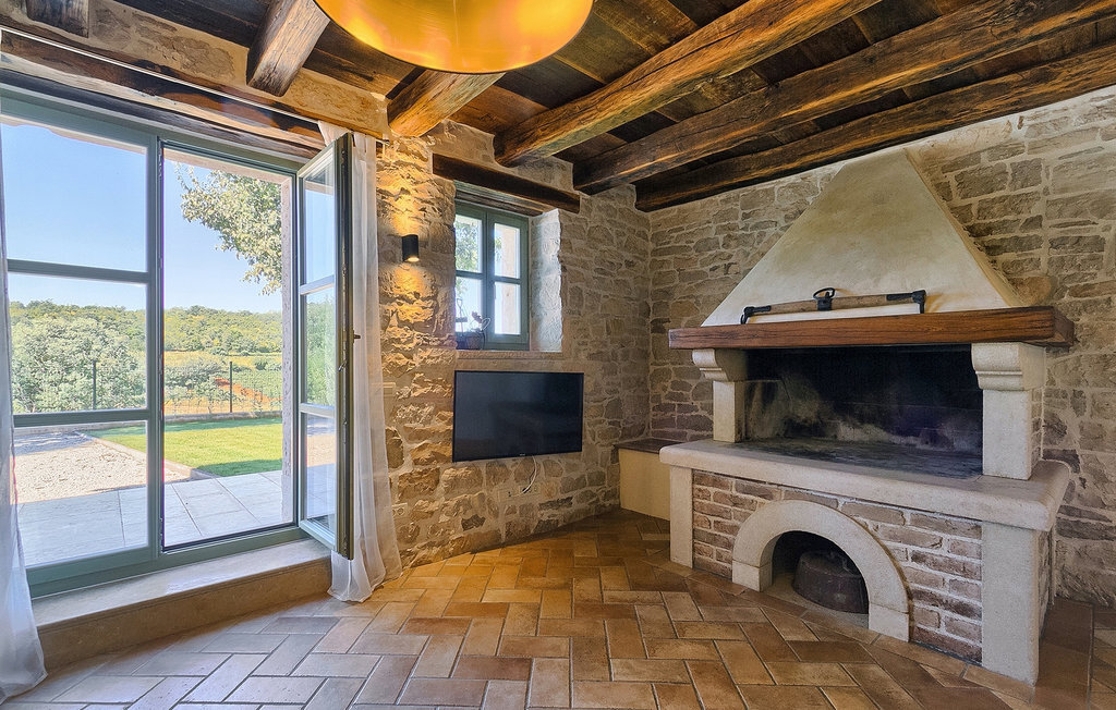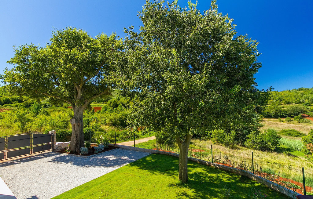 Des collines idylliques et boisées parsemées d'oliveraies, de petits villages pittoresques et d'authentiques fermes sont visibles depuis la Villa Zvonar, située sur une colline verdoyante au cœur de l'Istrie centrale. Une maison traditionnelle en pierre a été rénovée avec soin et amour afin de préserver son charme et sa tranquillité d'origine, tout en y ajoutant des équipements modernes, dont des salles de bains attenantes magnifiquement aménagées, une connexion Wi-Fi et le chauffage au sol. Le rez-de-chaussée offre un grand salon et une salle à manger ouverts avec une cuisine entièrement équipée, de sorte que vous pouvez vous aventurer à préparer quelques recettes régionales. Les plafonds à poutres en bois, les murs en pierre naturelle et la cheminée confortable créent une atmosphère rustique agréable et accueillante, tandis que les grandes fenêtres panoramiques laissent entrer beaucoup de lumière naturelle et soulignent l'infinité de la vue. Les trois chambres à coucher, aménagées avec goût, se trouvent à l'étage supérieur, deux d'entre elles avec des terrasses privées qui servent de coins tranquilles idéaux. Le même soin et la même attention ont été apportés aux espaces extérieurs, où vous trouverez un jardin écologique. Le vaste jardin gazonné est orné d'une variété de fleurs, ainsi que de buissons de lavande et de romarin, et entoure la piscine accueillante. Le véritable calme et la beauté unique de cette région magique peuvent être véritablement appréciés ici. Le jacuzzi extérieur est à votre disposition.