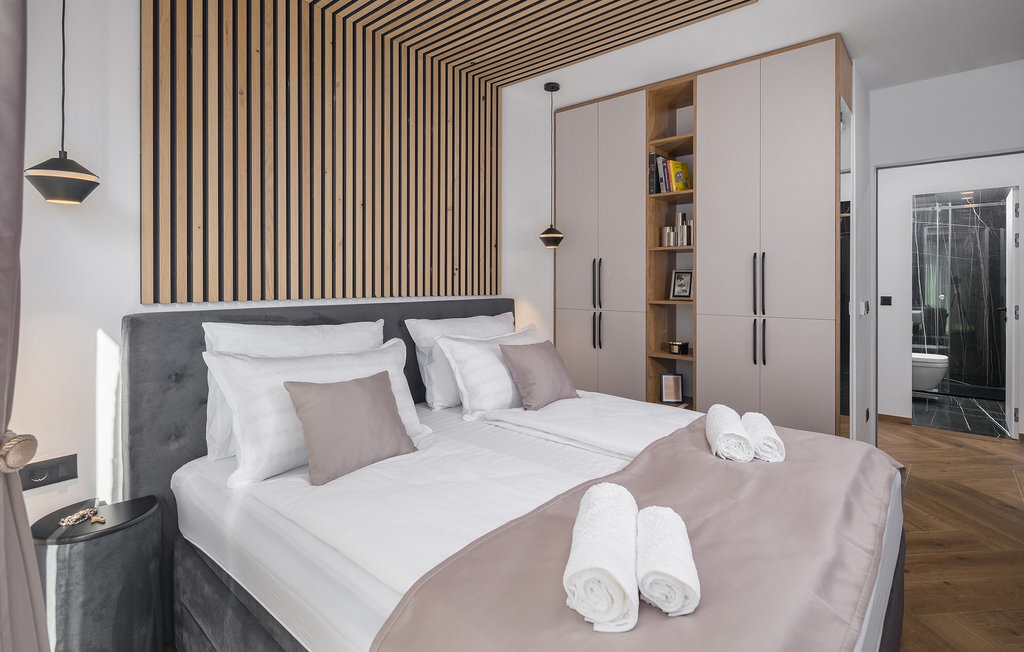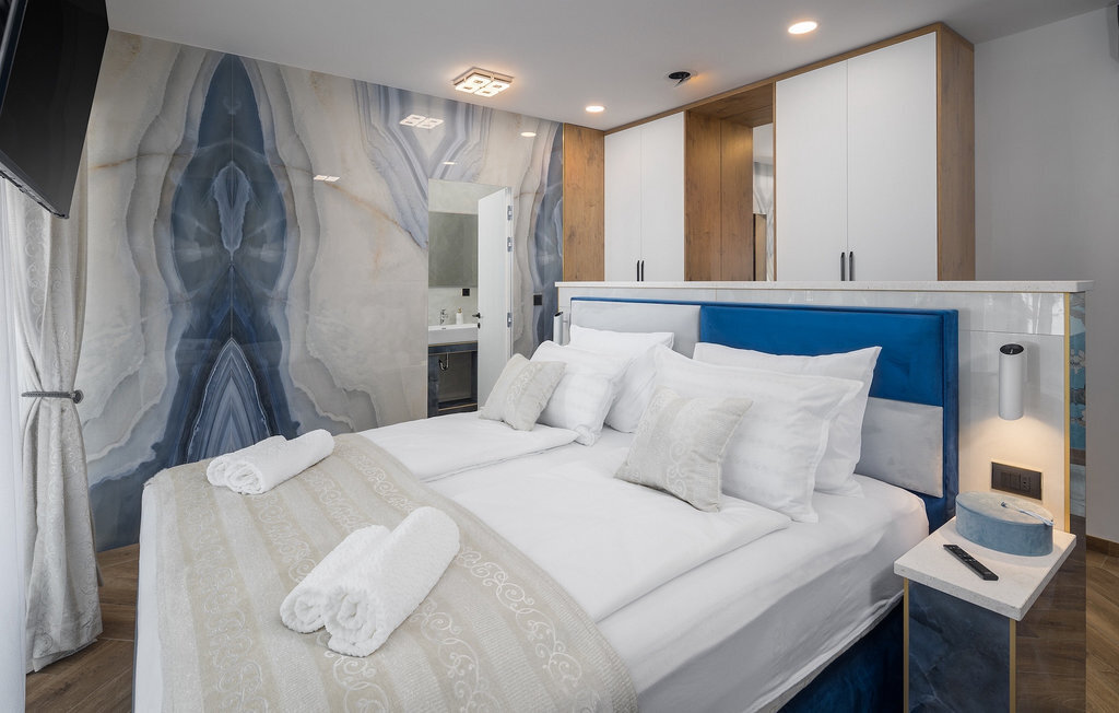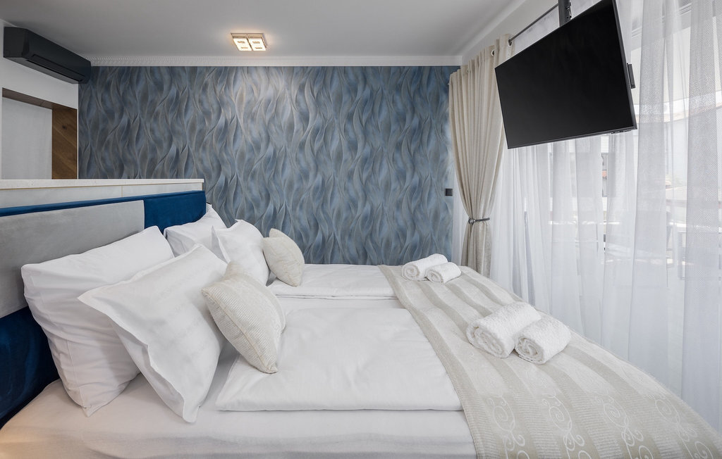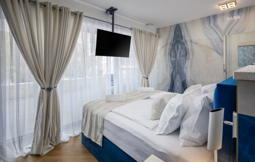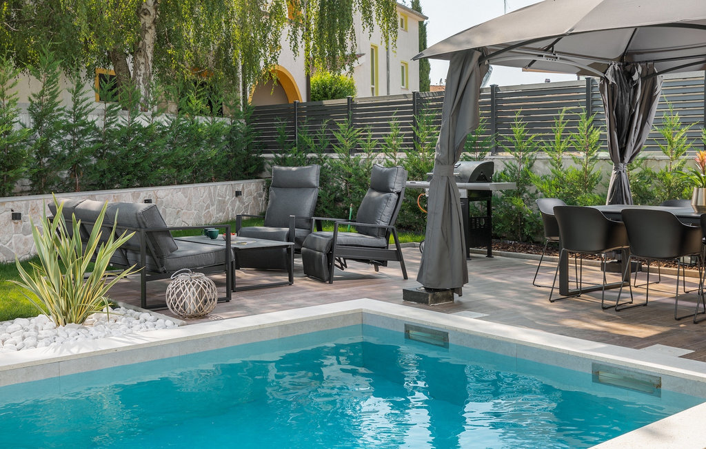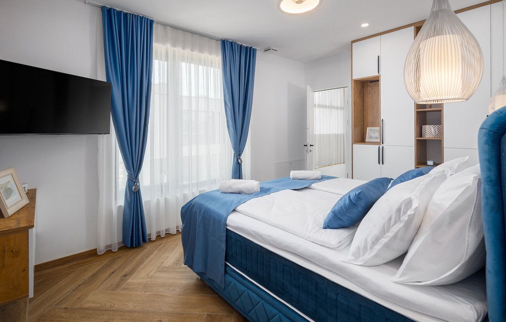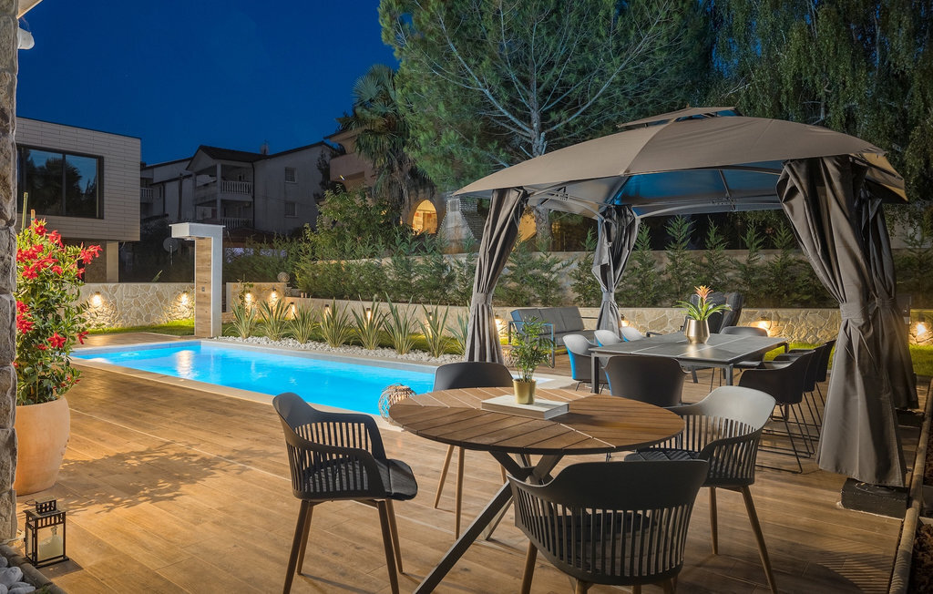 En montant les escaliers vers le premier étage, vous trouverez les trois chambres restantes, chacune avec sa propre salle de bain. Chaque chambre est décorée de manière unique et se distingue par l'attention portée à chaque détail. La chambre principale se distingue toutefois par son propre grand balcon avec vue sur la piscine et la terrasse extérieure. La possibilité de boire son café du matin en toute tranquillité sur son propre balcon rend certainement le réveil matinal, même en vacances, beaucoup plus facile!Funtana est un petit village d'Istrie situé sur la côte entre les villes de Vrsar et de Pore. Comme elle est située directement sur la côte, tous les avantages des vacances d'été sont à portée de main, avec une multitude de plages comme celles de Funtana, Puntica et la plage pour chiens de Bijela Uvala. Visitez la magnifique ville de Vrsar, située à seulement 4 km, ou faites une excursion d'une journée à Pore, connue surtout pour sa basilique d'Euphrasius. La basilique a été construite au 6e siècle, à l'époque de l'évêque Euphrasius et de l'empereur Justinien Ier, et est un monument caractéristique de l'art byzantin. Elle a même été inscrite au patrimoine mondial de l'UNESCO. Ne manquez pas non plus les excursions d'une journée dans la partie centrale de l'Istrie, où se trouvent de nombreuses tavernes et propriétés avec des vignobles, où vous pourrez déguster des délices istriens comme le prosciutto et des vins caractéristiques.