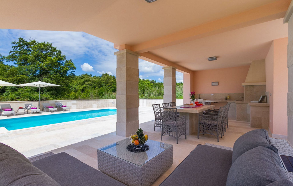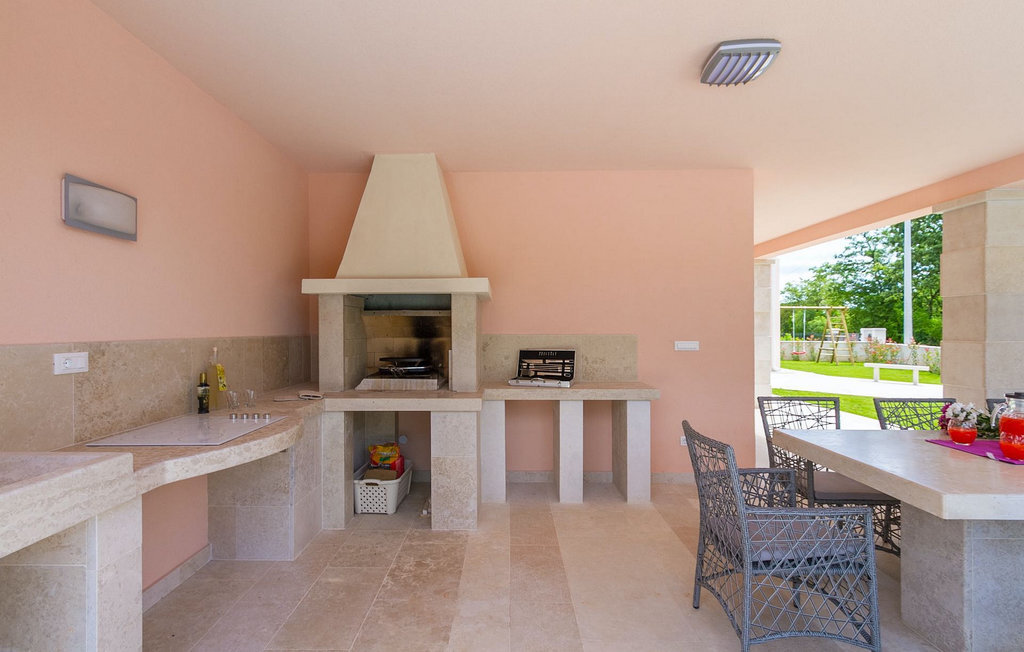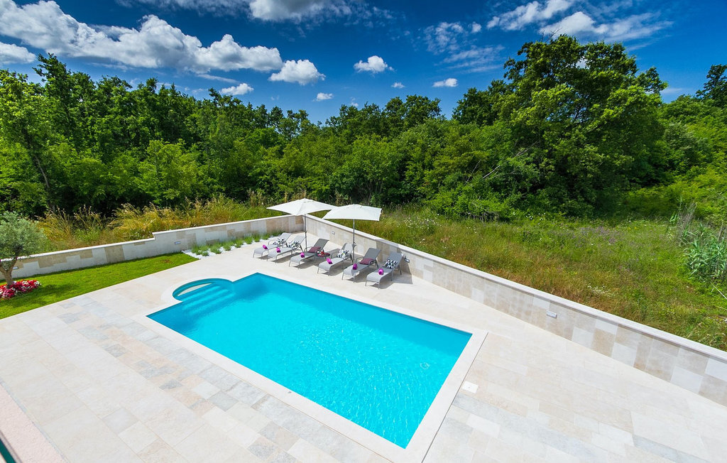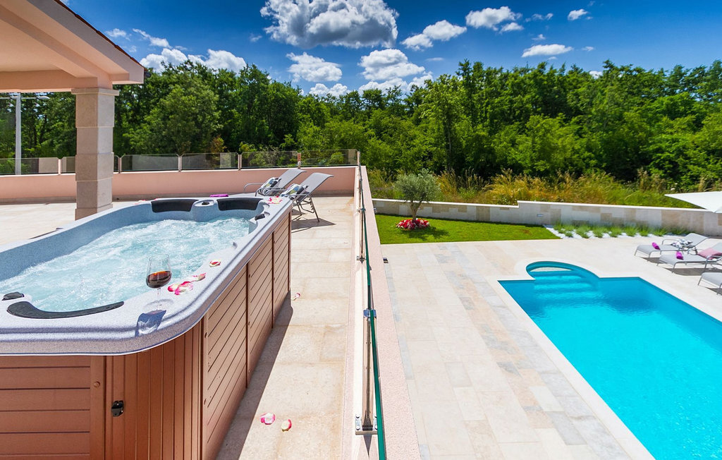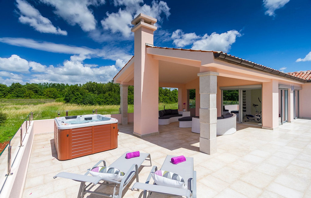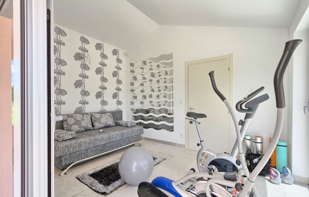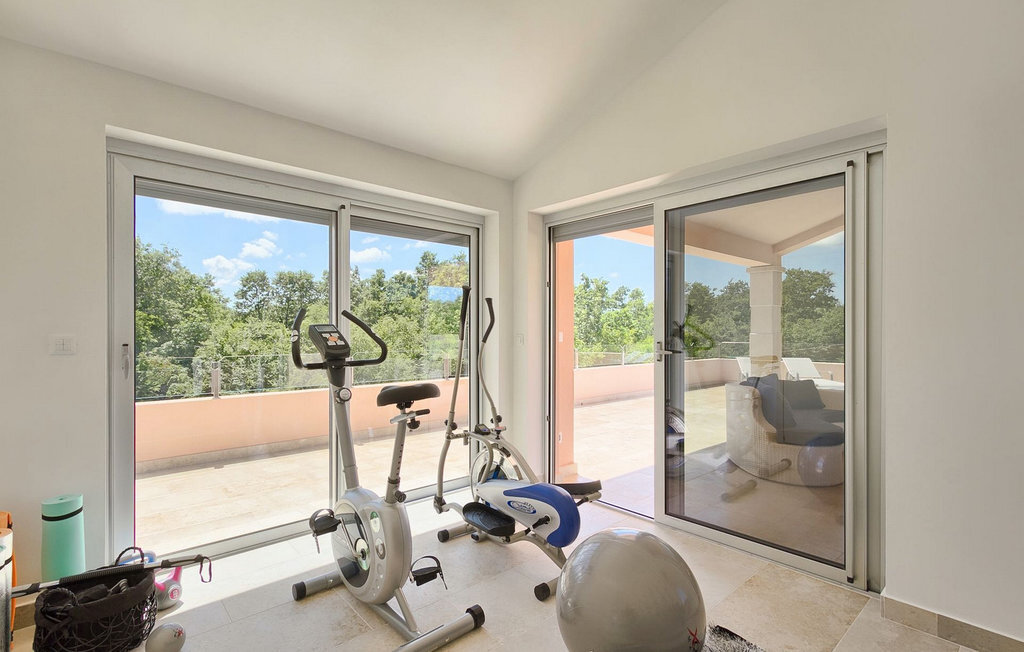 Loin du bruit et de la foule de la côte estivale, mais à proximité immédiate de la petite baie pittoresque de Krnica, bien connue pour ses bons restaurants de poisson et ses plages exceptionnelles, cette magnifique villa promet de véritables vacances d'été en Istrie. Pensez aux plongeons dans l'eau rafraîchissante, aux dîners savoureux sur la terrasse avec du poisson grillé sur la table, aux magnifiques promenades avec les délicats parfums des plantes sauvages aromatiques, ainsi qu'aux excursions d'une journée vers les villes et villages pittoresques riches en culture et en histoire. À l'intérieur de cette villa moderne et élégamment meublée, vous trouverez quatre chambres lumineuses et confortables, trois salles de bains modernes, ainsi qu'un salon/cuisine/salle à manger spacieux et bien agencé, entouré de grandes fenêtres en forme de galerie qui apportent une abondance de lumière naturelle et donnent de l'air à toute la maison. Elles s'ouvrent sur le vaste espace barbecue couvert, qui offre un lieu de rassemblement al fresco agréable. Avec le choix de salons et de salles à manger, à la fois à l'intérieur et à l'extérieur, et des chaises longues confortables, dispersées autour du joli jardin gazonné pour trouver un endroit ensoleillé, vous voudrez probablement simplement vous prélasser, plonger dans et hors de l'alléchante piscine. Mais pour ceux qui ont plus d'énergie, une salle de fitness est à disposition, ainsi qu'un magnifique jacuzzi extérieur pour un plaisir supplémentaire. La Villa Liv est le choix absolument parfait pour une véritable expérience de la nature et un fabuleux refuge istrien.