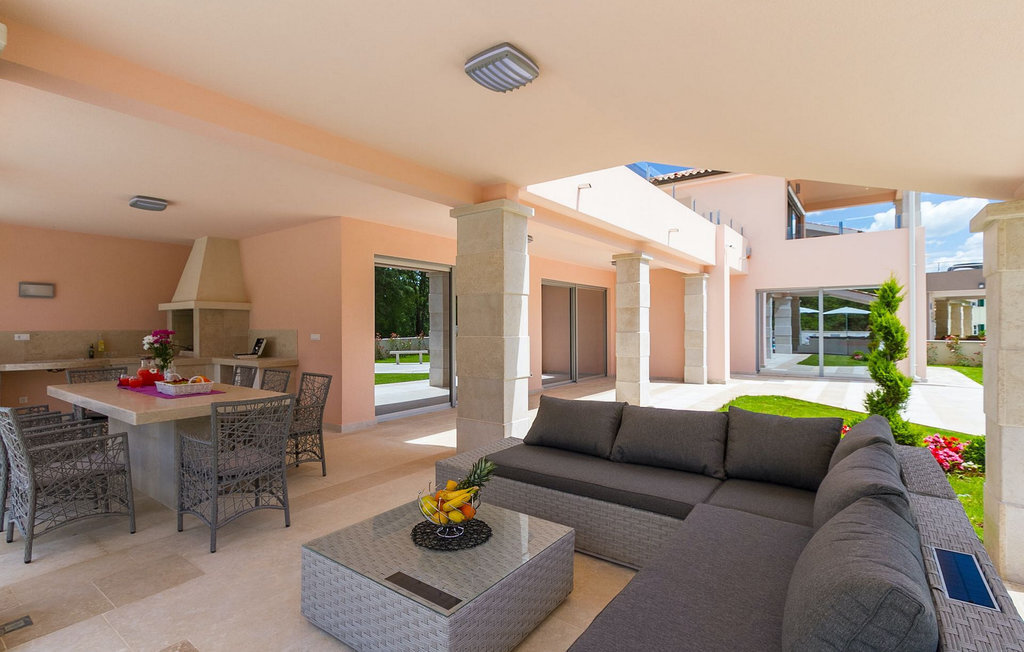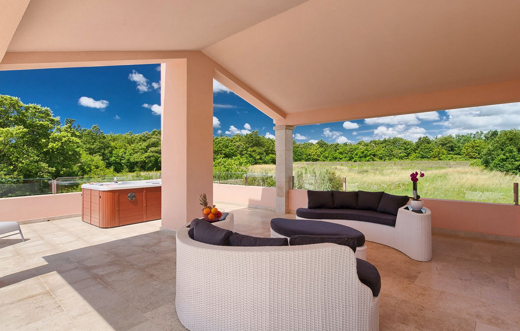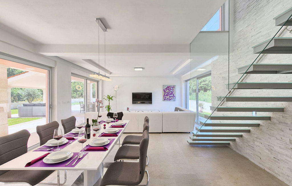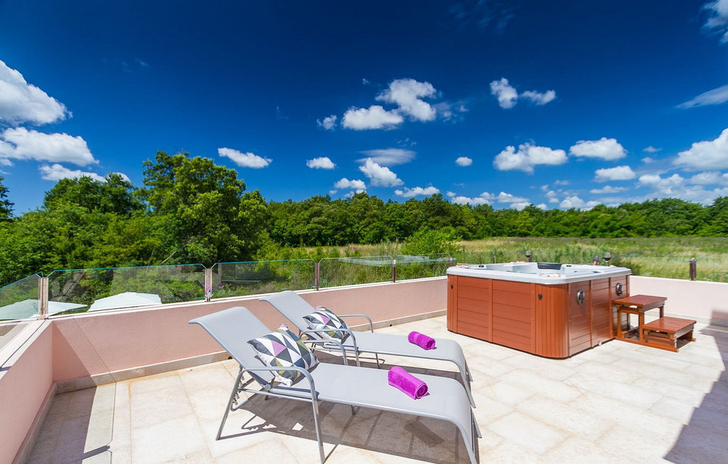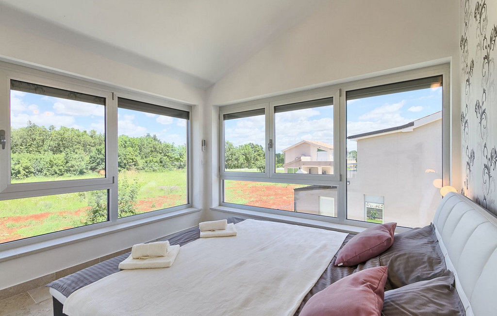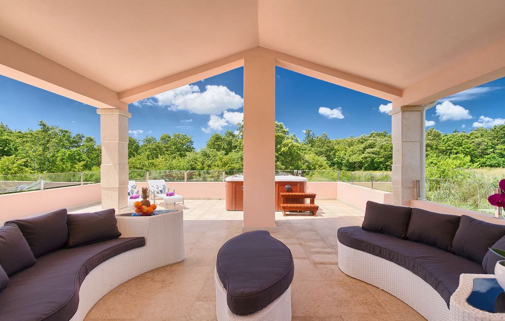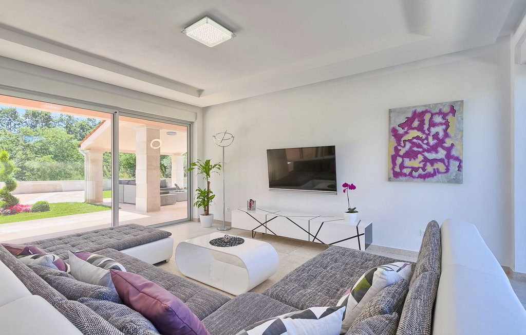 Loin du bruit et de la foule de la côte estivale, mais à proximité immédiate de la petite baie pittoresque de Krnica, bien connue pour ses bons restaurants de poisson et ses plages exceptionnelles, cette magnifique villa promet de véritables vacances d'été en Istrie. Pensez aux plongeons dans l'eau rafraîchissante, aux dîners savoureux sur la terrasse avec du poisson grillé sur la table, aux magnifiques promenades avec les délicats parfums des plantes sauvages aromatiques, ainsi qu'aux excursions d'une journée vers les villes et villages pittoresques riches en culture et en histoire. À l'intérieur de cette villa moderne et élégamment meublée, vous trouverez quatre chambres lumineuses et confortables, trois salles de bains modernes, ainsi qu'un salon/cuisine/salle à manger spacieux et bien agencé, entouré de grandes fenêtres en forme de galerie qui apportent une abondance de lumière naturelle et donnent de l'air à toute la maison. Elles s'ouvrent sur le vaste espace barbecue couvert, qui offre un lieu de rassemblement al fresco agréable. Avec le choix de salons et de salles à manger, à la fois à l'intérieur et à l'extérieur, et des chaises longues confortables, dispersées autour du joli jardin gazonné pour trouver un endroit ensoleillé, vous voudrez probablement simplement vous prélasser, plonger dans et hors de l'alléchante piscine. Mais pour ceux qui ont plus d'énergie, une salle de fitness est à disposition, ainsi qu'un magnifique jacuzzi extérieur pour un plaisir supplémentaire. La Villa Liv est le choix absolument parfait pour une véritable expérience de la nature et un fabuleux refuge istrien.