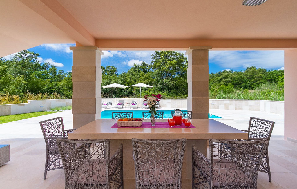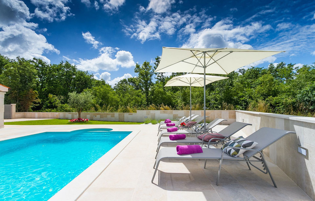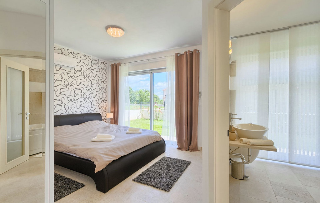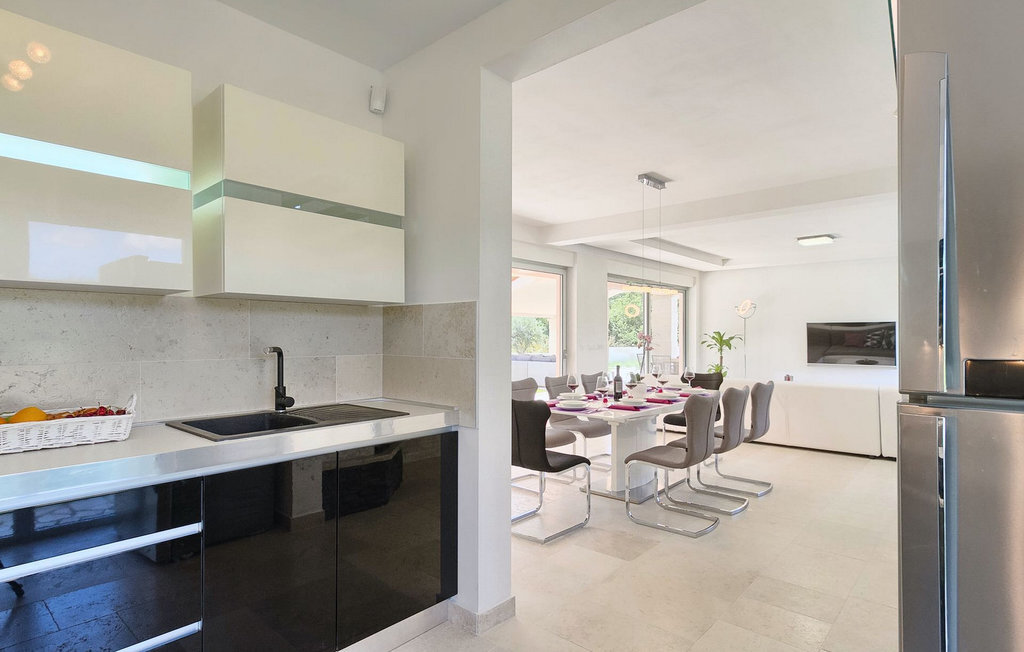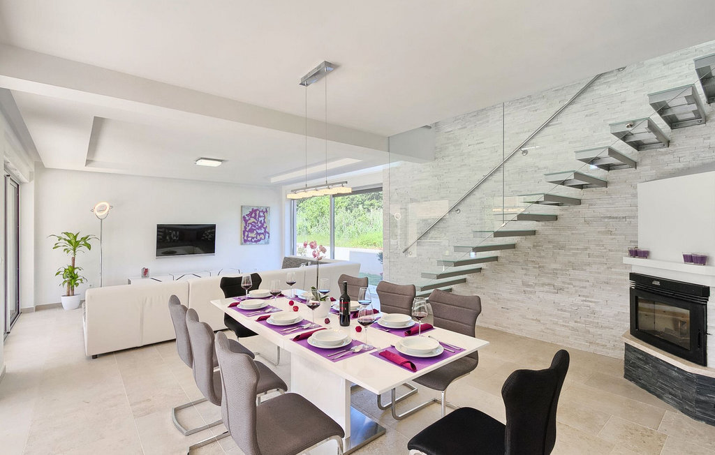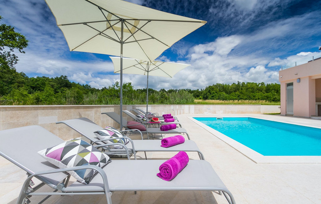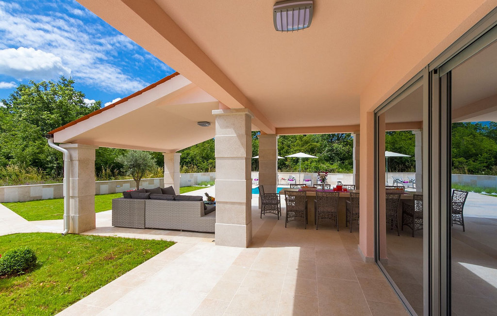 Loin du bruit et de la foule de la côte estivale, mais à proximité immédiate de la petite baie pittoresque de Krnica, bien connue pour ses bons restaurants de poisson et ses plages exceptionnelles, cette magnifique villa promet de véritables vacances d'été en Istrie. Pensez aux plongeons dans l'eau rafraîchissante, aux dîners savoureux sur la terrasse avec du poisson grillé sur la table, aux magnifiques promenades avec les délicats parfums des plantes sauvages aromatiques, ainsi qu'aux excursions d'une journée vers les villes et villages pittoresques riches en culture et en histoire. À l'intérieur de cette villa moderne et élégamment meublée, vous trouverez quatre chambres lumineuses et confortables, trois salles de bains modernes, ainsi qu'un salon/cuisine/salle à manger spacieux et bien agencé, entouré de grandes fenêtres en forme de galerie qui apportent une abondance de lumière naturelle et donnent de l'air à toute la maison. Elles s'ouvrent sur le vaste espace barbecue couvert, qui offre un lieu de rassemblement al fresco agréable. Avec le choix de salons et de salles à manger, à la fois à l'intérieur et à l'extérieur, et des chaises longues confortables, dispersées autour du joli jardin gazonné pour trouver un endroit ensoleillé, vous voudrez probablement simplement vous prélasser, plonger dans et hors de l'alléchante piscine. Mais pour ceux qui ont plus d'énergie, une salle de fitness est à disposition, ainsi qu'un magnifique jacuzzi extérieur pour un plaisir supplémentaire. La Villa Liv est le choix absolument parfait pour une véritable expérience de la nature et un fabuleux refuge istrien.