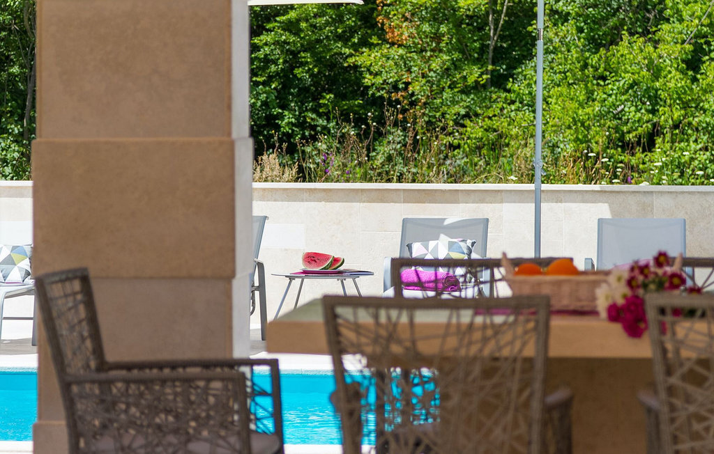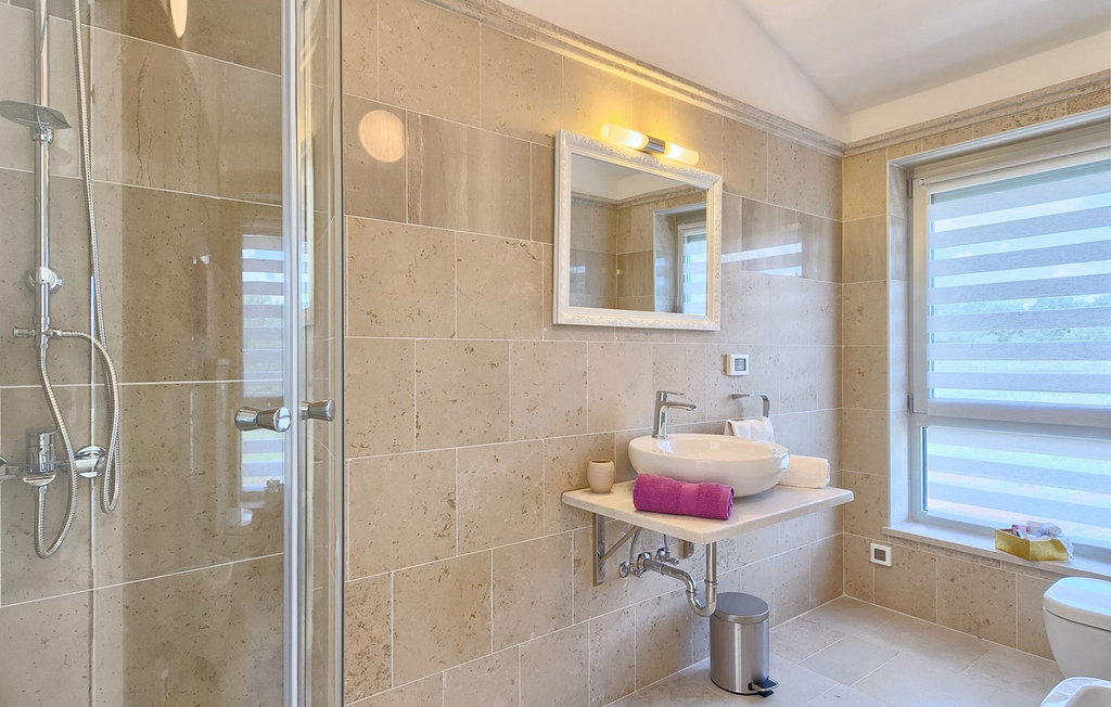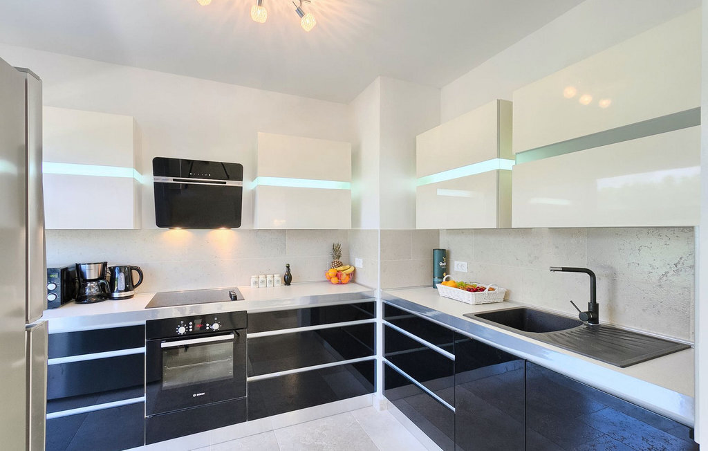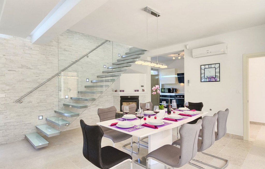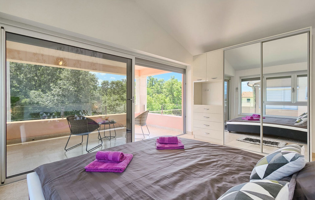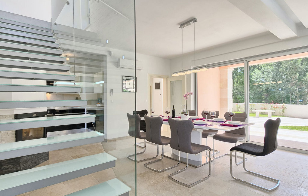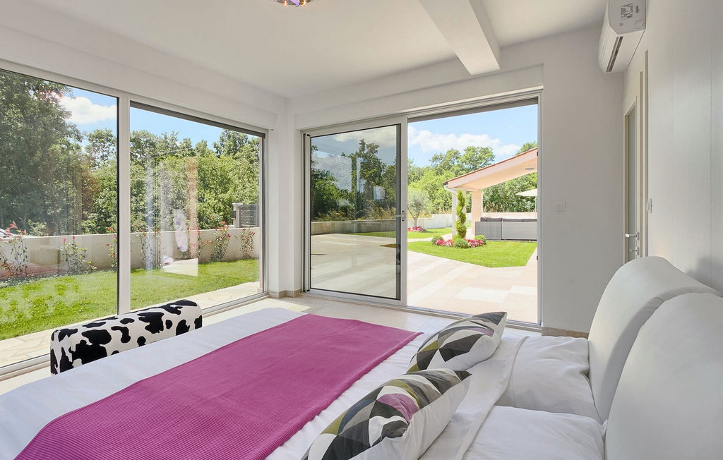 Loin du bruit et de la foule de la côte estivale, mais à proximité immédiate de la petite baie pittoresque de Krnica, bien connue pour ses bons restaurants de poisson et ses plages exceptionnelles, cette magnifique villa promet de véritables vacances d'été en Istrie. Pensez aux plongeons dans l'eau rafraîchissante, aux dîners savoureux sur la terrasse avec du poisson grillé sur la table, aux magnifiques promenades avec les délicats parfums des plantes sauvages aromatiques, ainsi qu'aux excursions d'une journée vers les villes et villages pittoresques riches en culture et en histoire. À l'intérieur de cette villa moderne et élégamment meublée, vous trouverez quatre chambres lumineuses et confortables, trois salles de bains modernes, ainsi qu'un salon/cuisine/salle à manger spacieux et bien agencé, entouré de grandes fenêtres en forme de galerie qui apportent une abondance de lumière naturelle et donnent de l'air à toute la maison. Elles s'ouvrent sur le vaste espace barbecue couvert, qui offre un lieu de rassemblement al fresco agréable. Avec le choix de salons et de salles à manger, à la fois à l'intérieur et à l'extérieur, et des chaises longues confortables, dispersées autour du joli jardin gazonné pour trouver un endroit ensoleillé, vous voudrez probablement simplement vous prélasser, plonger dans et hors de l'alléchante piscine. Mais pour ceux qui ont plus d'énergie, une salle de fitness est à disposition, ainsi qu'un magnifique jacuzzi extérieur pour un plaisir supplémentaire. La Villa Liv est le choix absolument parfait pour une véritable expérience de la nature et un fabuleux refuge istrien.