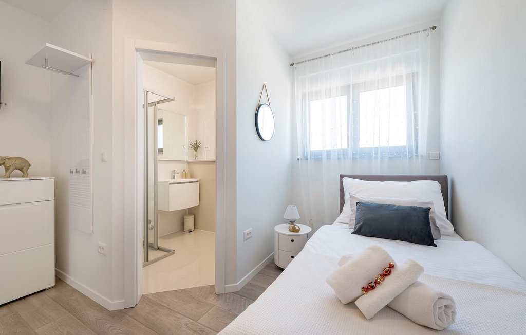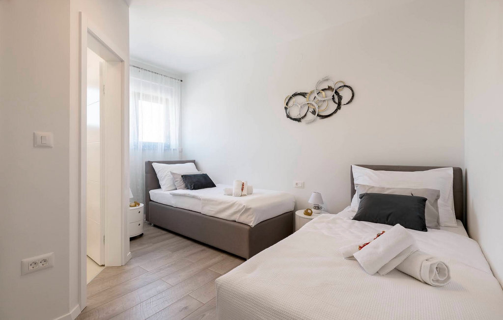 Le charmant intérieur, aménagé avec goût, se compose de deux étages. Au rez-de-chaussée, vous trouverez une chambre à coucher avec un lit double, une salle de bain séparée ainsi qu'un salon et une salle à manger ouverts. Le salon confortable est rempli de lumière naturelle grâce à de grandes portes françaises. La cuisine entièrement équipée dispose d'une élégante salle à manger pour 10 personnes. À l'étage supérieur se trouvent trois chambres à coucher, chacune avec sa propre salle de bain. Deux chambres disposent d'un lit double et la troisième de deux lits simples. La villa dispose d'un parking privé pour 6 voituresLa charmante villa Mirakul est située sur la magnifique péninsule de Srima, avec toutes les commodités nécessaires à quelques minutes à pied. Une courte promenade suffit pour rejoindre la plage la plus proche. Ne manquez pas l'occasion de visiter la ville historique de Sibenik et la cathédrale Saint-Jacques. Ce joyau architectural se trouve sur la liste du patrimoine mondial de l'UNESCO. La situation de la villa est parfaite pour des excursions d'une journée dans les parcs nationaux environnants comme le NP Krka, le NP Kornati ou le parc naturel du lac Vrana. Pendant votre séjour, n'oubliez pas de visiter l'une des îles voisines comme Murter, Prvic ou Zlarin.