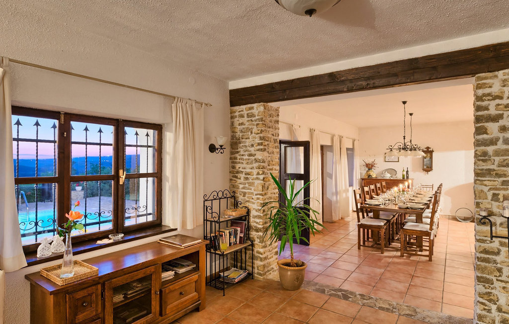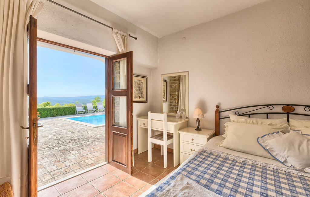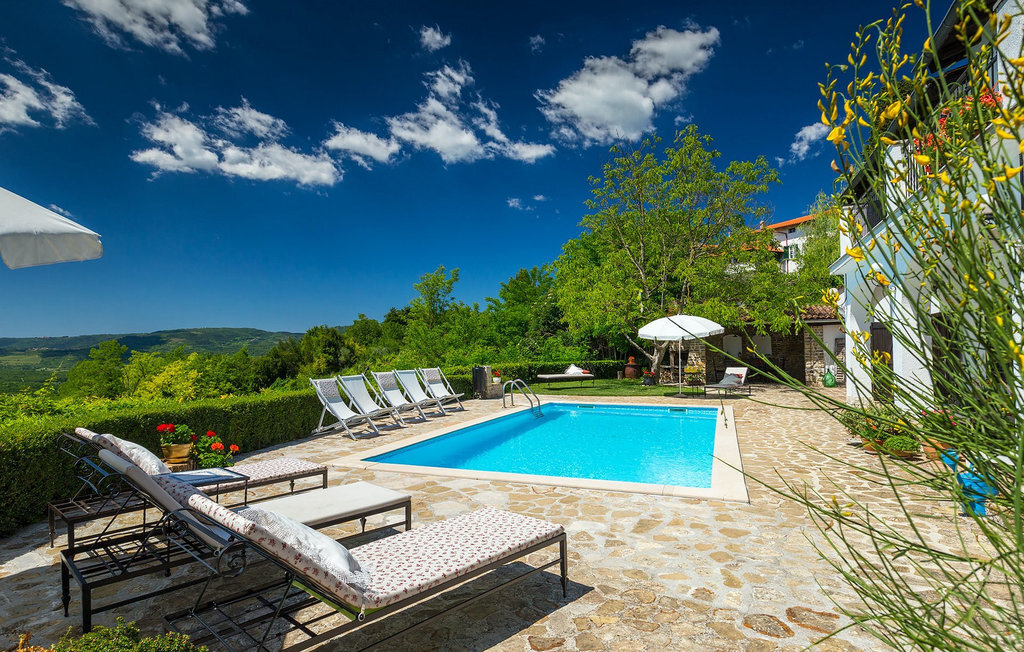 Les services de cuisine et de nettoyage sont disponibles moyennant un supplément.Motovun est un village médiéval avec un terrain de golf, des sources naturelles et un spa, des possibilités d'équitation et un festival international du film. De grands restaurants, des tavernes, des caves à vin et des cafés se trouvent dans les environs de la maison de vacances. La côte adriatique avec ses plages et ses stations balnéaires de Porec, Rovinj et Novigrad est à 20 min. Pula et le parc national des îles Brijuni sont à 45 min. Vous pouvez même rejoindre Porec en empruntant la piste de VTT qui passe juste en dessous de la propriété. De Porec, vous pouvez prendre le ferry pour Venise. À seulement 30 minutes en voiture se trouve Trieste, avec de fantastiques possibilités de shopping de l'autre côté de la frontière. La maison l'endroit parfait à Motovun pour les grands groupes. La conception de bon goût, le jardin et la vue imprenable sur la vallée de la Mirna rendent cette propriété unique. Sans aucun doute l'un des meilleurs emplacements dans la région de Motovun. Tous les services sont accessibles à pied.