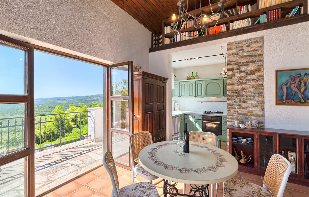 La maison de vacances se trouve sous les murs de la ville de Motovun, sur la colline au-dessus de la magnifique vallée de la rivière Mirna. Elle surplombe la vieille forêt de chênes de Motovun, riche en truffes et en champignons au goût exquis.
