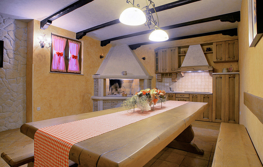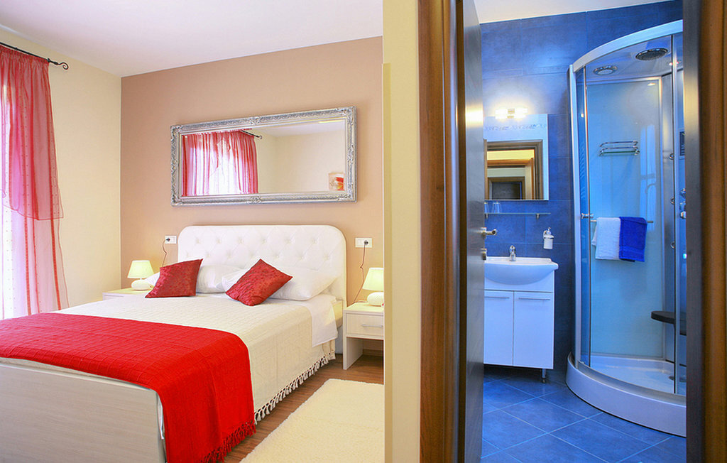 Jusqu'à 10 personnes, 3 chambres à coucher. L'appartement est situé au centre de la vieille ville, à 400 mètres de la plage. Au rez-de-chaussée se trouve un grand espace de vie ouvert avec une cuisine entièrement équipée, ainsi qu'un salon et une salle à manger. Le grand salon comprend une magnifique cheminée et une télévision LCD par satellite. Une des chambres à coucher se trouve au rez-de-chaussée. Les trois chambres doubles sont spacieuses et disposent d'une salle de bain en suite et de la climatisation à réglage individuel. Un lit supplémentaire par chambre, ainsi que des lits et des chaises hautes pour enfants, peuvent être mis gratuitement à disposition. Chaque lit est équipé de coussinets en cristal médical Galaxie, qui vous permettront de bien dormir et d'obtenir de nombreux autres avantages pour votre santé. À l'extérieur, il y a une grande piscine avec des chaises longues. À côté de la piscine, il y a une terrasse couverte pour les repas en plein air avec un grand barbecue. La villa est très calme et entourée d'oliviers.