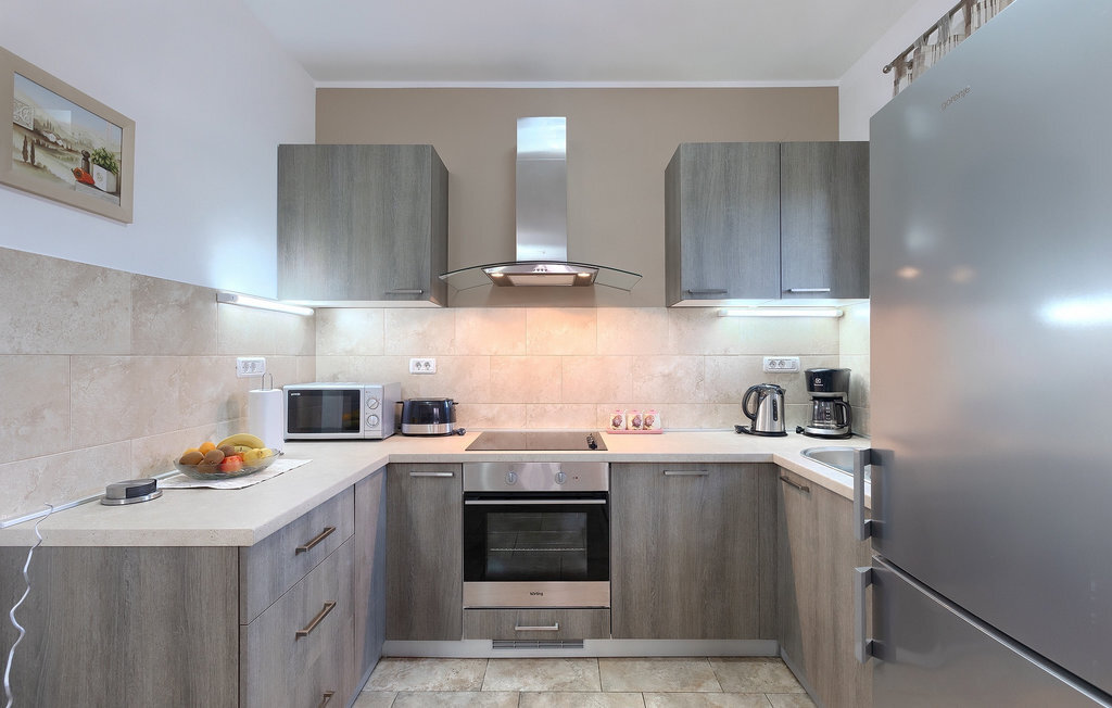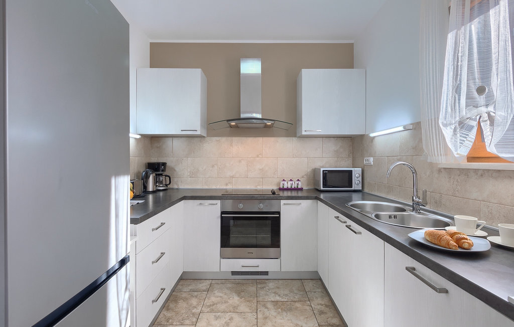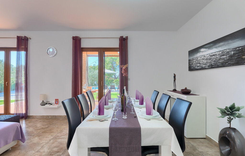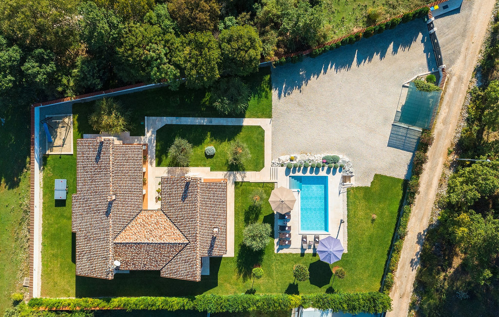 La villa Tina Barban dispose au total de 170 m2 et est divisée en deux maisons. Comme il s'agit de deux maisons séparées sur un terrain commun, elle convient parfaitement à deux familles ou deux groupes d'amis. La villa peut accueillir jusqu'à 12 personnes au total. Chaque maison se compose d'un salon avec une cheminée qui donne une atmosphère chaleureuse, d'une cuisine entièrement équipée, d'une salle à manger, de deux chambres à coucher et de deux salles de bains. Les deux maisons, aménagées avec style, disposent d'une terrasse couverte avec un coin repas et un barbecue, où vous pourrez passer des moments inoubliables en famille ou entre amis. Les oliviers confèrent au jardin bien entretenu une touche traditionnelle d'Istrie. Une grande piscine extérieure vous invite à vous rafraîchir lors des chaudes journées d'été ! Autour de la piscine se trouvent des chaises longues et une douche en plein air. Vos enfants se réjouiront certainement de la petite aire de jeux dans le jardin ! Un parking privé pour 4 voitures est également à votre disposition. La villa offre tout ce dont on peut rêver pour des vacances reposantes en Istrie!La villa Tina Barban se trouve dans le petit village de Dobrani, qui fait partie de la commune de Barban. A 3 km se trouve la baie pittoresque de Raski Zaljev, avec de nombreuses plages naturelles et une mer cristalline. Grâce à sa situation centrale, le village de Dobrani est un excellent point de départ pour des excursions, des tours à vélo ou des randonnées. La région d'Istrie offre une multitude de beautés naturelles et de curiosités culturelles à ne pas manquer. La villa se trouve à environ 20-30 km des villes côtières touristiques comme par exemple Pula, Pore, Rovinj, Labin et Rabac. Ces villes disposent d'innombrables cafés, clubs et restaurants dans lesquels vous ne manquerez pas de goûter à des délices gastronomiques de premier ordre comme le jambon fumé d'Istrie et l'huile d'olive. Pour les familles avec enfants, nous recommandons une excursion dans un parc aquatique. Le choix idéal pour des vacances à la fois reposantes et passionnantes !
