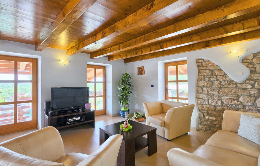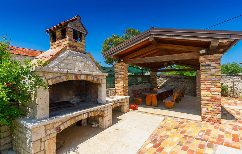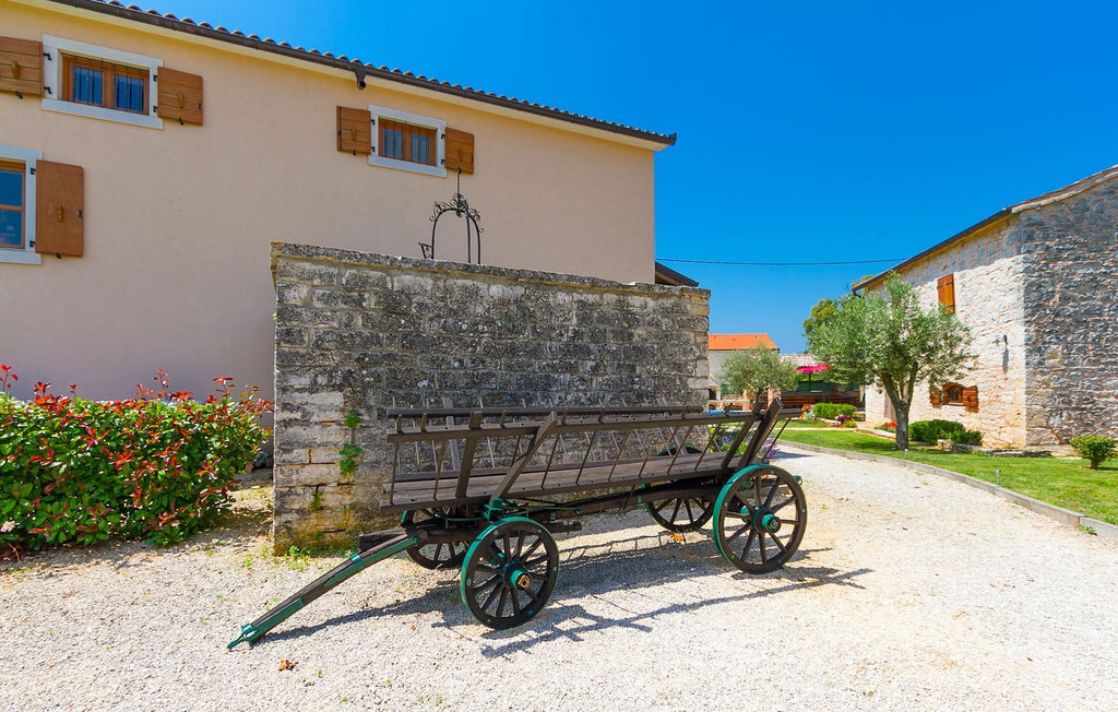 Ce logement de vacances se compose de deux anciennes maisons istriennes sur un terrain de 1500 m2. Les maisons ont été entièrement rénovées en 2010 afin d'offrir à nos hôtes confort et intimité. Le plus grand bâtiment dispose de deux étages. Au rez-de-chaussée se trouvent la cuisine avec salle à manger ainsi que la salle de séjour spacieuse, trois chambres à coucher se trouvent à l'étage. Le petit bâtiment dispose également d'une cuisine avec coin repas et d'un salon au rez-de-chaussée, ainsi que de deux pièces magnifiquement décorées à l'étage. Au total, la maison de vacances offre six salles de bains. Dans la cour entièrement clôturée par un mur et protégée par un portail se trouvent une piscine de 36 m2 ainsi qu'un espace repas en plein air. Près de la piscine se trouve également un grand barbecue pour passer de belles soirées en famille ou entre amis.