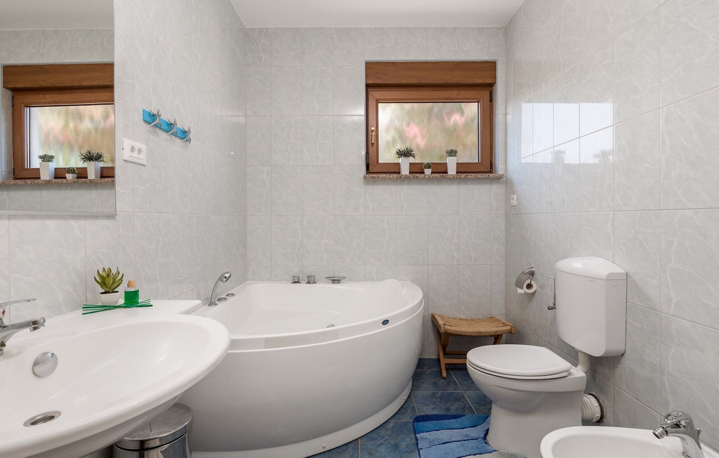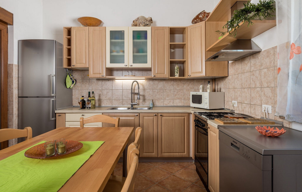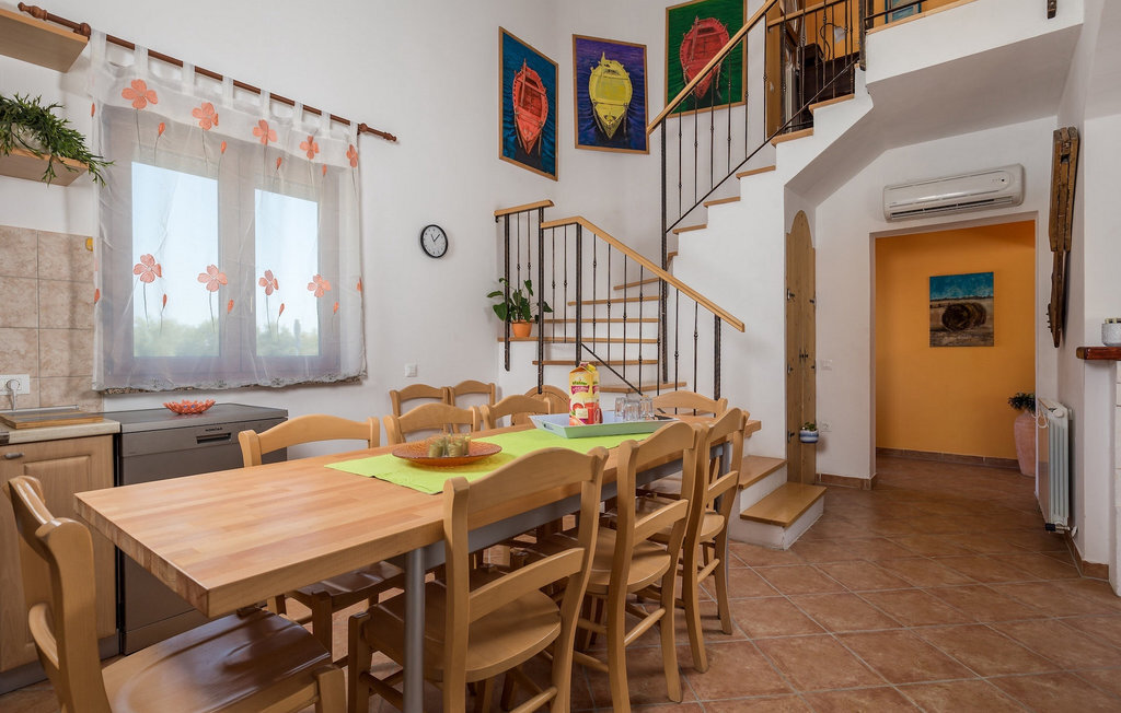 La charmante Villa Pinna se compose d'une partie intérieure et d'une partie extérieure de la maison. La partie extérieure de la maison comprend, outre la douche extérieure et les toilettes, un jardin où vous pourrez nager dans la piscine privée, profiter des rayons du soleil sur les chaises longues ou prendre votre café matinal à la table en plein air avec une vue magnifique sur l'oasis de verdure qui entoure la villa. Deux barbecues sont également à votre disposition, positionnés à l'extérieur de la maison, afin que vous puissiez vous essayer à la préparation de plats traditionnels istriens dans cet espace. De la terrasse extérieure, on accède directement à l'intérieur de la maison où, au rez-de-chaussée, on entre immédiatement dans un joyeux salon avec une cuisine entièrement équipée et une salle à manger. Au premier étage, il y a également un couloir qui mène à une chambre à coucher confortable avec un lit double, une chambre d'enfant avec deux lits simples, 1 salle de bain, 1 toilette avec buanderie et débarras. Un escalier mène au premier étage de la villa, où se trouvent 2 chambres confortables avec des lits doubles, 2 salons supplémentaires avec un lit d'appoint, une cuisine auxiliaire, 2 salles de bain et une terrasse avec une belle vue sur le paysage istrien. Dans la zone du premier étage de cette villa meublée de manière colorée se trouve une autre galerie avec un salon où vous pourrez profiter de votre temps libre avec vos proches. Réservez la Villa Pinna et assurez-vous des vacances tranquilles dans la belle ville istrienne de Liznjan.